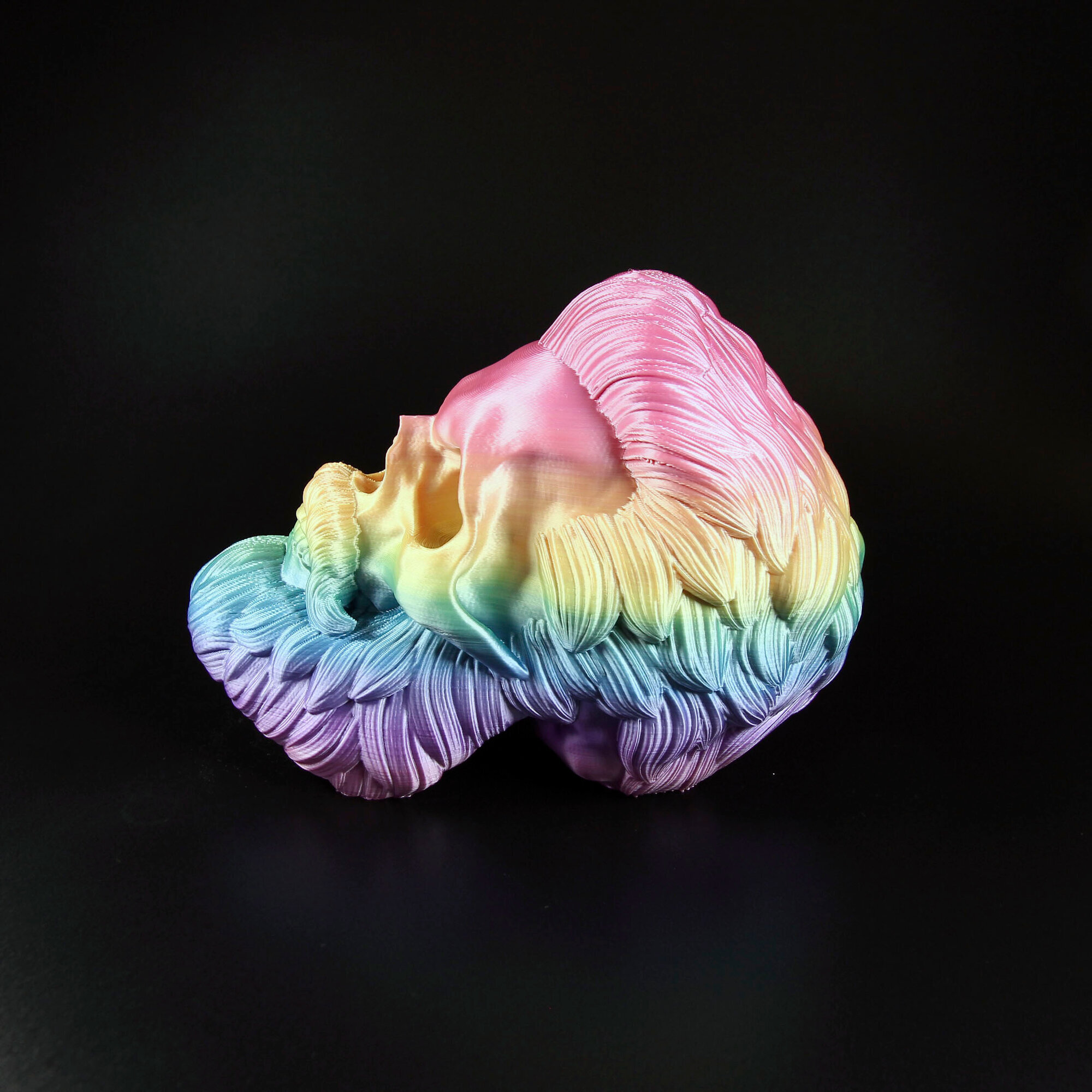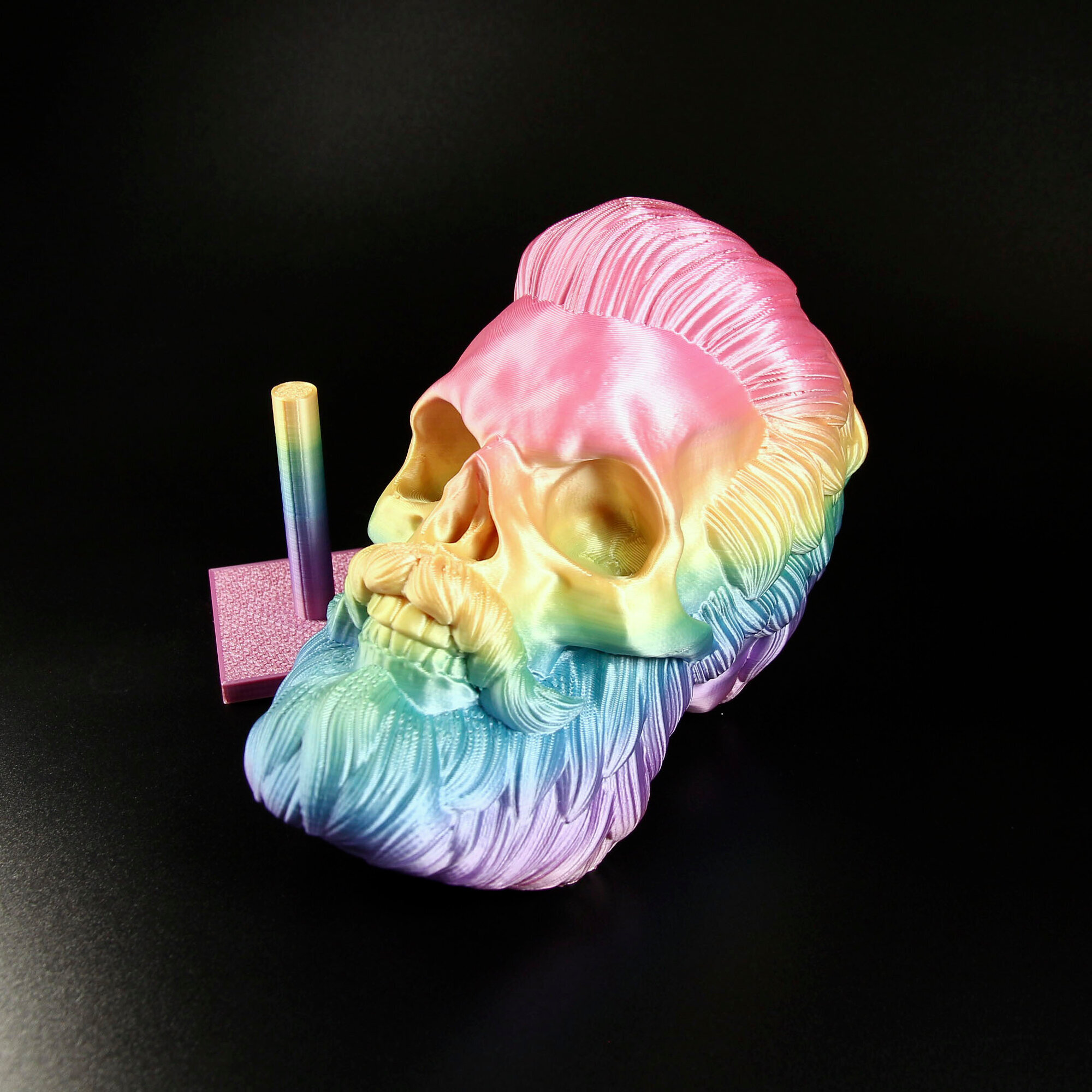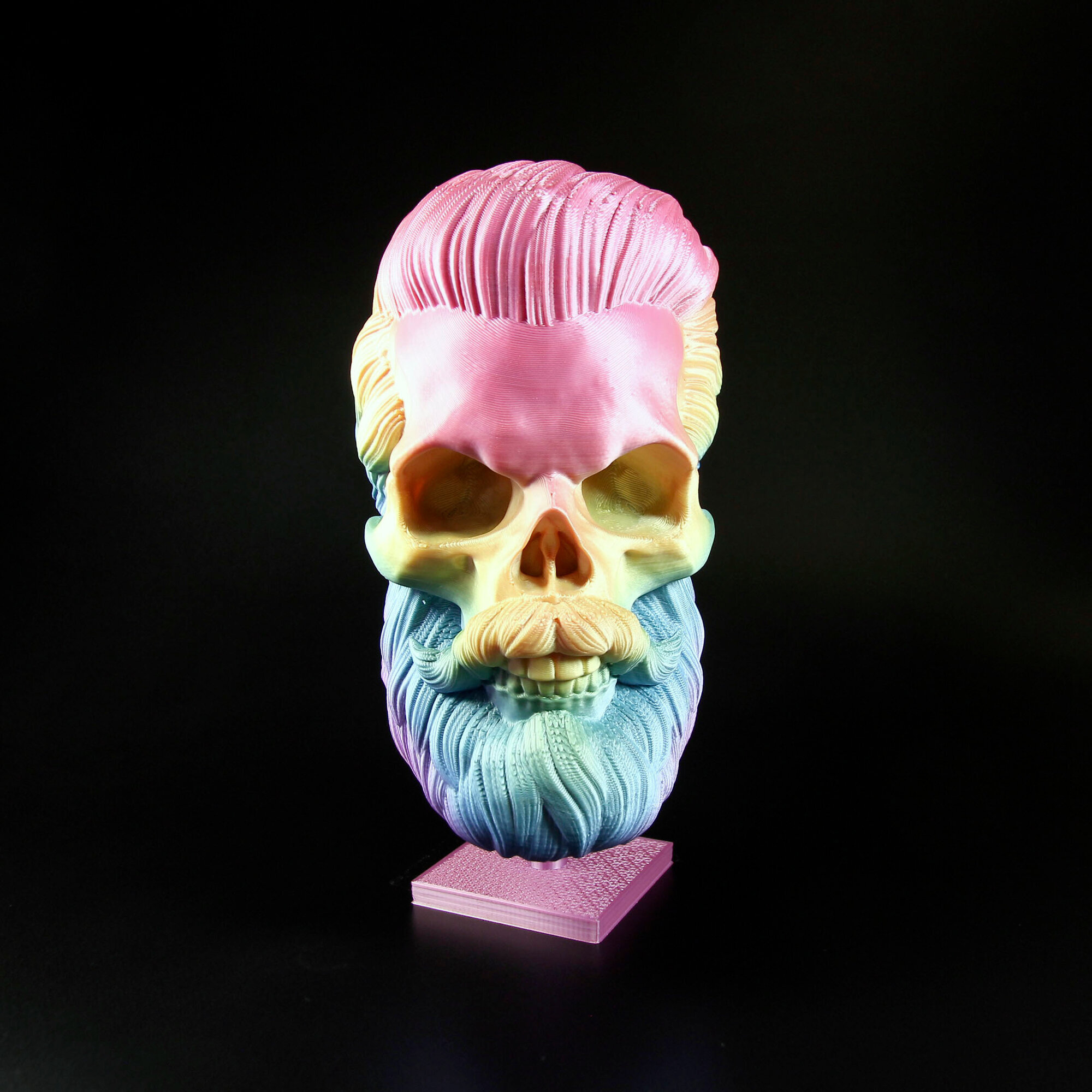Фигурка черепа распечатана на 3D принтере. Пластик не боится воды, без посторонних запахов. Высота с подставкой 19,5 см., ширина от виска к виску 10 см., ширина от носа к затылку 14 см., вес 3D фигурки 250 гр. Голова свободно крутится, находясь на подставке.Коллекционный предмет, оригинальный подарок парикмахеру/барберу, байкеру. Отличный арт-обьект для украшения интерьера барбершопа или дома.