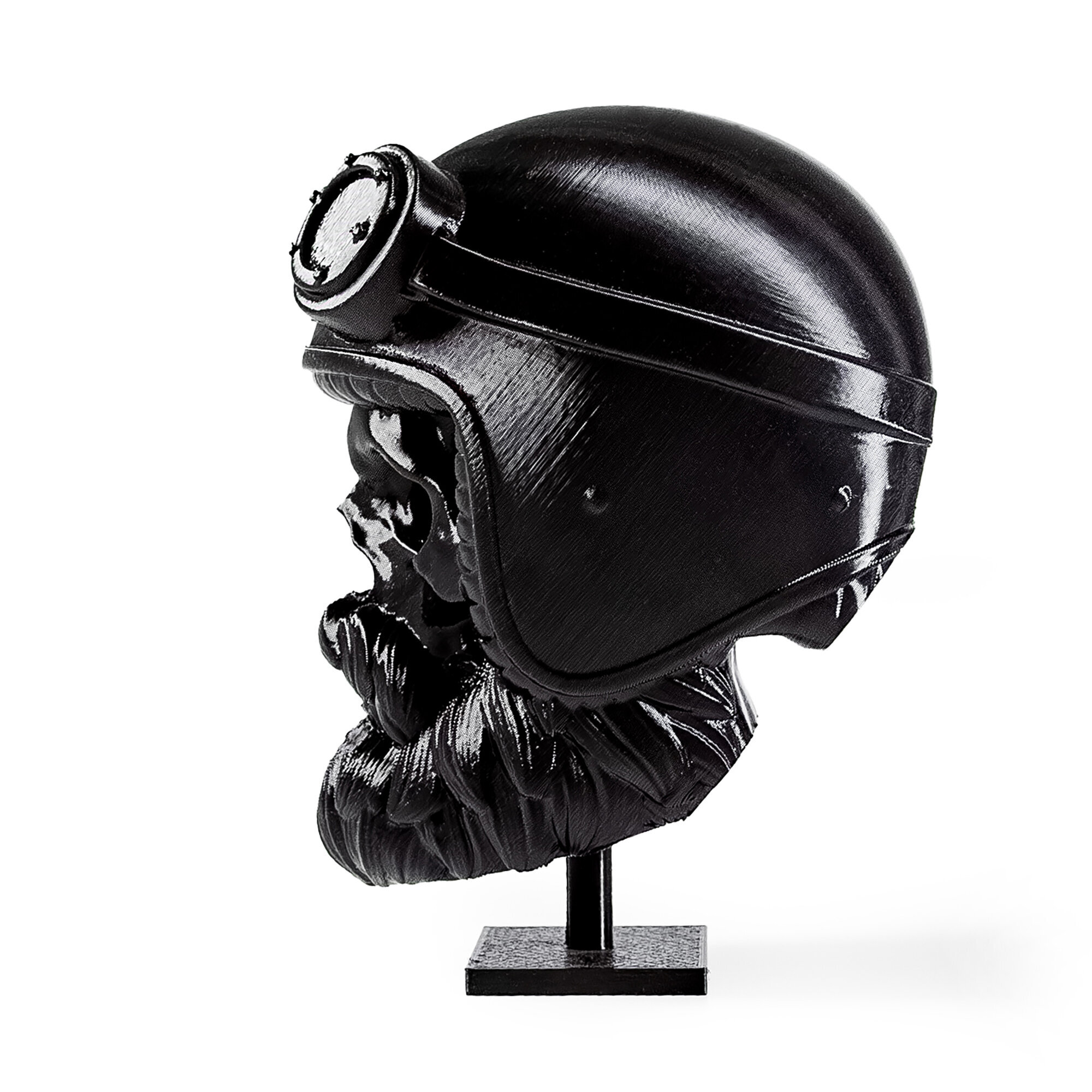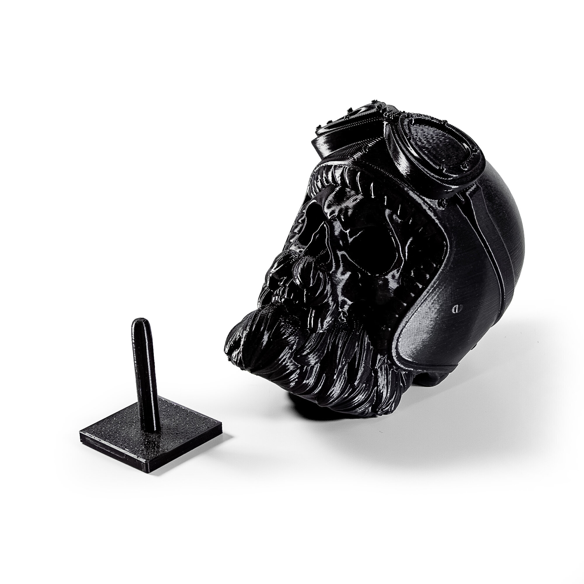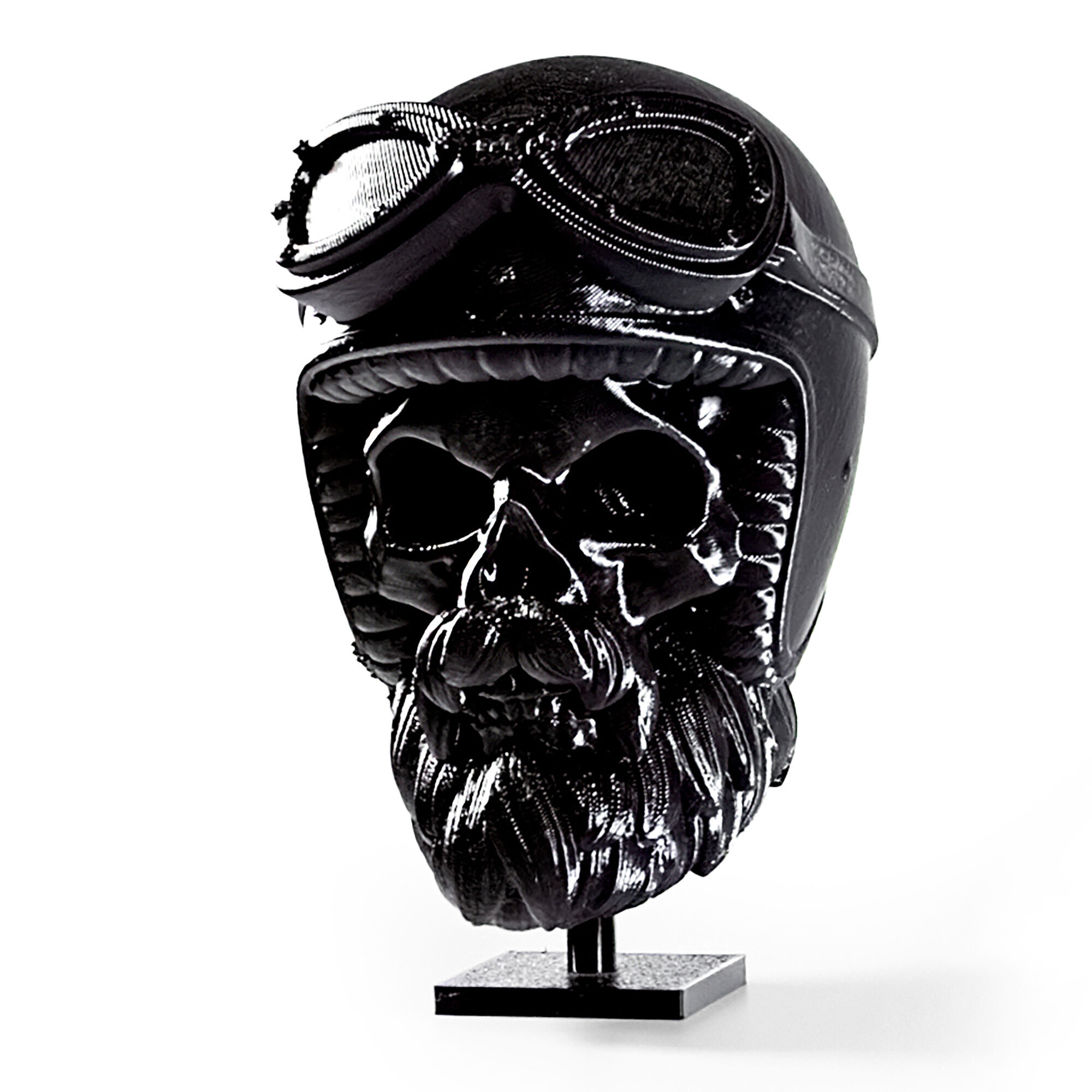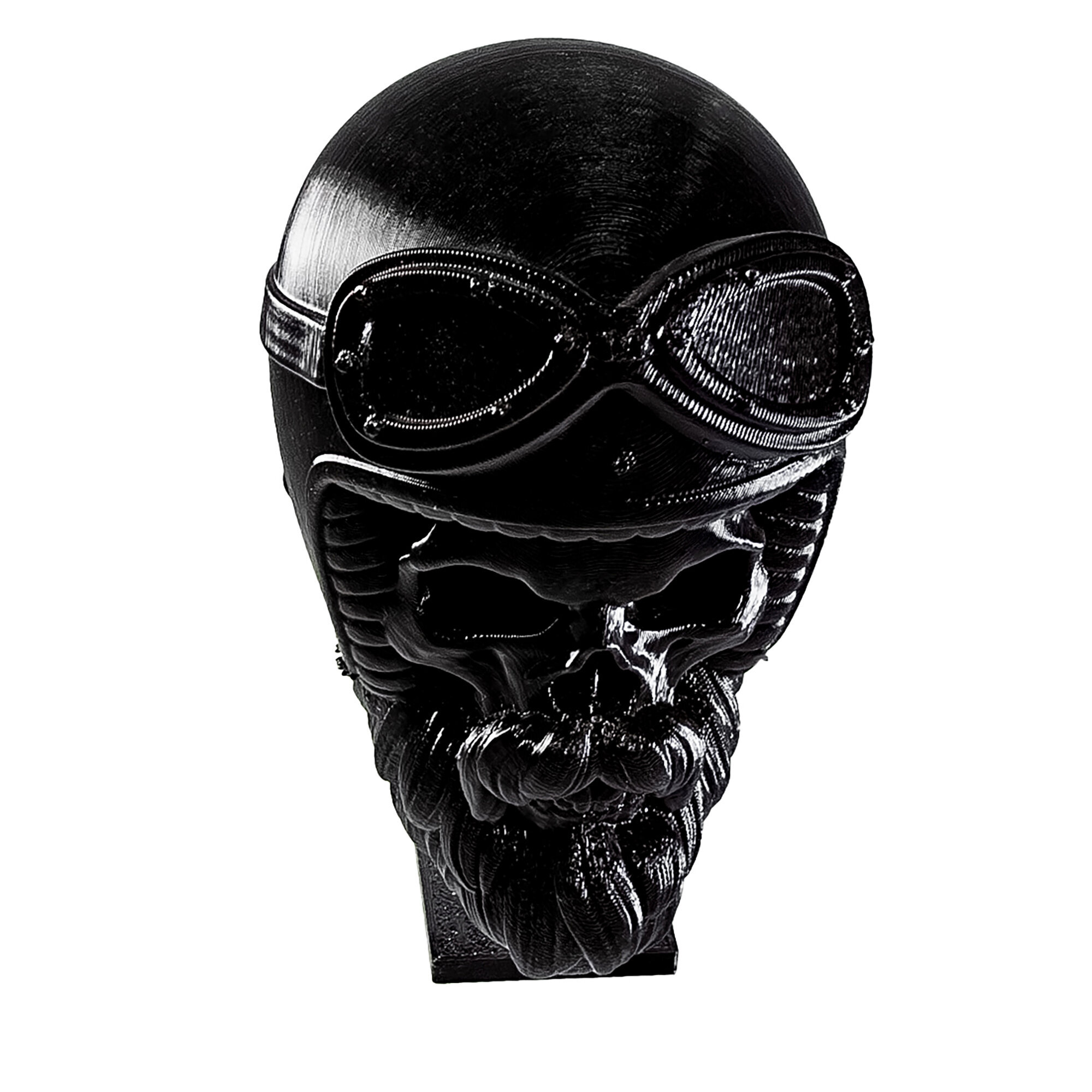 Фигурка черепа распечатана на 3D принтере. Не боится воды, без посторонних запахов. Голова свободно крутится, находясь на подставке.Коллекционный предмет, оригинальный подарок парикмахеру/барберу, байкеру. Отличный арт-объект для украшения интерьера барбершопа или дома.