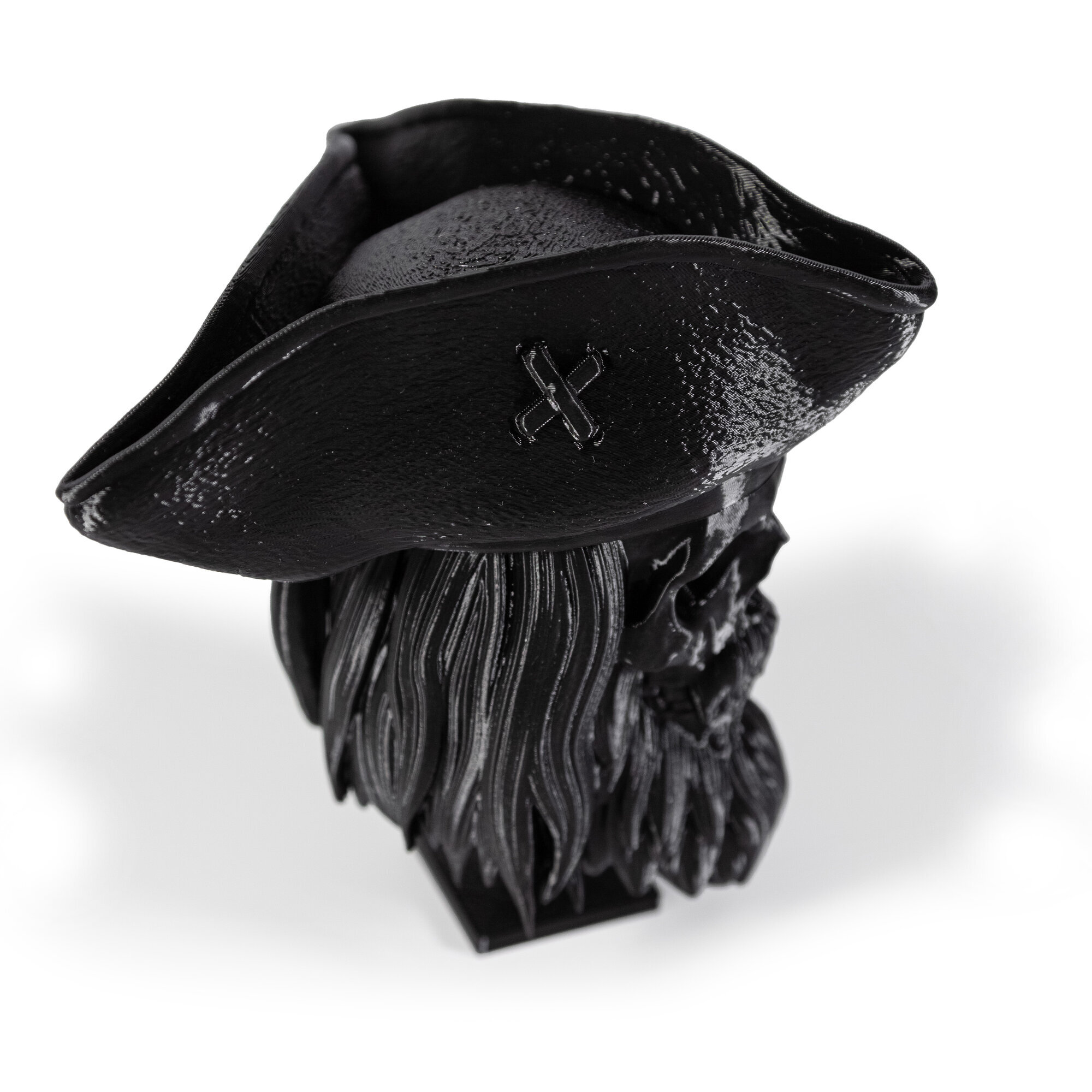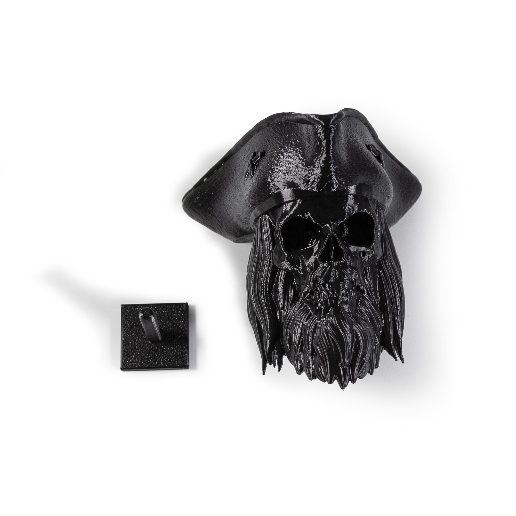 Череп с бородой в пиратской шляпе, украшение интерьера, барбершопов, подарок мужчине, день рождения, цвет черный, 14 см.