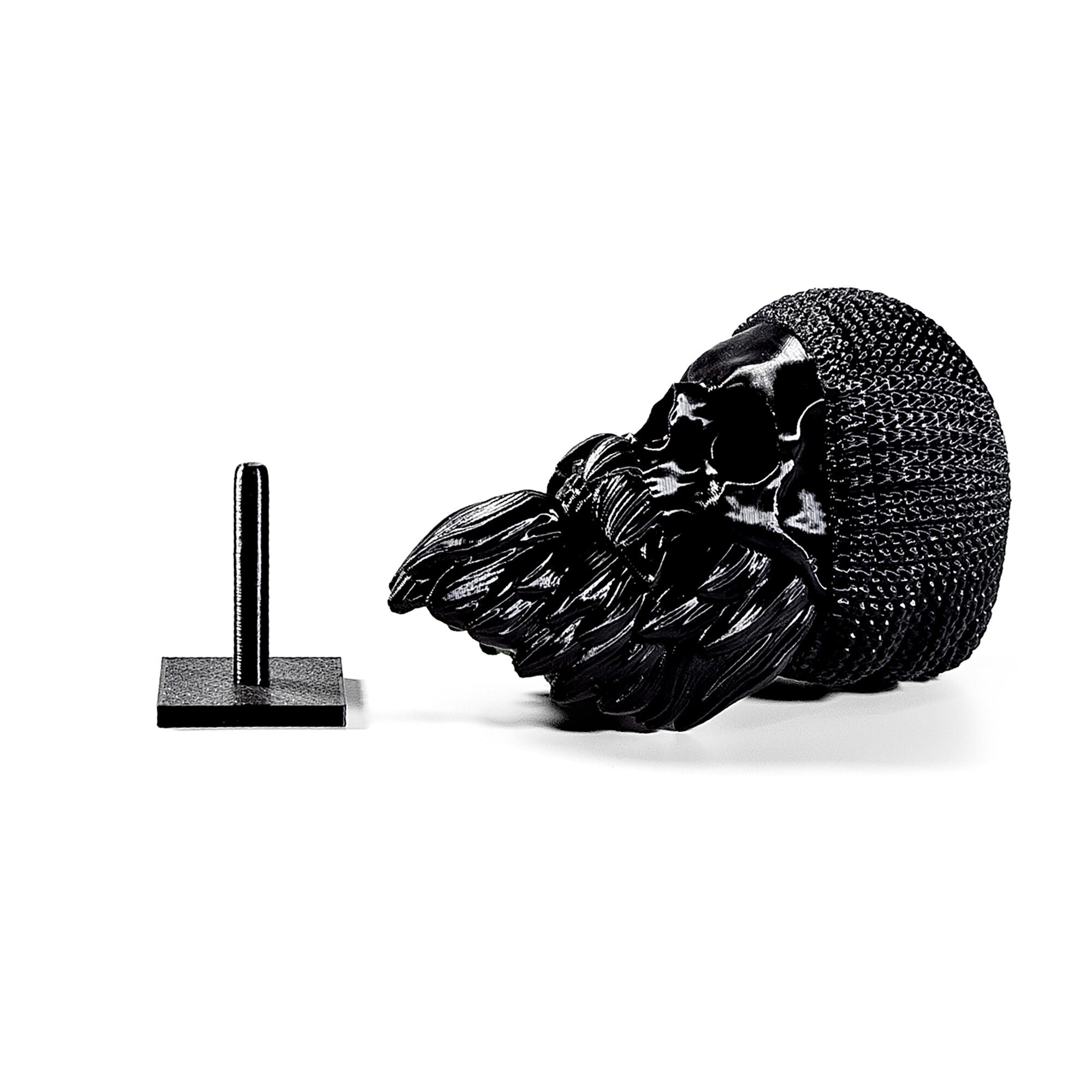 Фигурка черепа распечатана на 3D принтере. Не боится воды, без посторонних запахов.Голова свободно крутится, находясь на подставке.