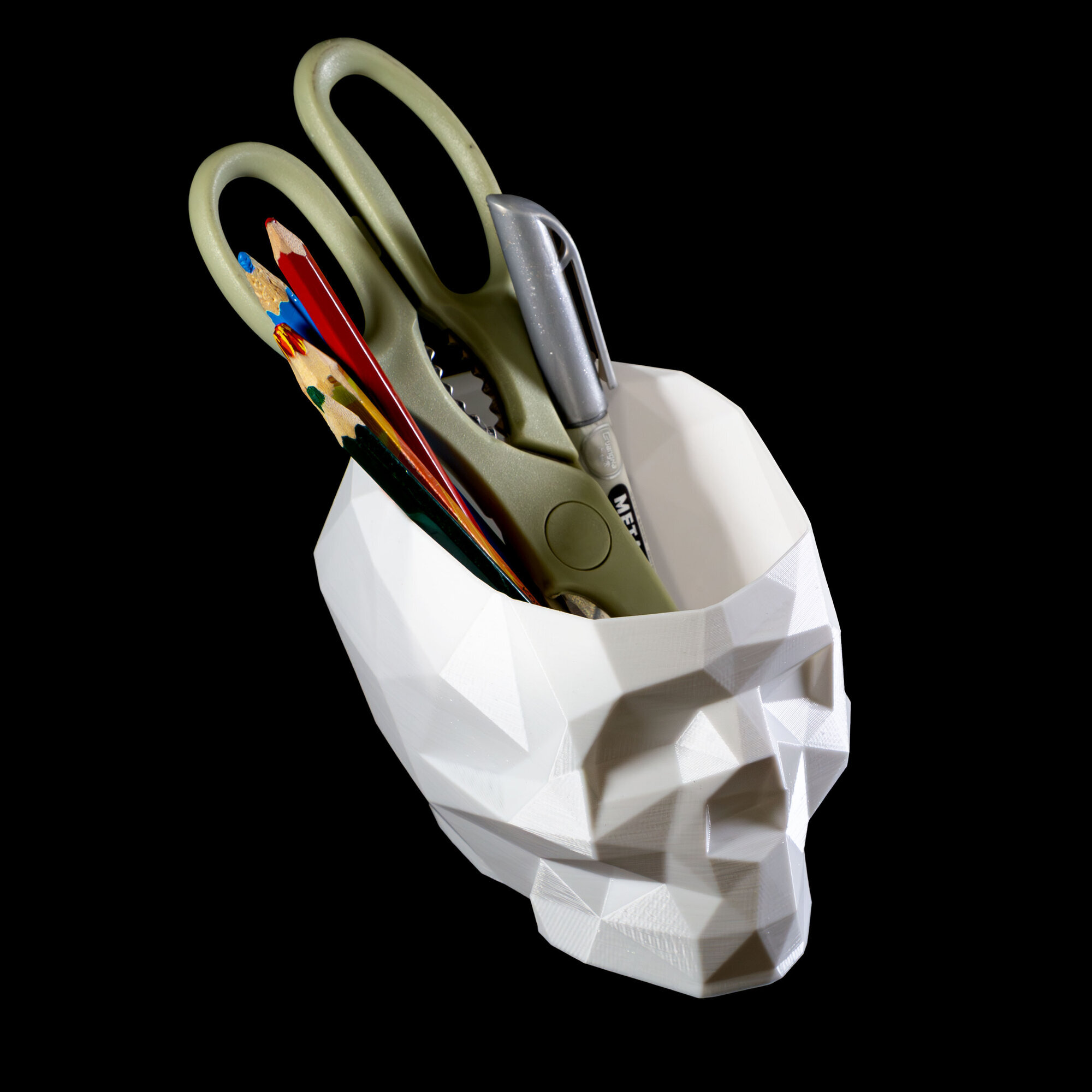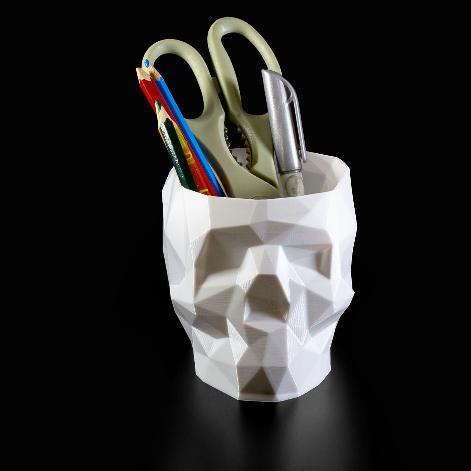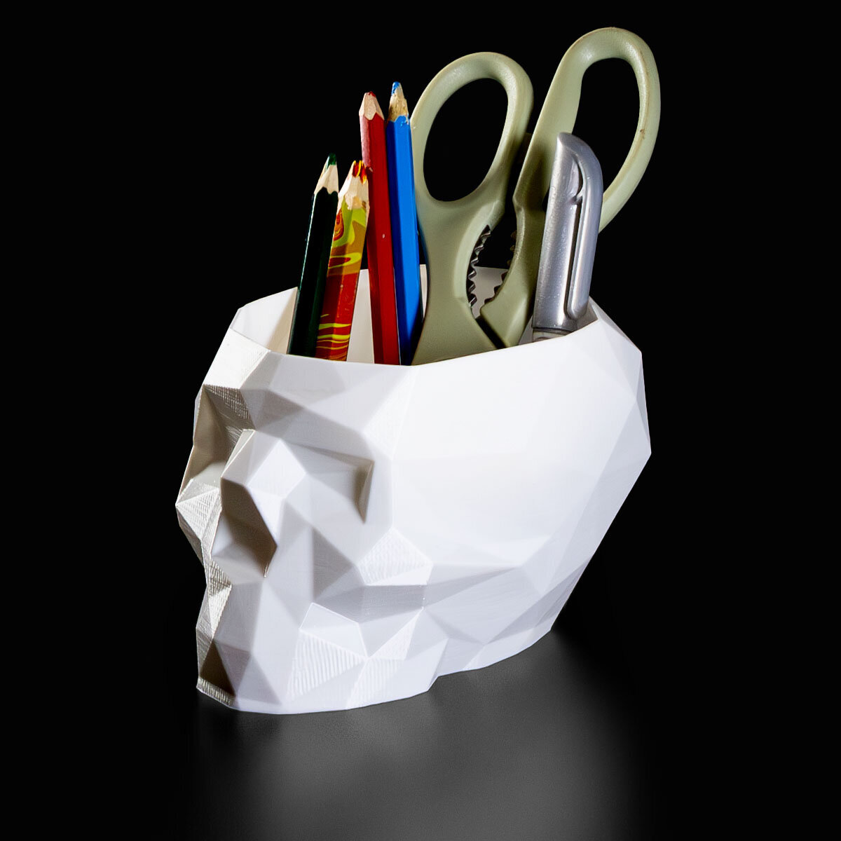 Череп-Ваза для конфет/карандашей, полигональная, 3D печать, белая