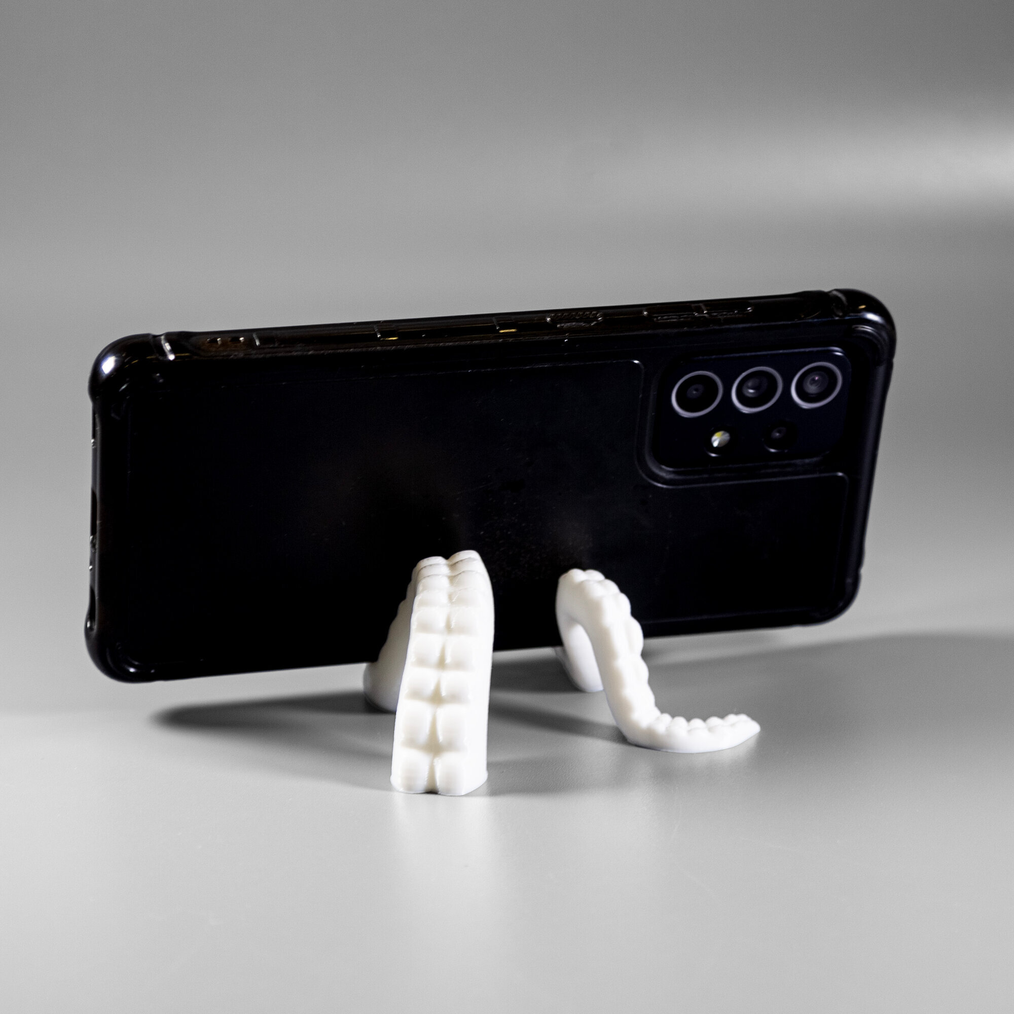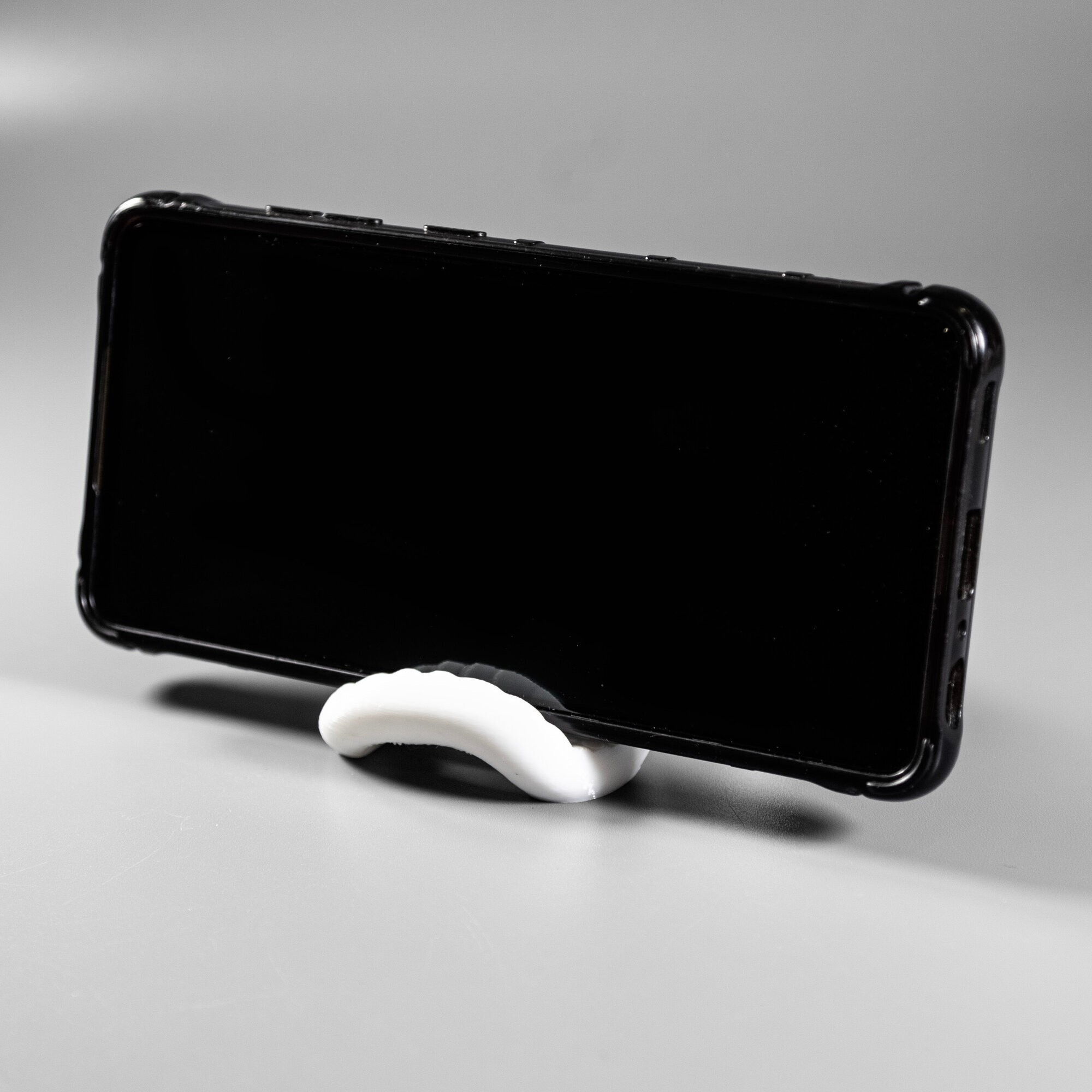 Держатель телефона распечатан на 3D принтере. Пластик не имеет посторонних запахов, не портится при попадании на него воды.