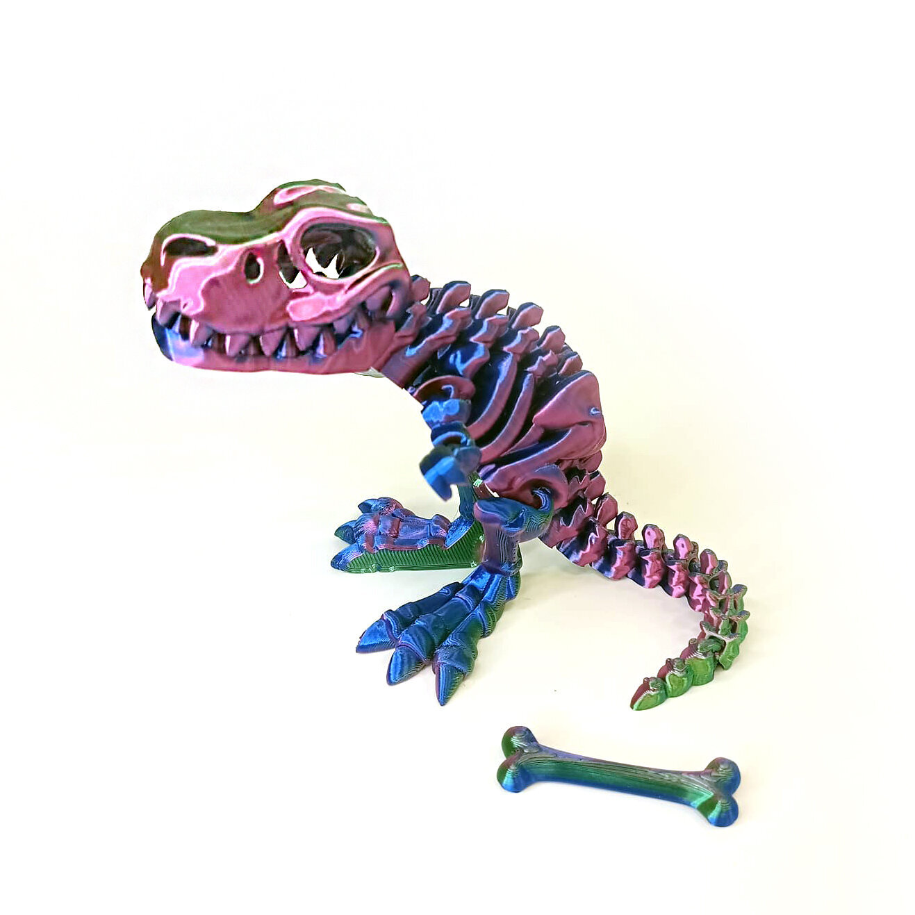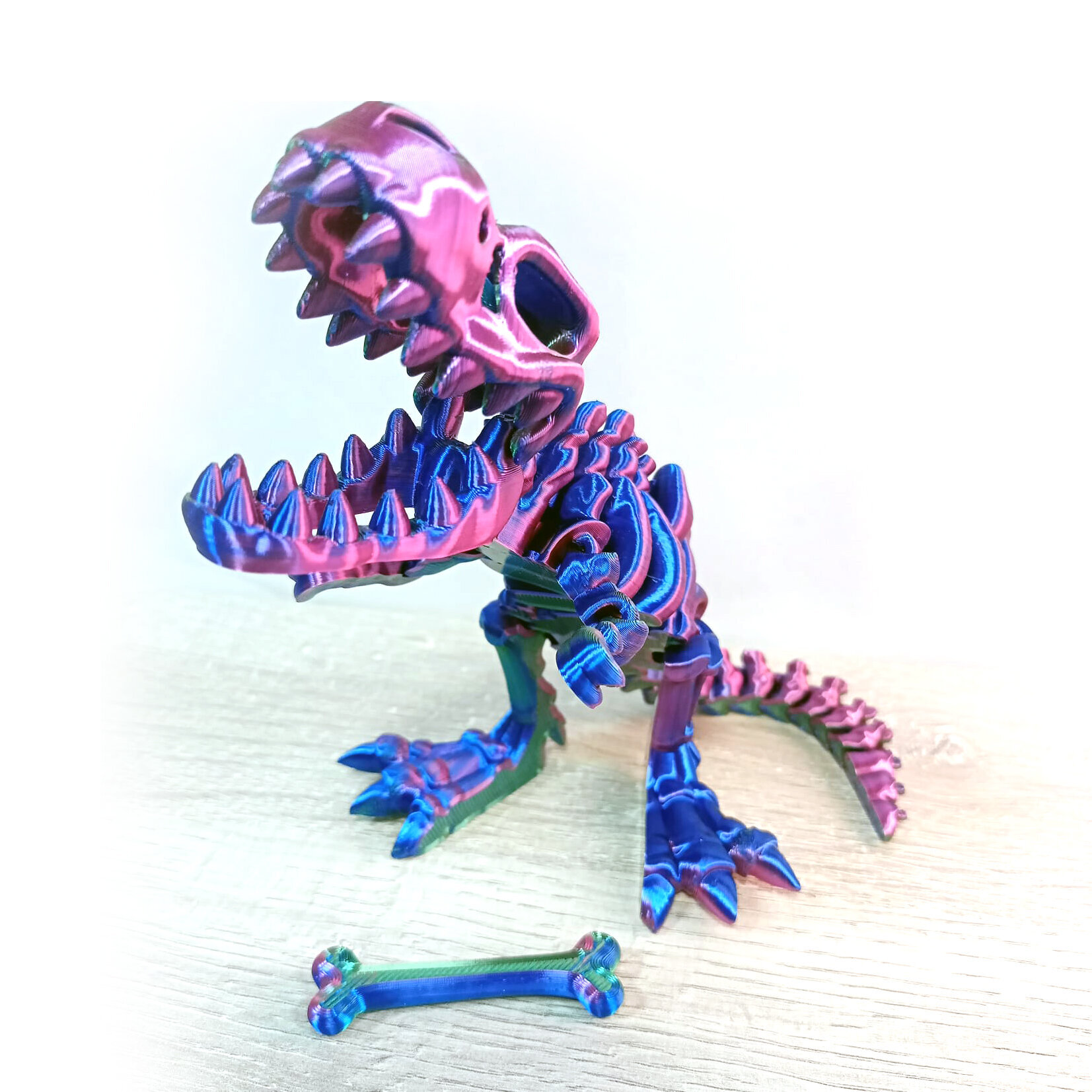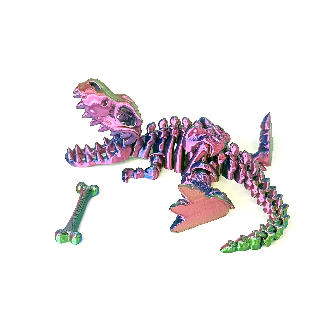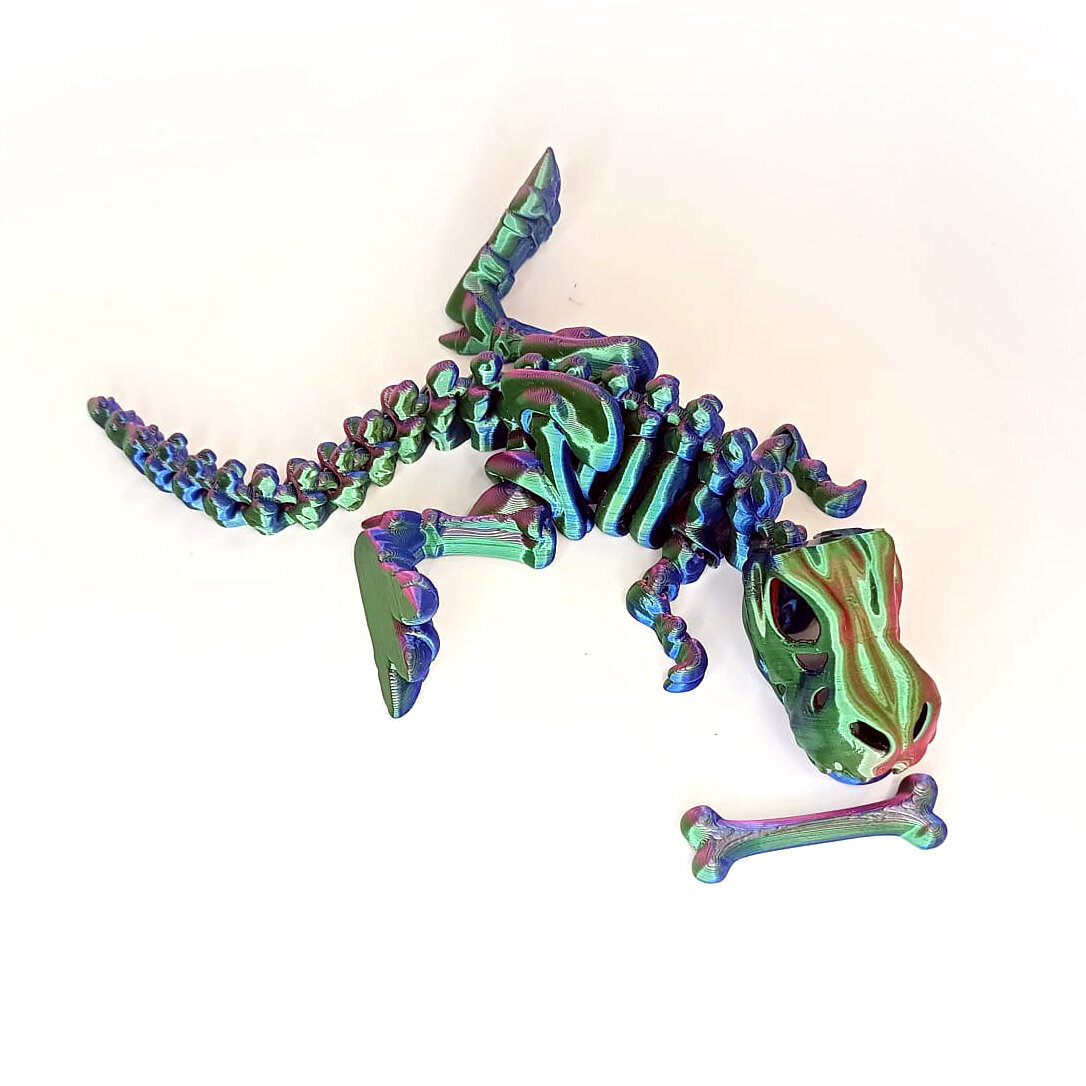 - Гибкая шарнирная игрушка динозавр. Длина от кончика морды до хвоста - 25см. Высота 3D фигурки динозавра 12 см.