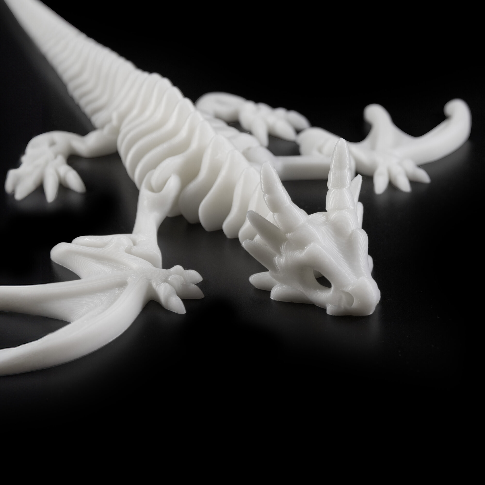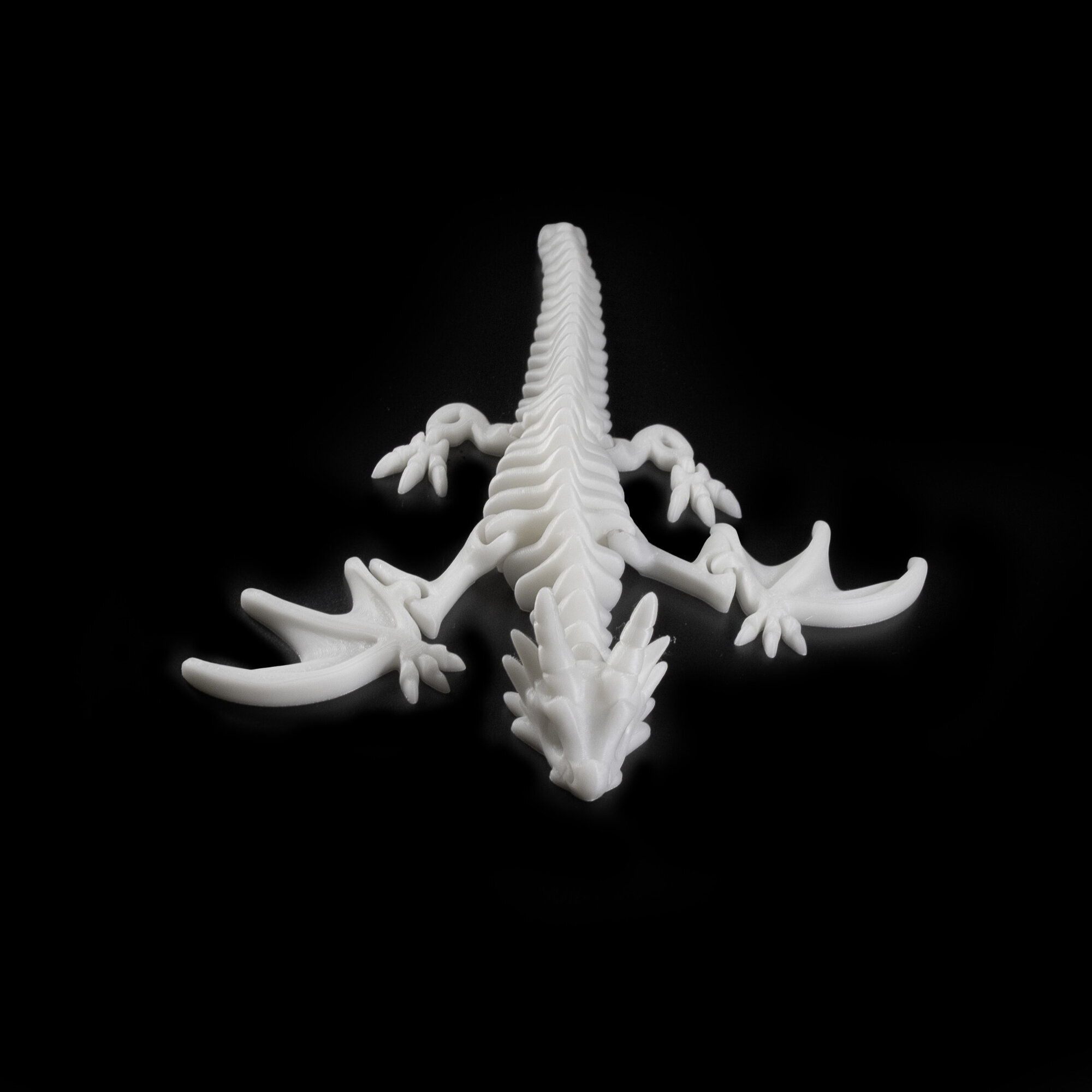 3D дракон — отличный подарок-сувенир, нестандартная безделушка. Шарнирная конструкция с подвижными позвонками позволяет создавать различные позы и направления. Прекрасно смотрится на панели автомобиля, полке в интерьере или просто на рабочем столе.
