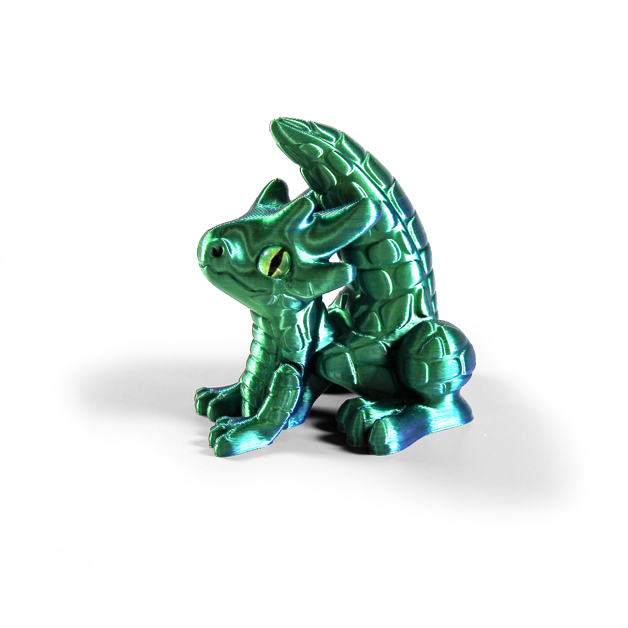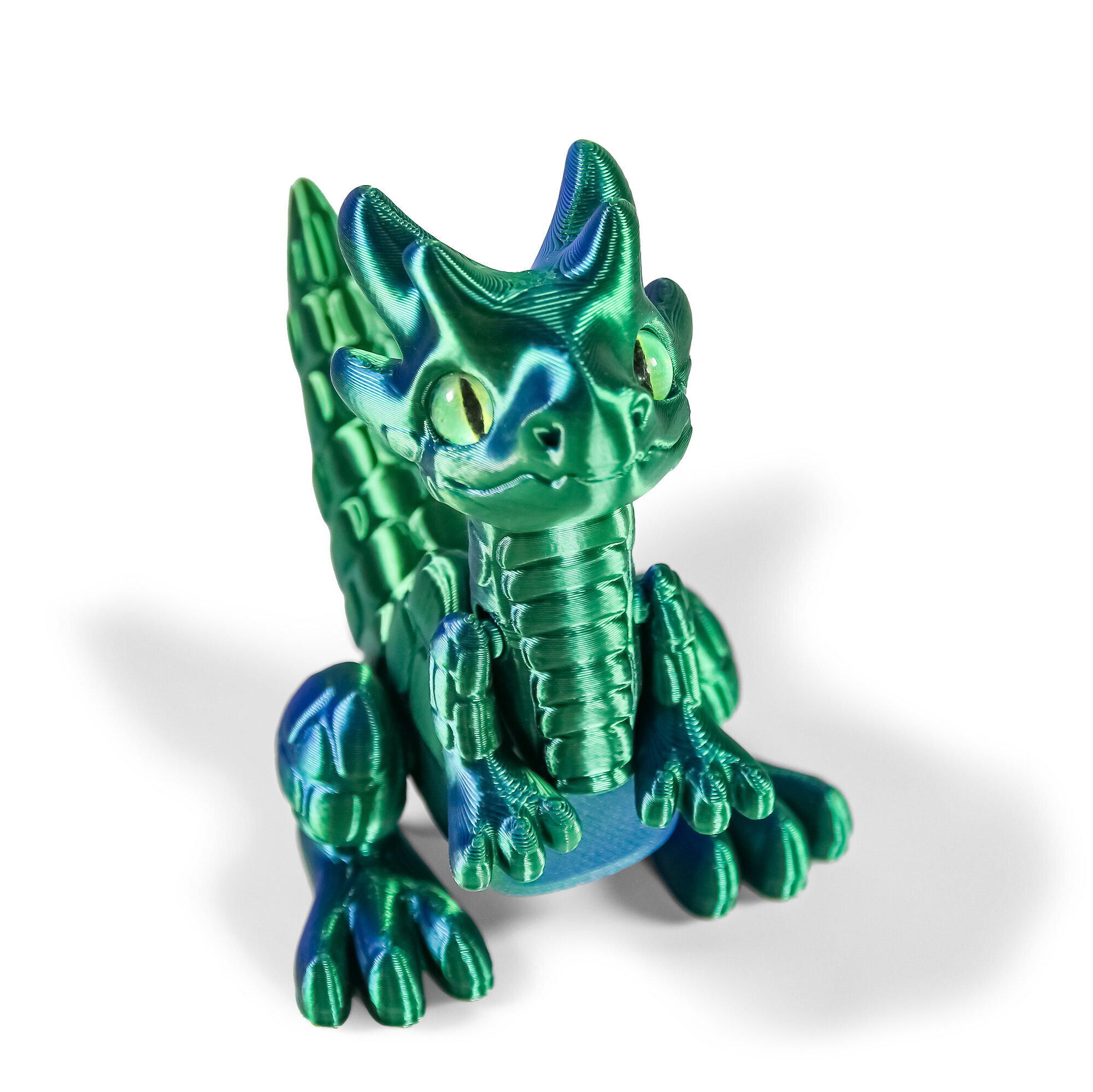 3D фигурка дракончика с глазками станет любимой игрушкой, украшением интерьера, и универсальным подарком.Благодаря необычному и современному дизайну с игрушкой драконом с удовольствием играют как мальчики, так и девочки. Фигурку хочется взять в руки, чтобы рассмотреть детали и понять как она сделана.