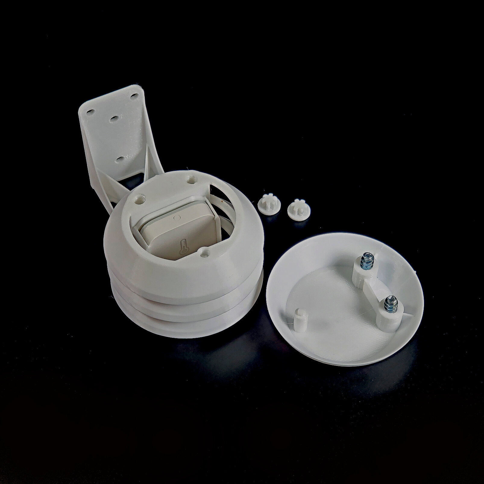 Держатель подходит также для версий: Aqara t1 th-s02d, WSDCGQ12LMНапечатан на 3D принтере. Пластик не портится при попадании на него воды, не имеет посторонних запахов. Экран Стивенсона предназначен для защиты датчика температуры и влажности от осадков при установке на улице.