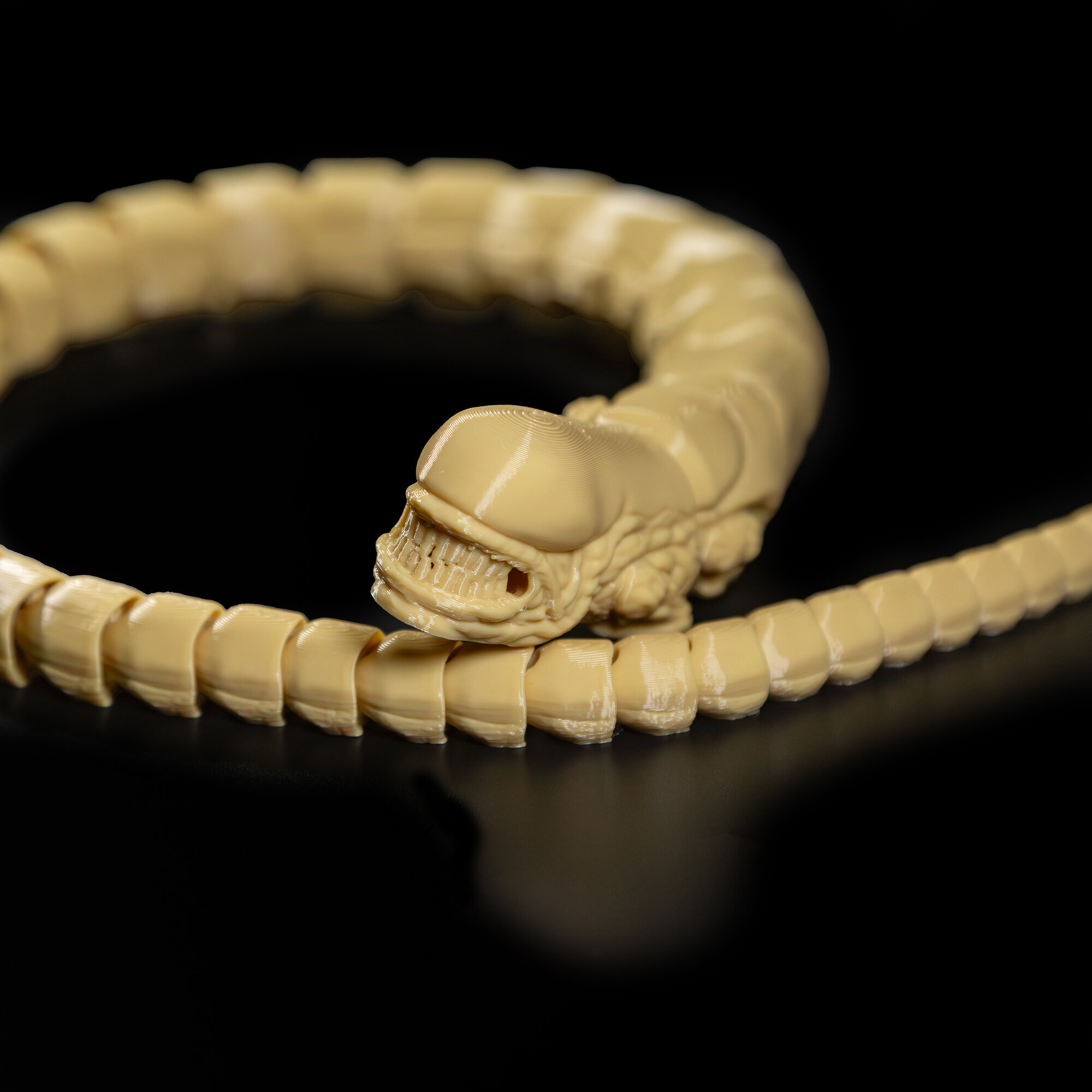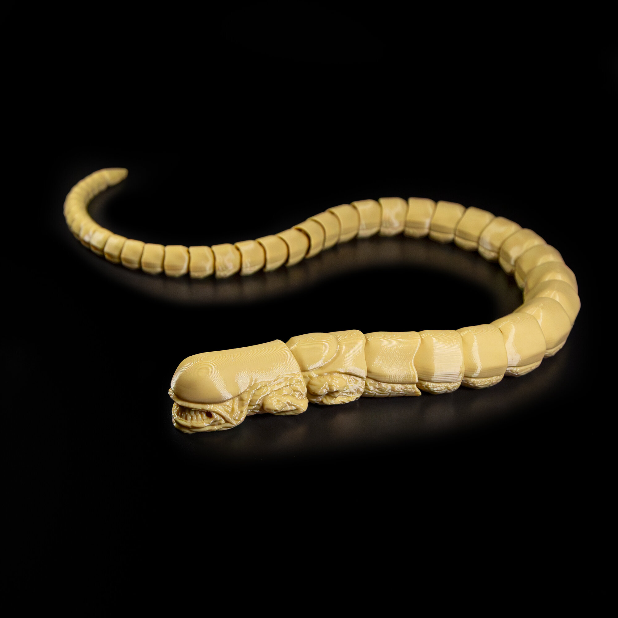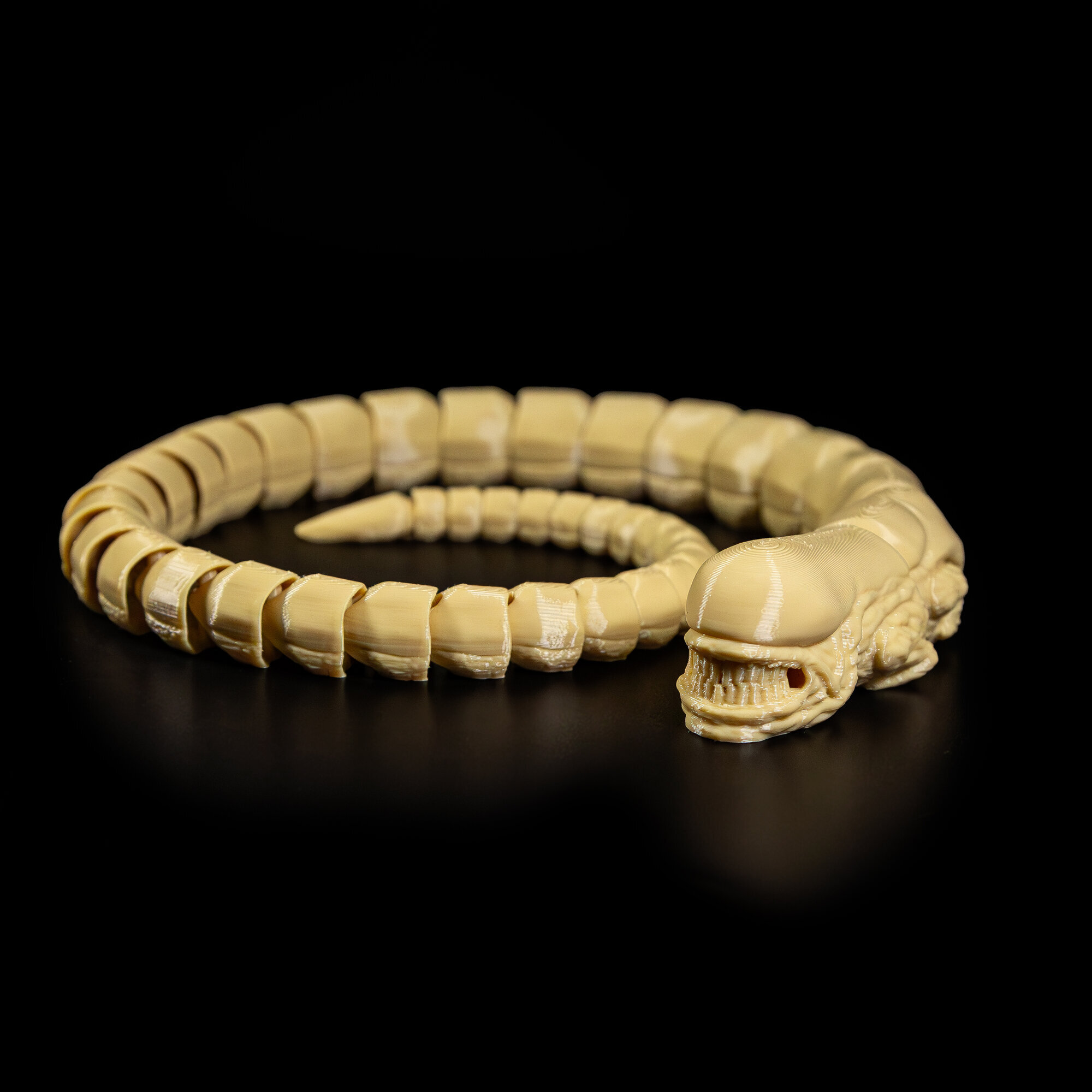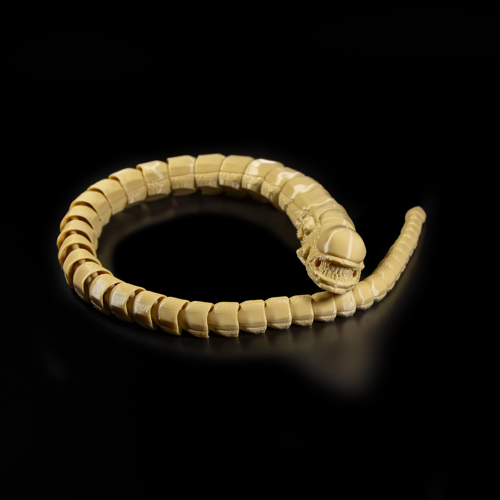Фигурка игрушка Чужого Аlien (Алиен) напечатана на 3D принтере из экологичного, полностью безопасного пластика, у которого нет постороннего запаха.Имеет составную/ шарнирную, неразборную конструкцию. Гибкий хвост позволяет фигурке принимать различные позы.