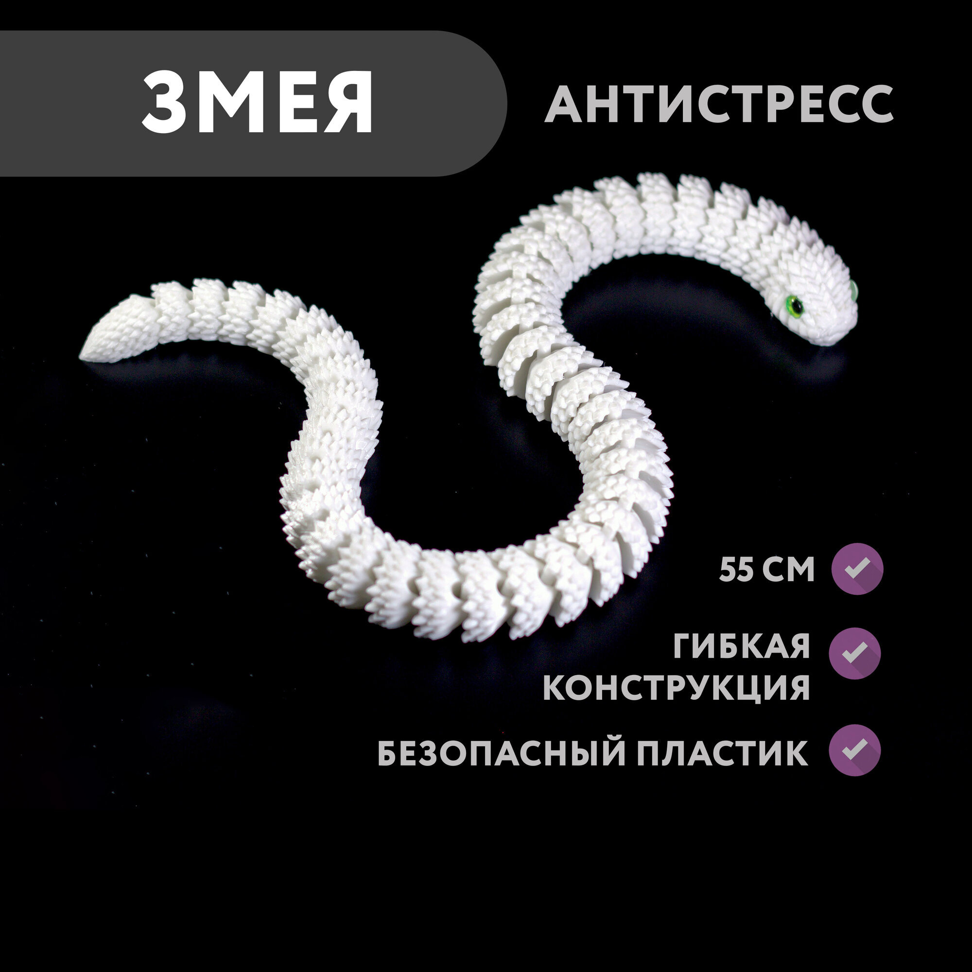 Подвижная змея "шипастая" с глазками станет любимой игрушкой, украшением интерьера и чудесным подарком.