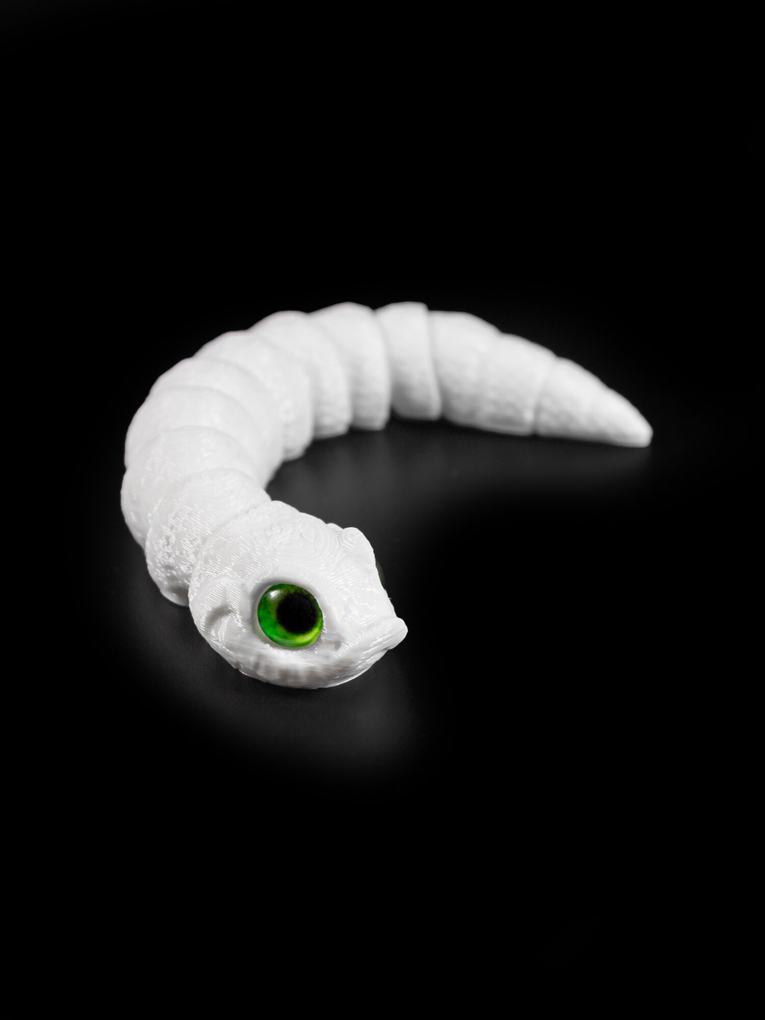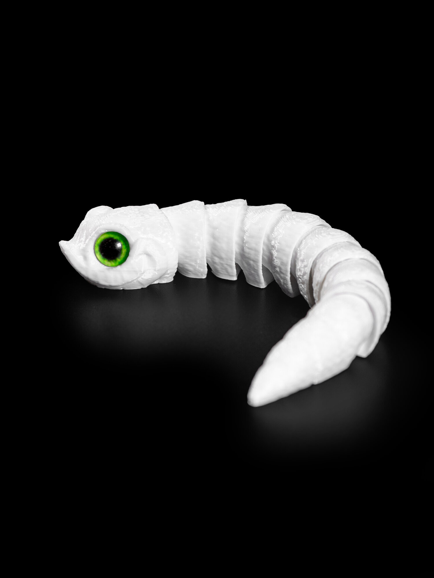 Гибкая игрушка-антистресс, змея с глазами, 3D печать, 13 см., белая