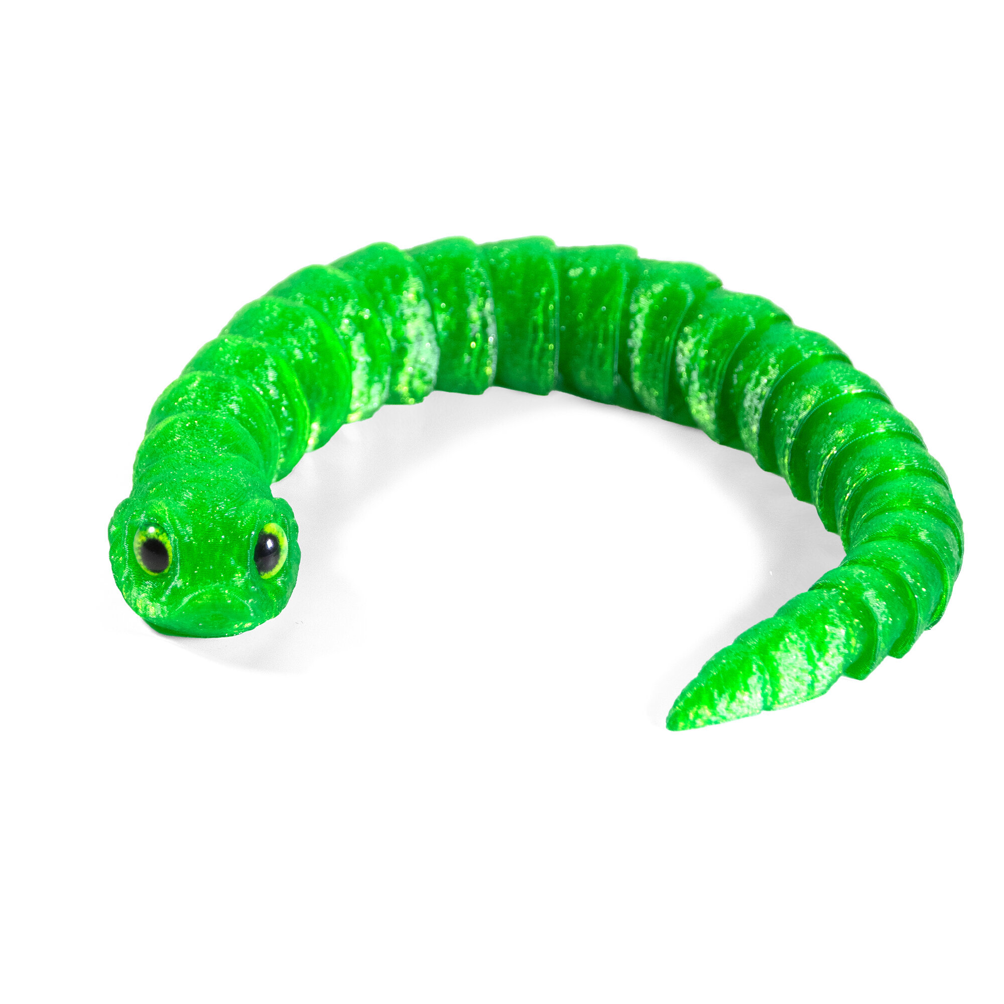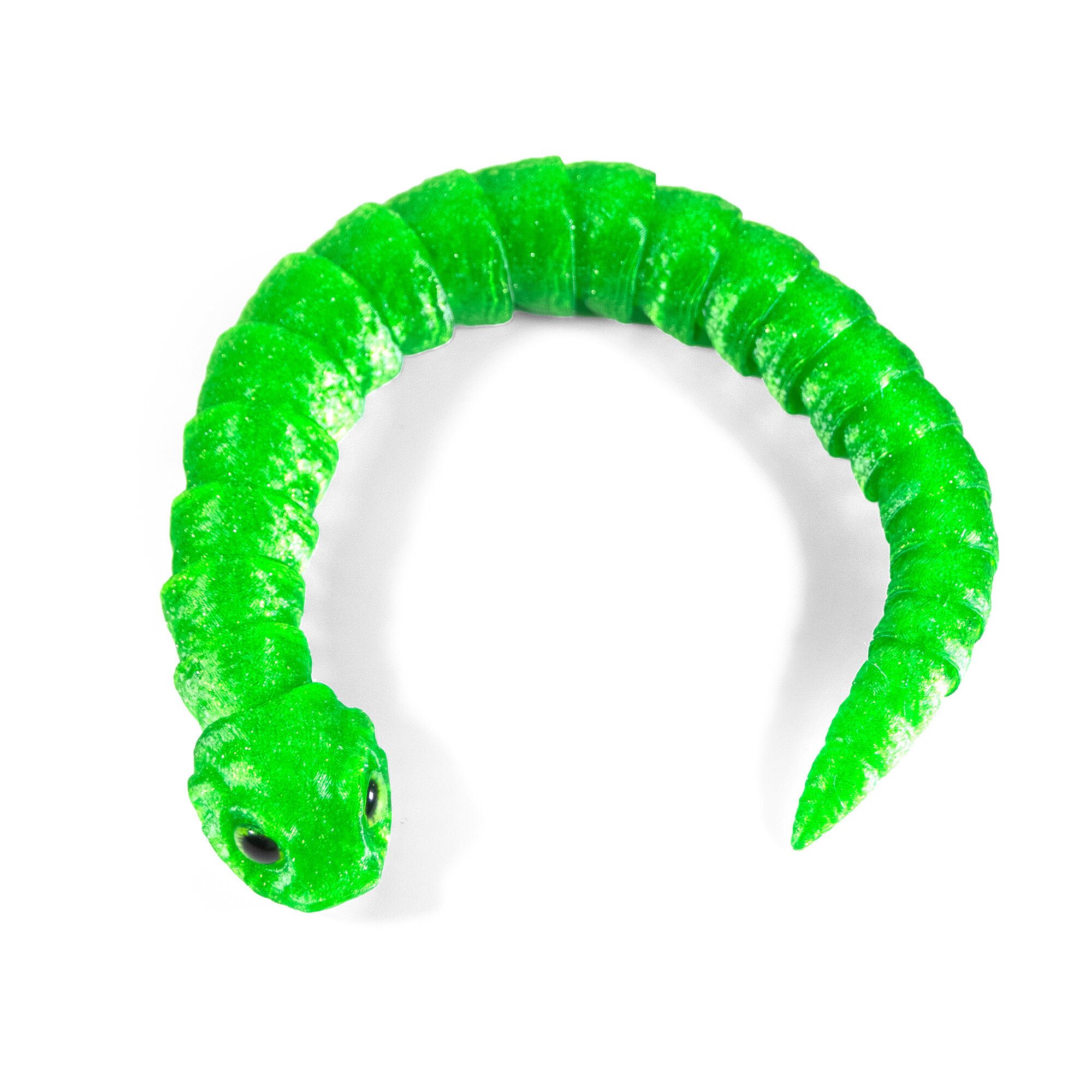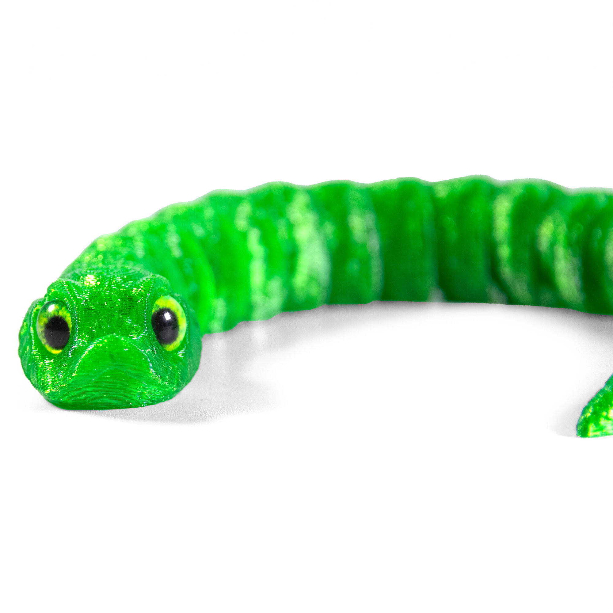 Гибкая игрушка-антистресс, змея с глазами, 3D печать, 27 см., зеленая