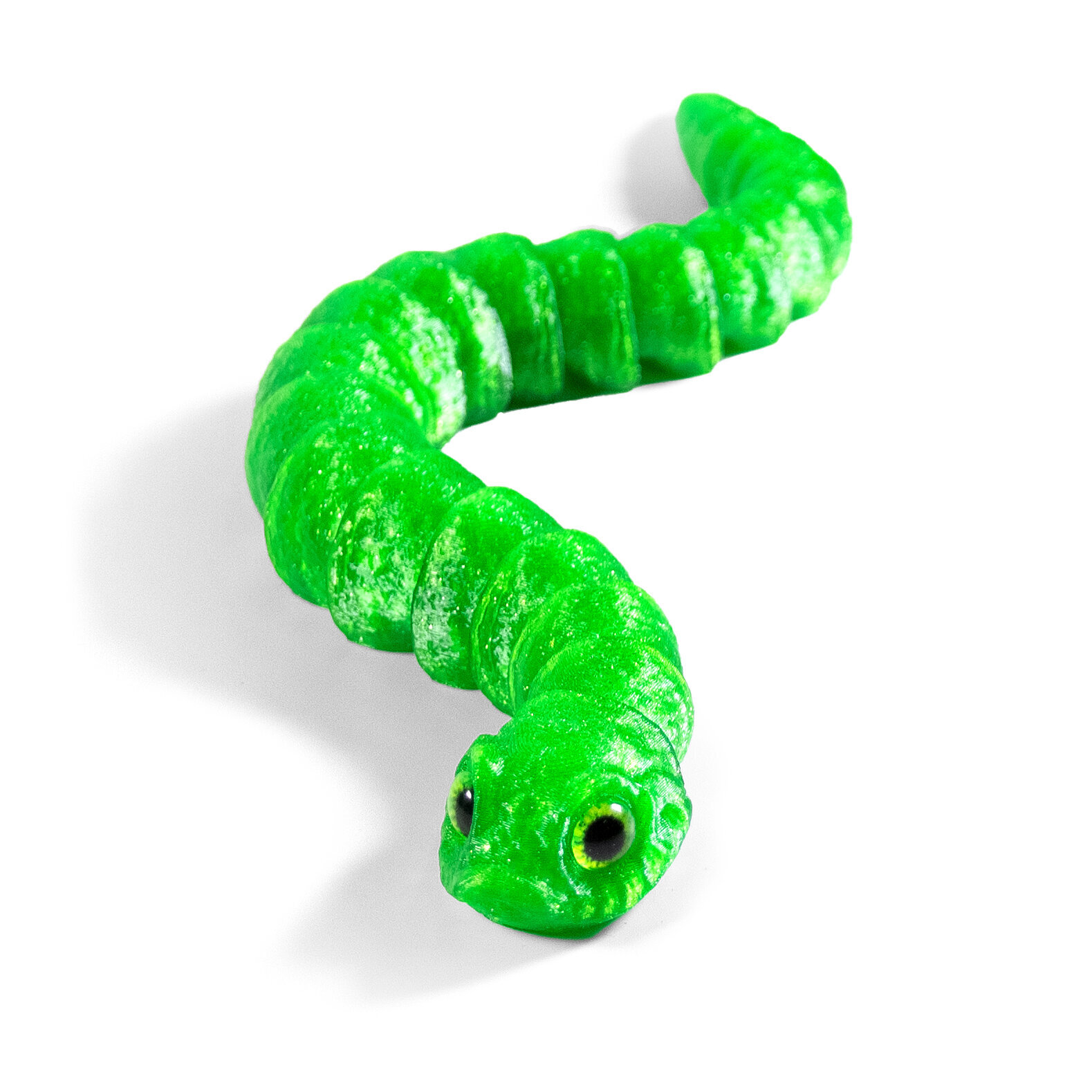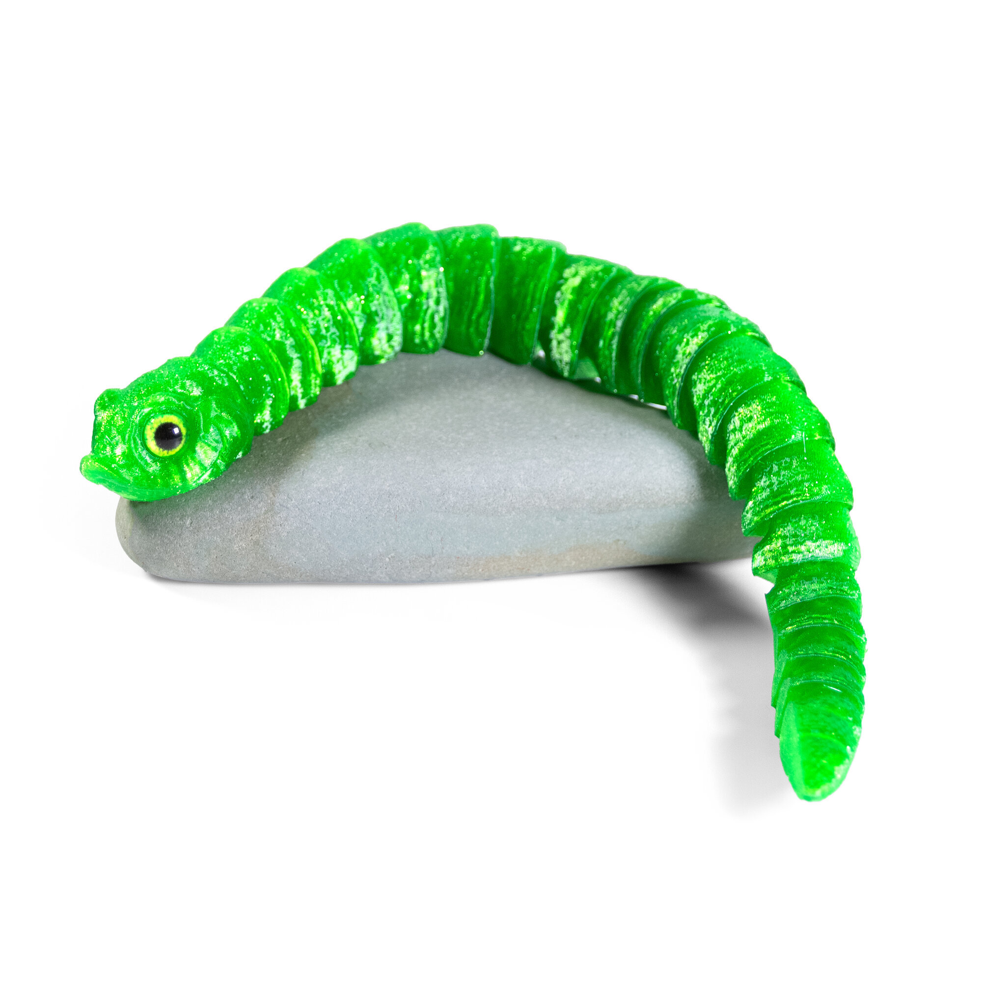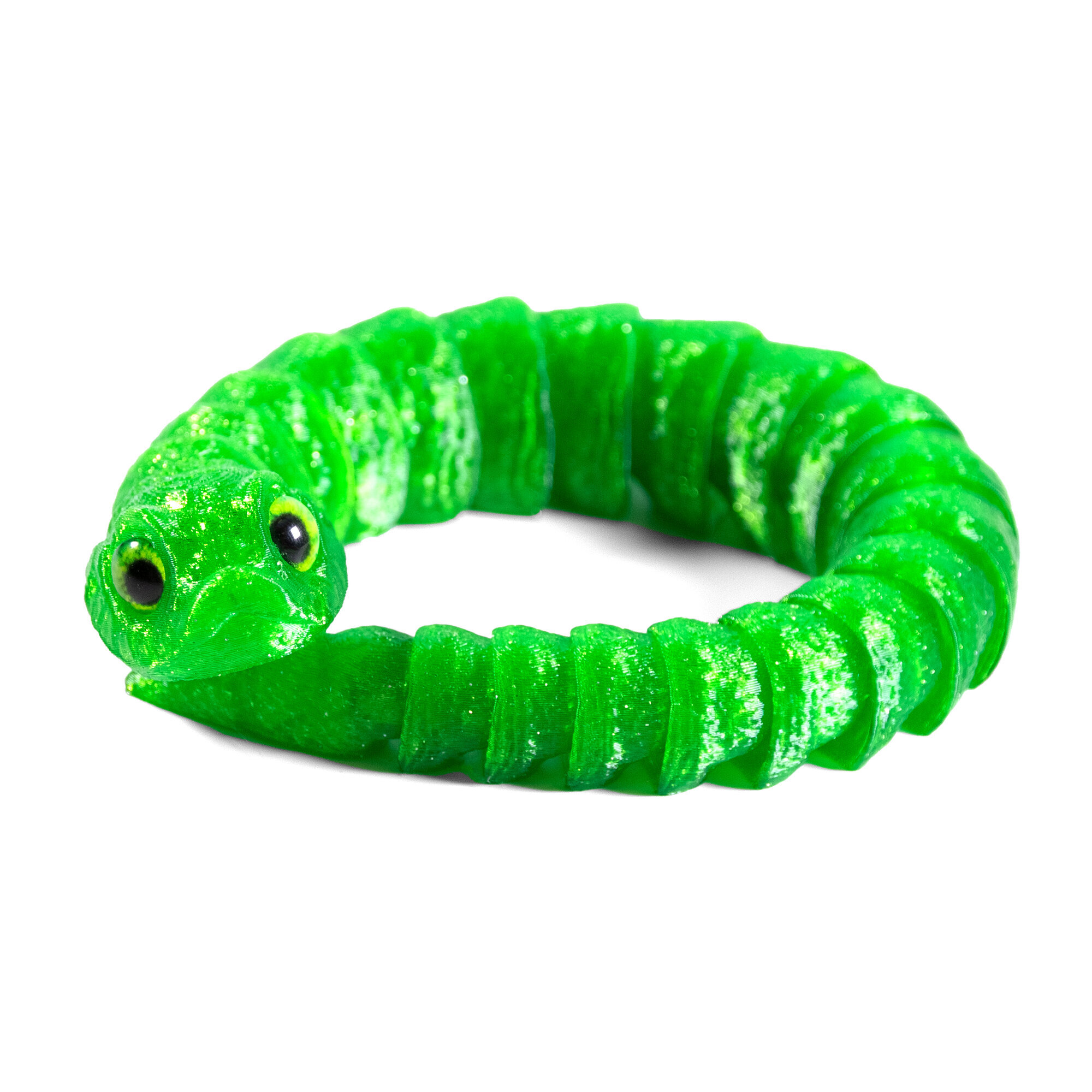 Гибкая игрушка-антистресс, змея с глазами, 3D печать, 27 см., зеленая