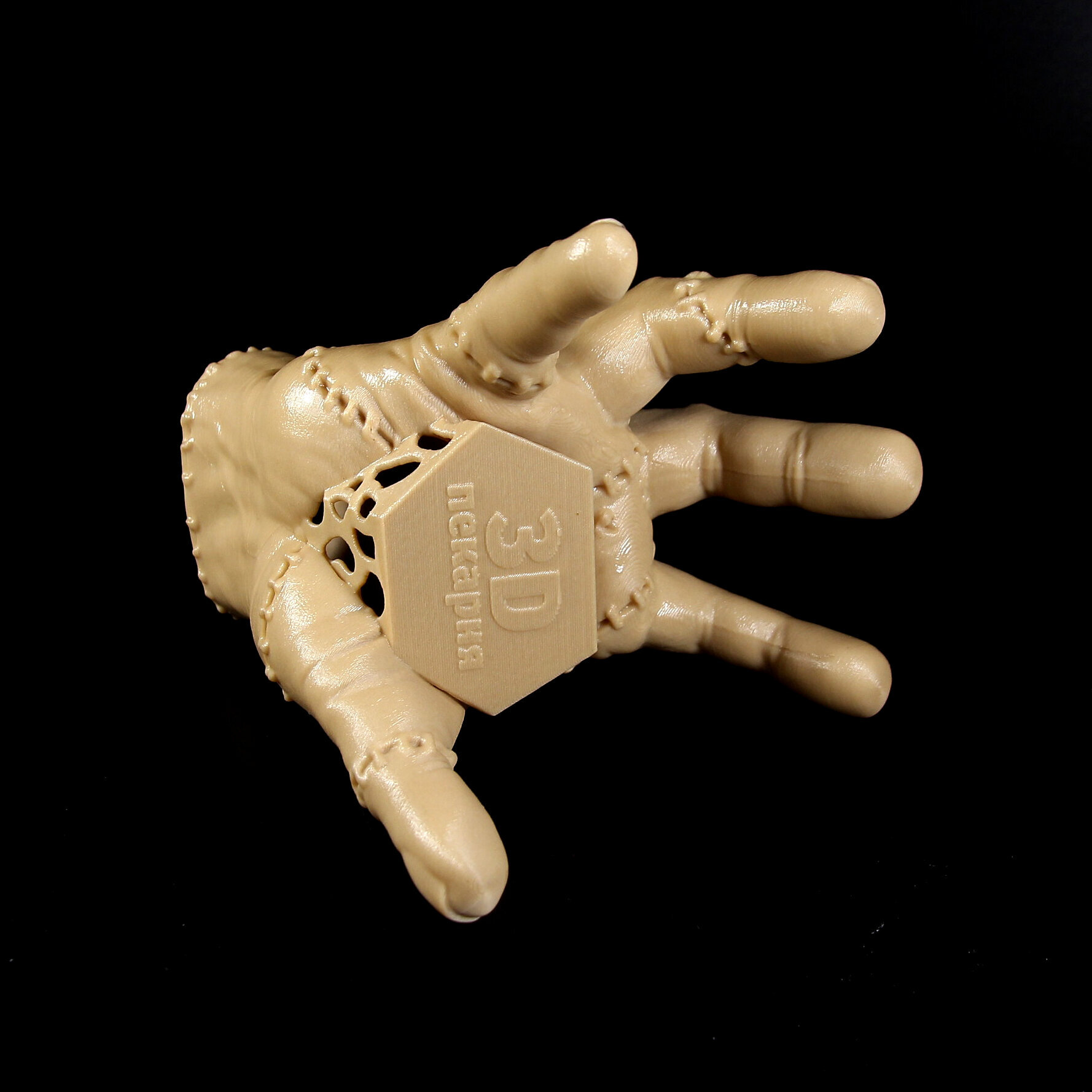 Статуэтка распечатана на 3D-принтере из экологичного пластика, у которого нет посторонних запахов. Цвет "Вещи" бежевый, что позволяет имитировать натуральную кожу.
