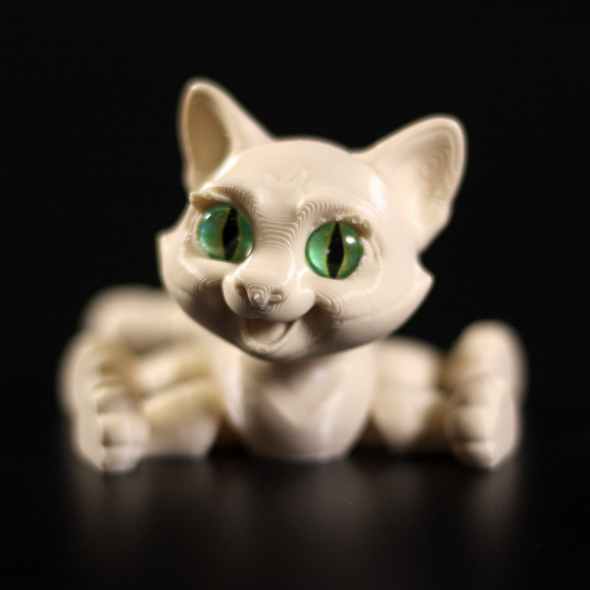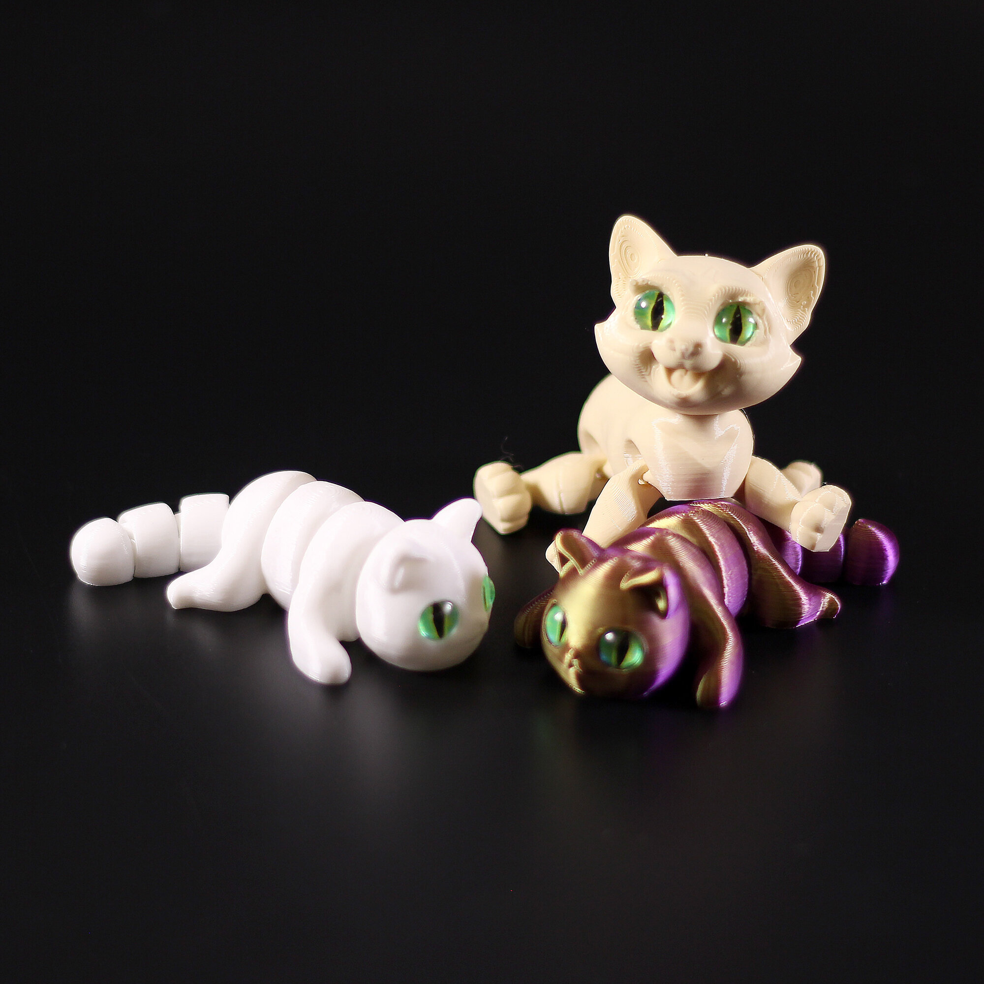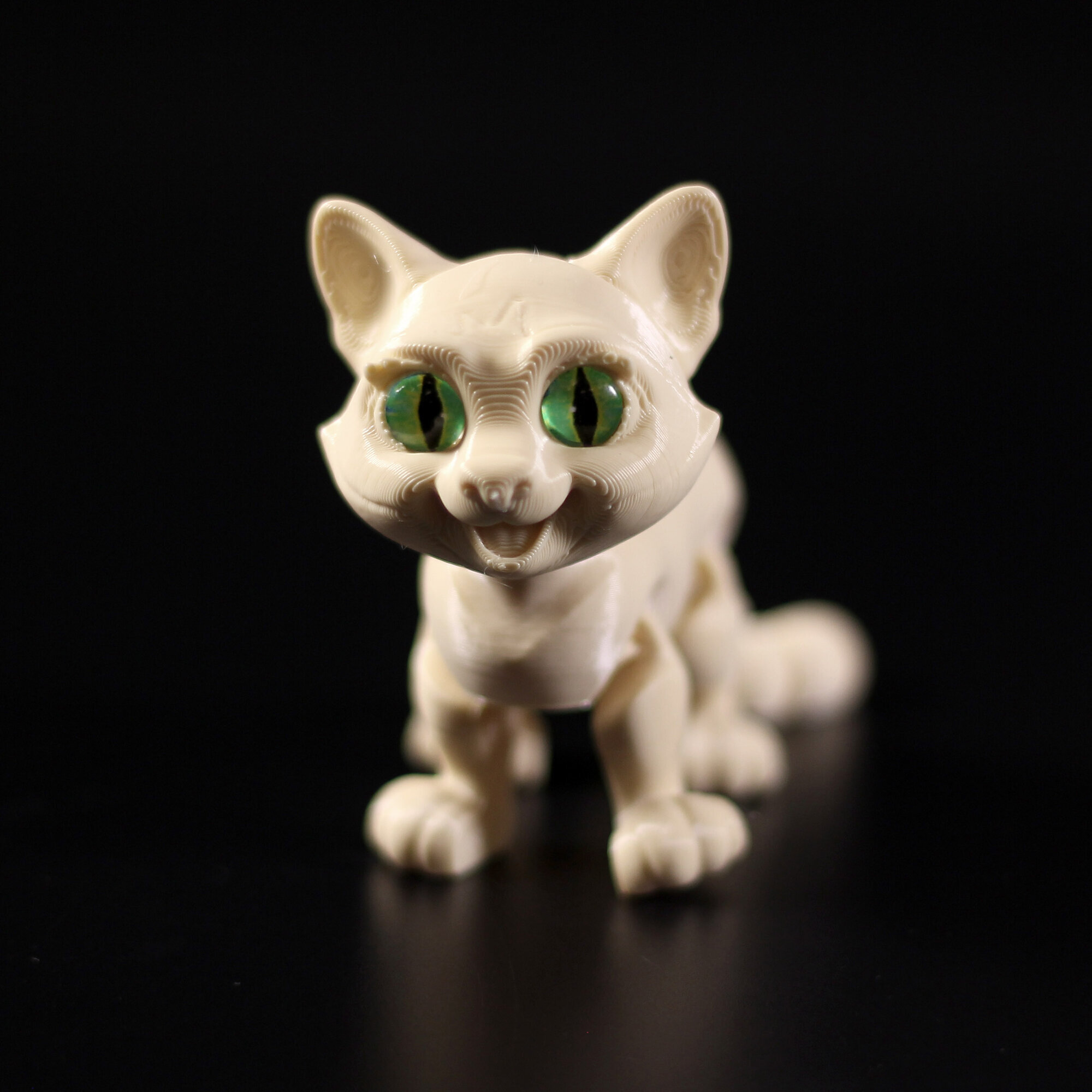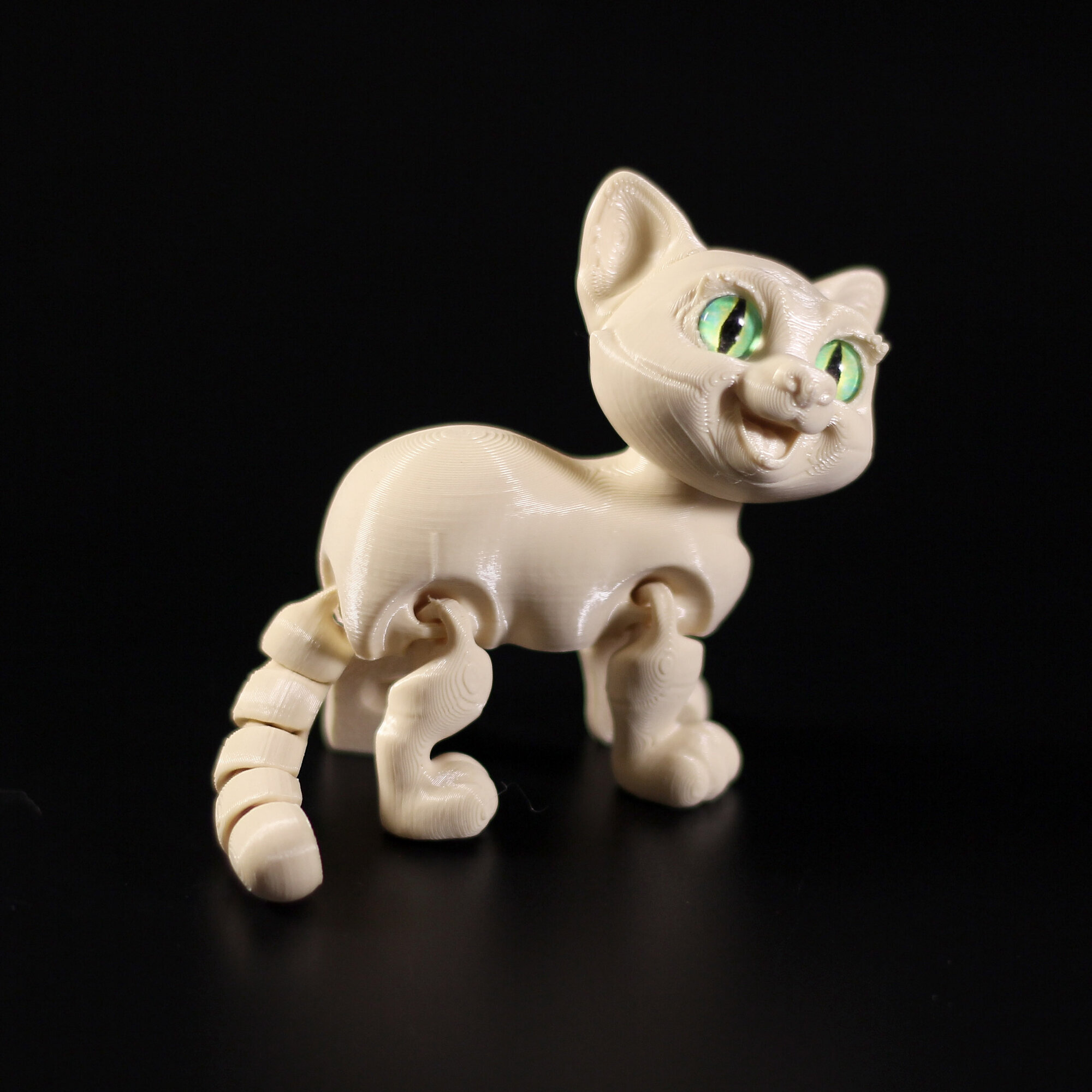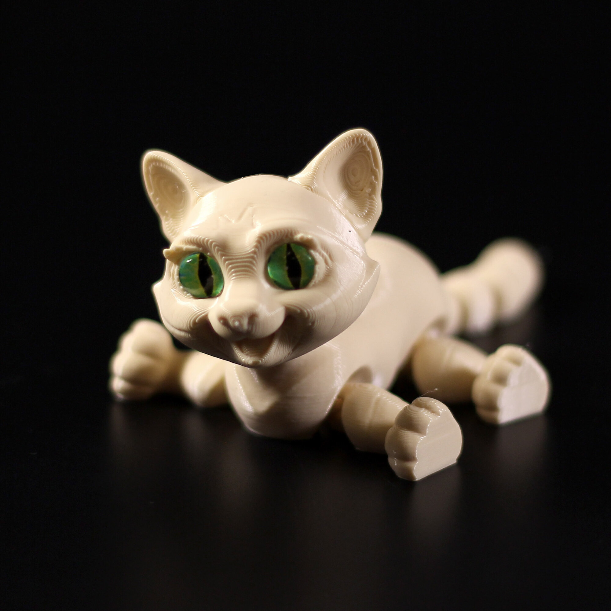 Подвижный 3D котёнок с глазками станет любимой игрушкой, украшением интерьера, и чудесным подарком.Благодаря необычному и современному дизайну с игрушкой котёнком с удовольствием играют как мальчики, так и девочки. Фигурку хочется взять в руки, чтобы рассмотреть детали и понять как она сделана.