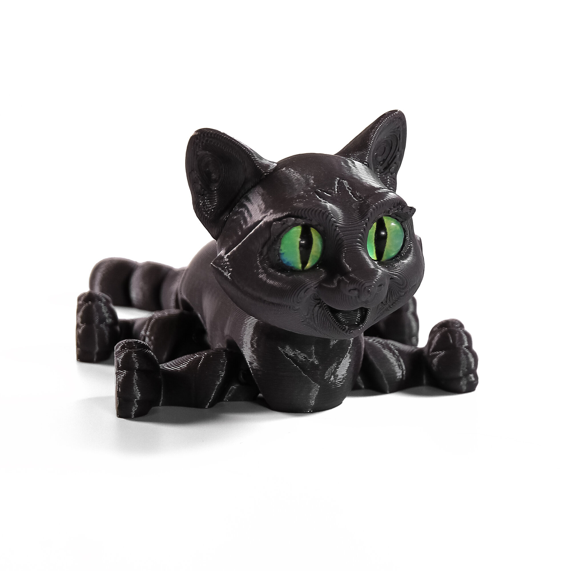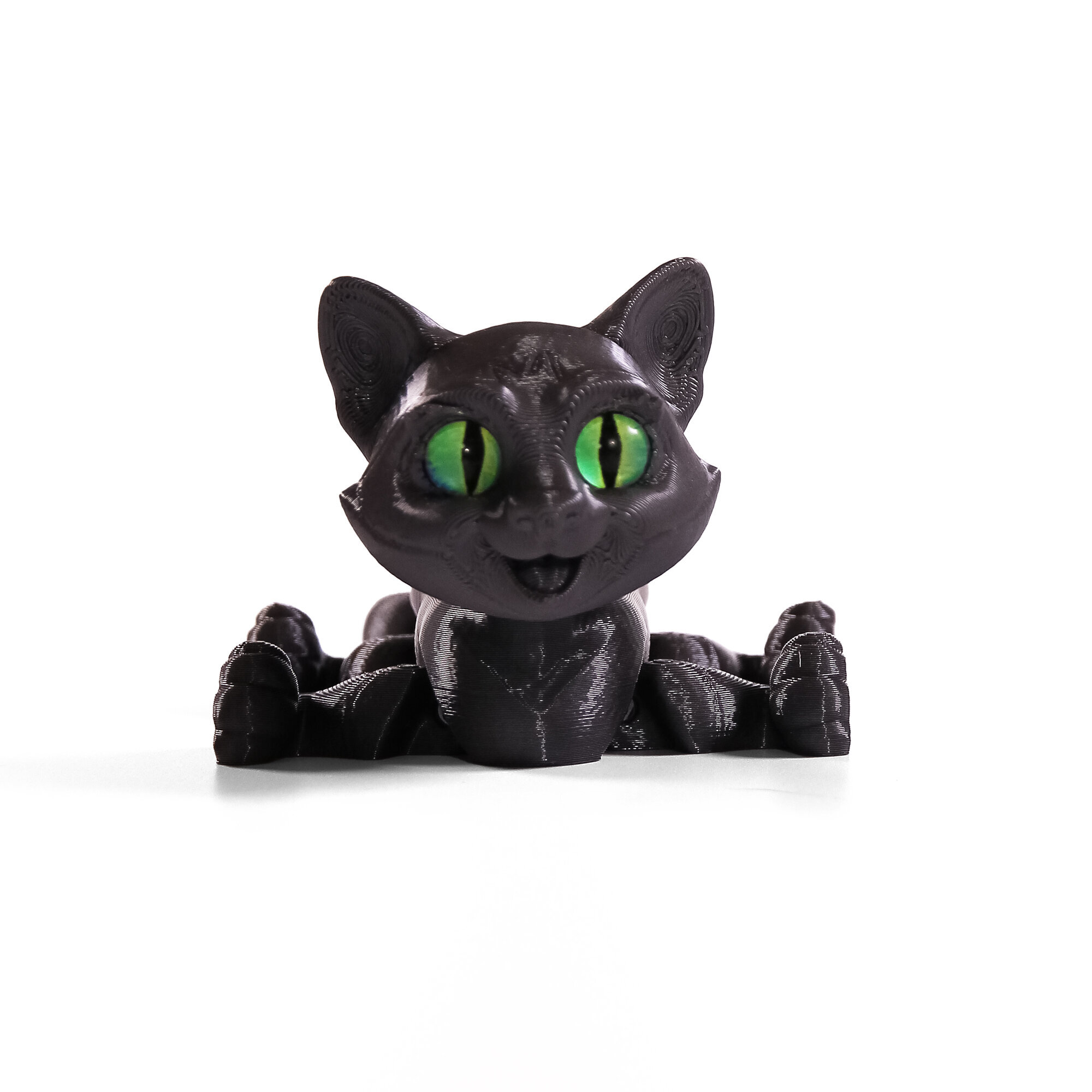 Подвижный 3D котёнок с глазками станет любимой игрушкой, украшением интерьера, и чудесным подарком.Благодаря необычному и современному дизайну с игрушкой котёнком с удовольствием играют как мальчики, так и девочки. Фигурку хочется взять в руки, чтобы рассмотреть детали и понять как она сделана.