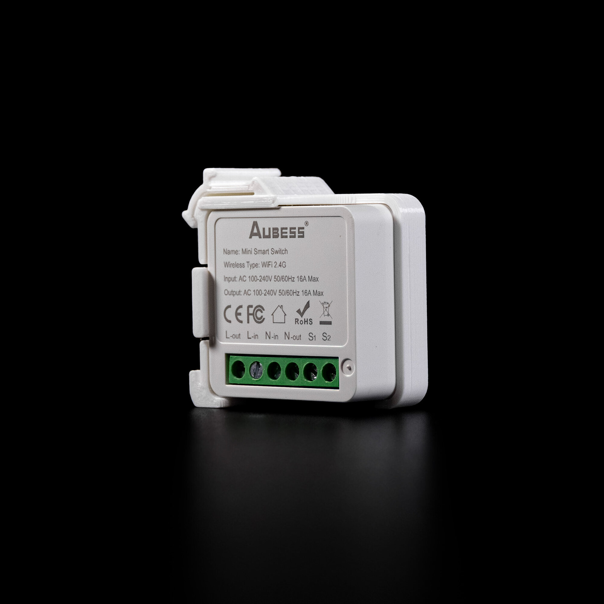 Крепление боковое для реле Aubess на динрейку Тuya Аubess Mini Smart Switсh, белое