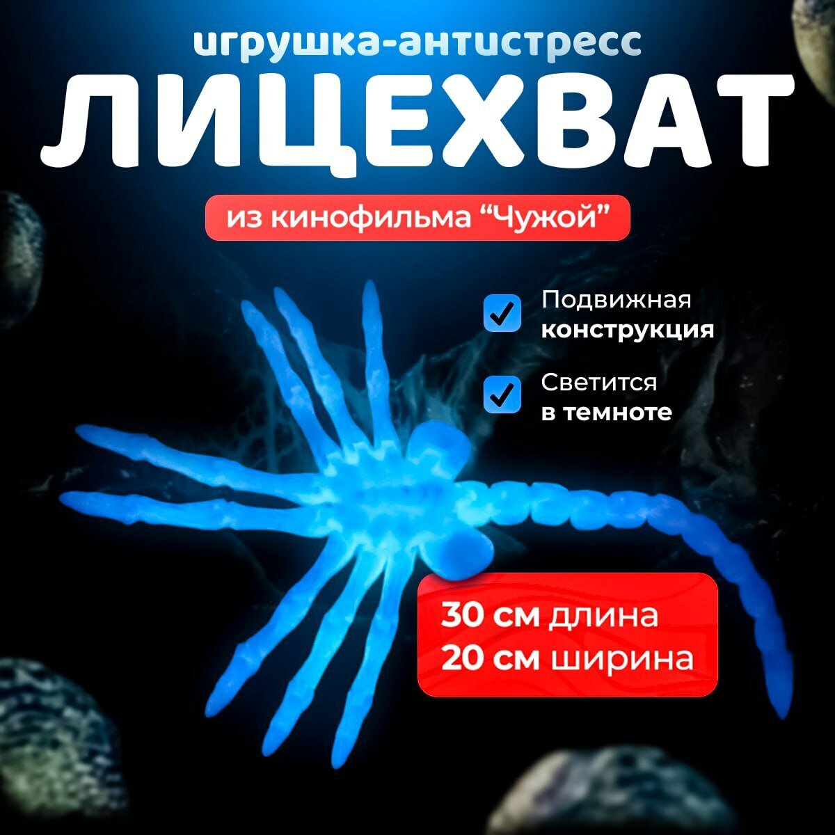 Лицехват из к/ф Чужой (FaceHugger), светящийся: подвижная и шарнирная фигурка для любителей кино