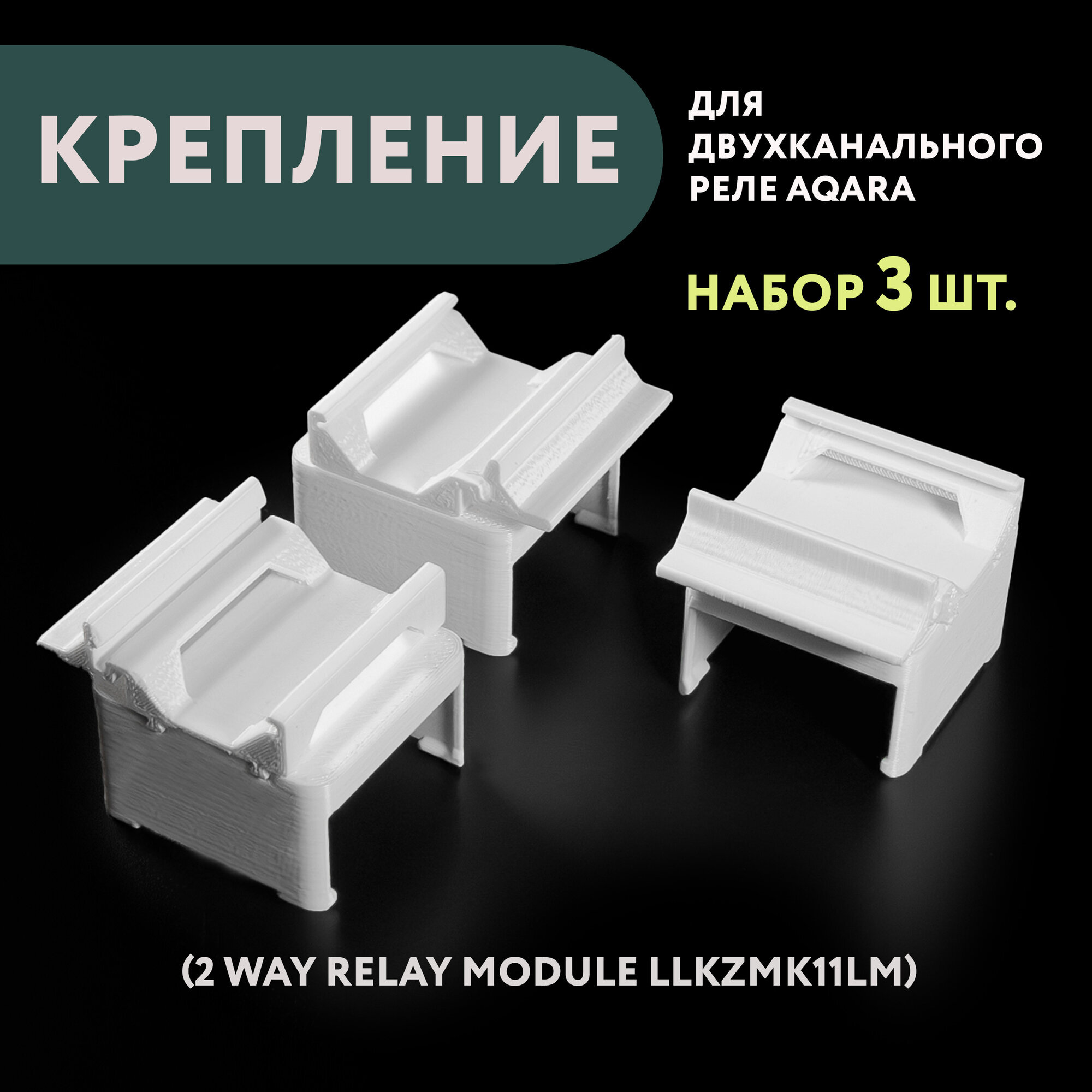 Набор 3 шт. Крепление для двухканального реле Aqara на динрейку для умного дома, 3D печать, (Aqara 2 Way Relay Module LLKZMK11LM), белые