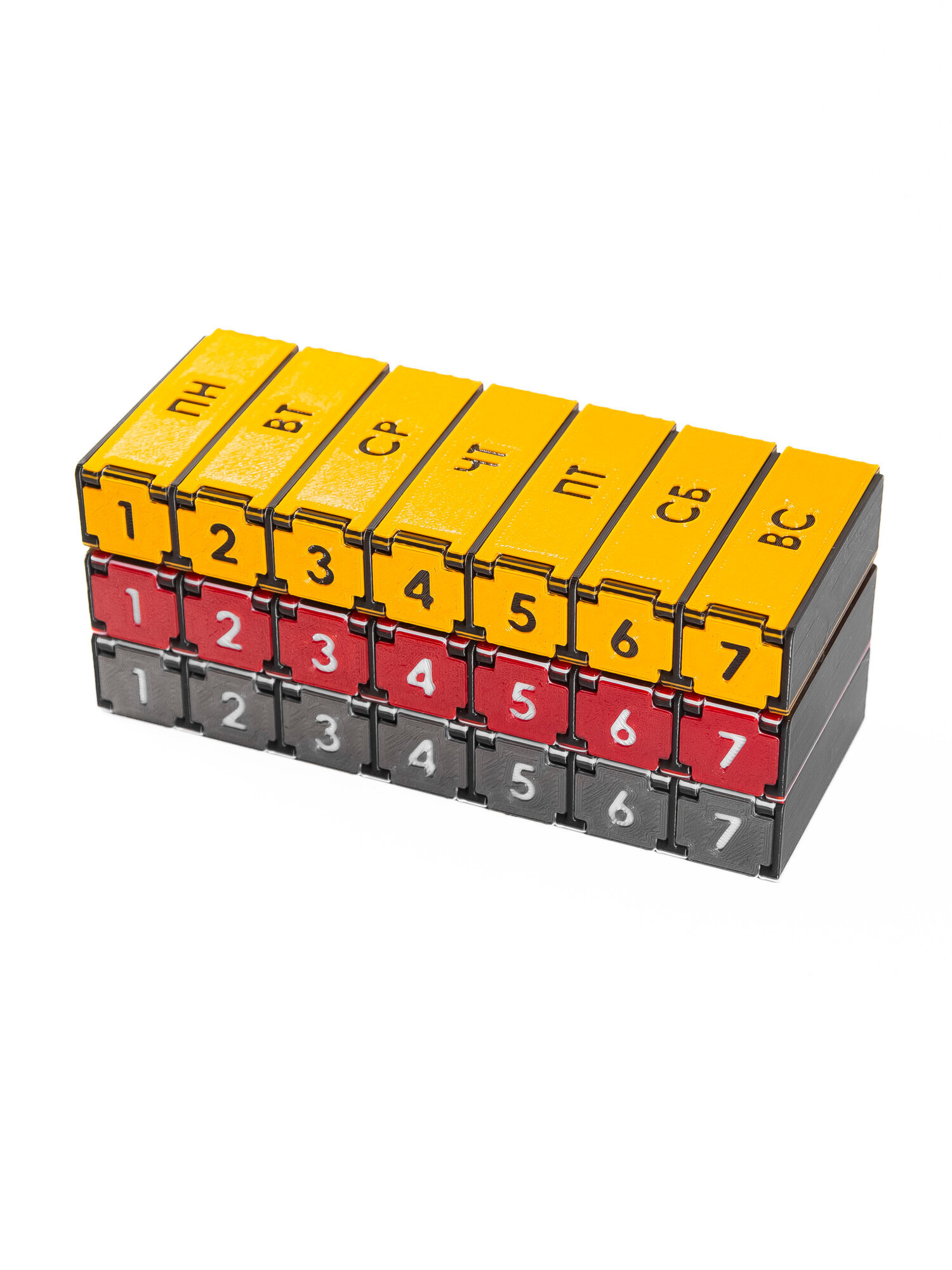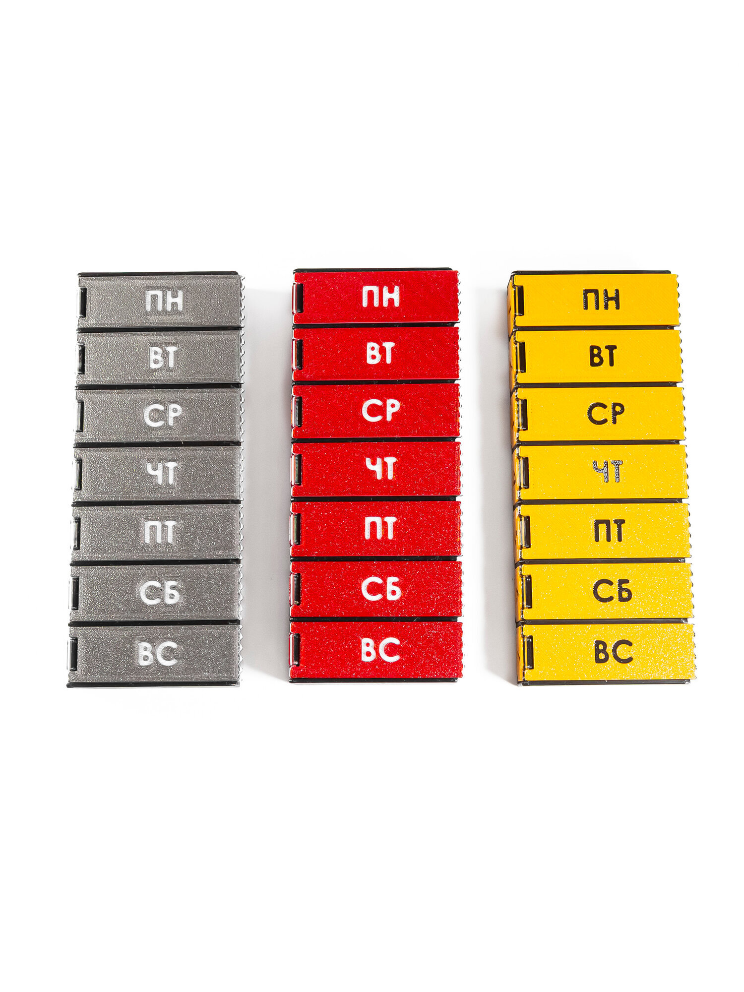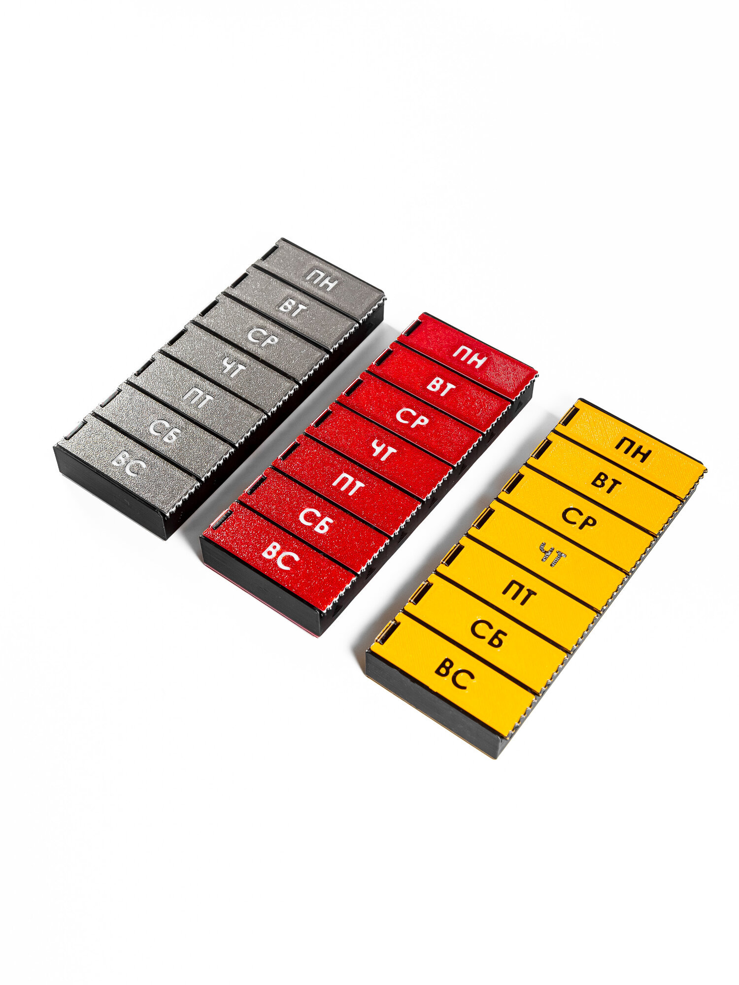 Набор 3 шт., таблетницы на 7 дней, на русском языке, 3D печать, красная, серая, оранжевая