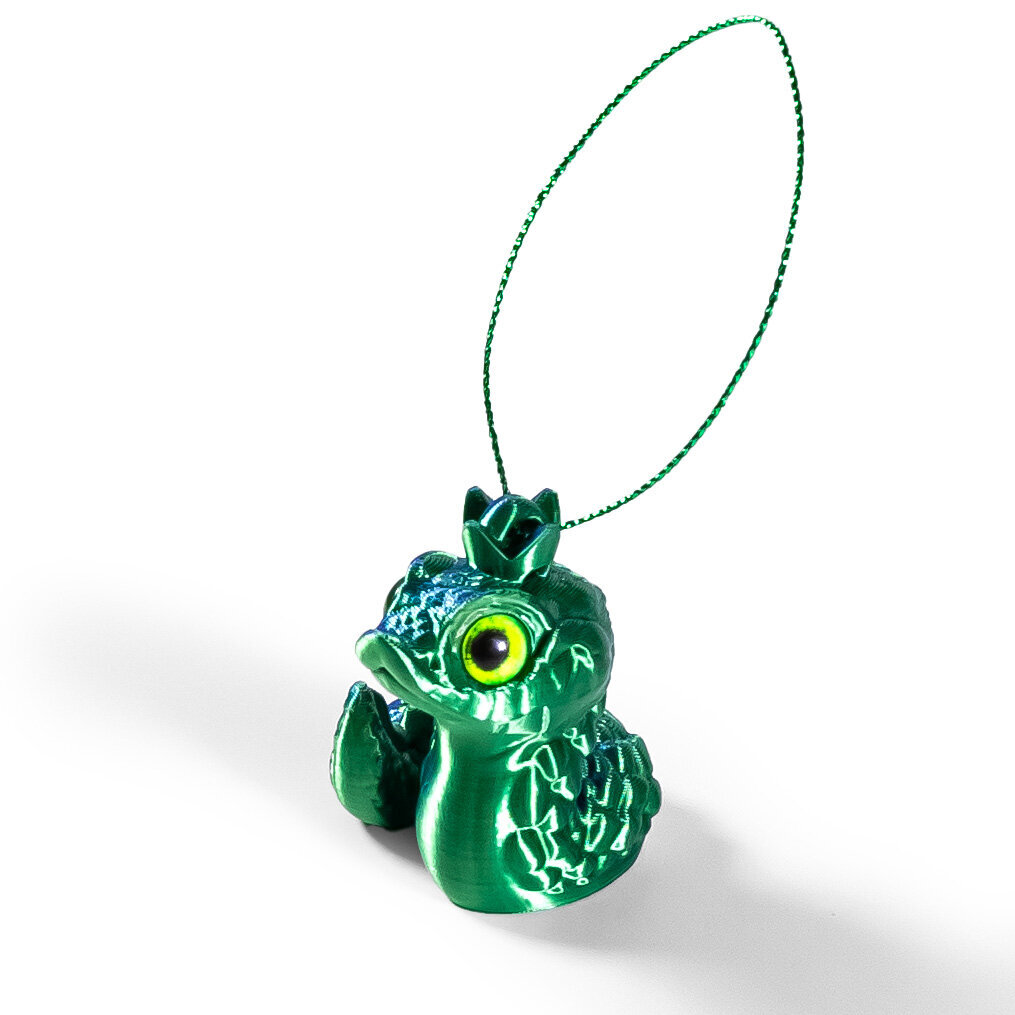 Змеи, являющиеся символом 2025 года, представляют собой набор из змеи игрушки с петелькой для подвески в виде короны и подвижной змейки чёрного цвета.
