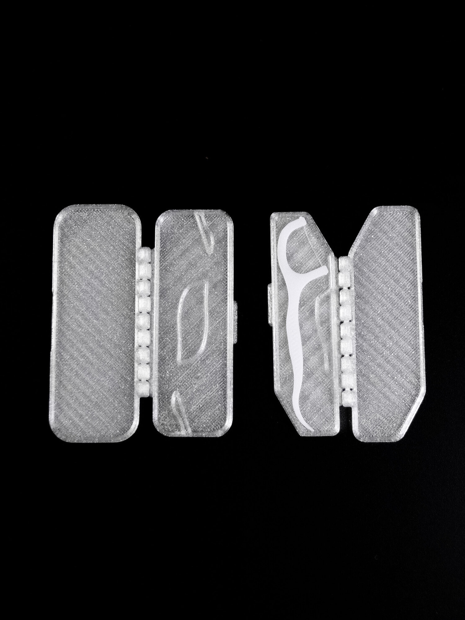 - Футляры для флоссеров напечатаны на 3D принтере из экологичного пластика Petg. Не тускнеют со временем, не портятся от воды, не имеют посторонних запахов.