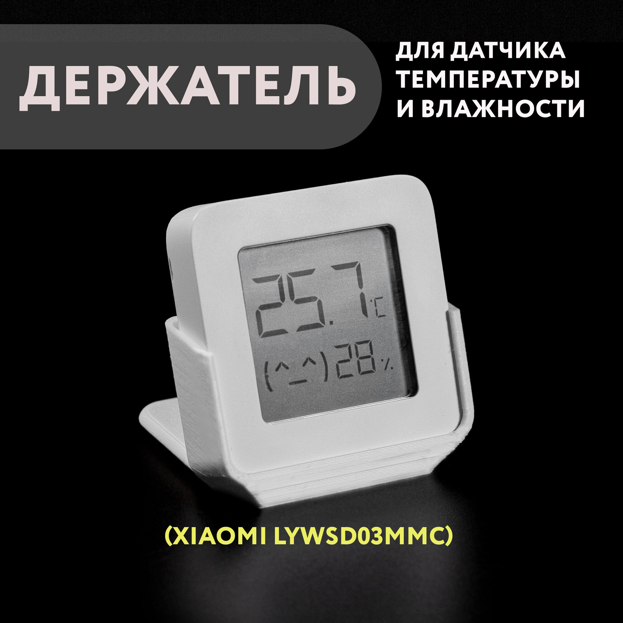 Держатель для датчика с ч/б дисплеем. Распечатан на 3d принтере из белого PetG пластика.