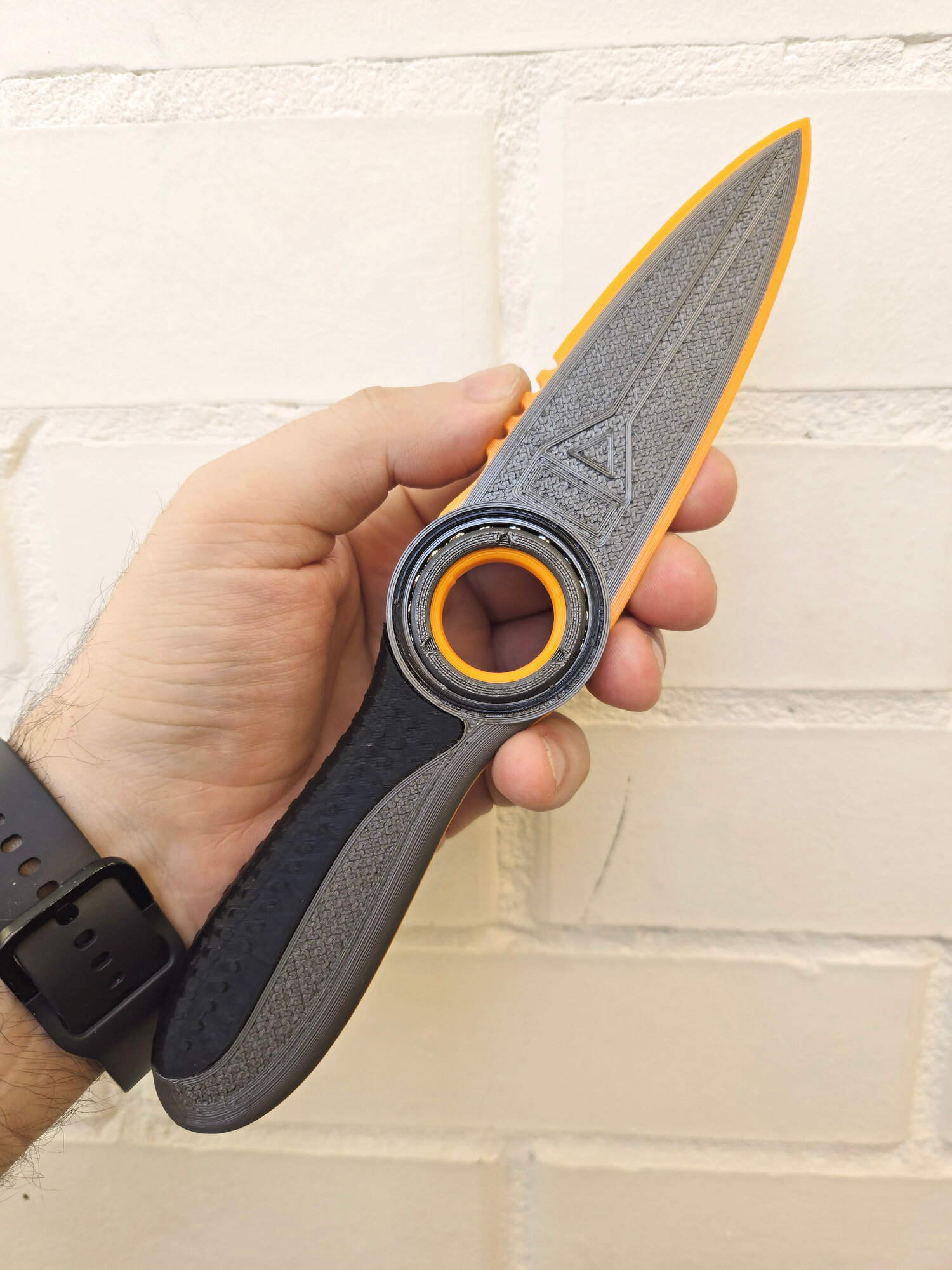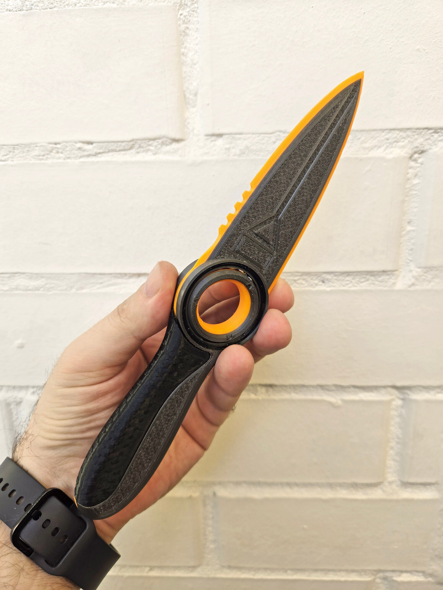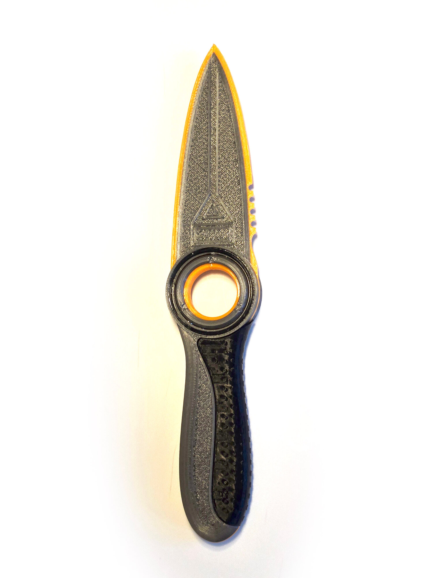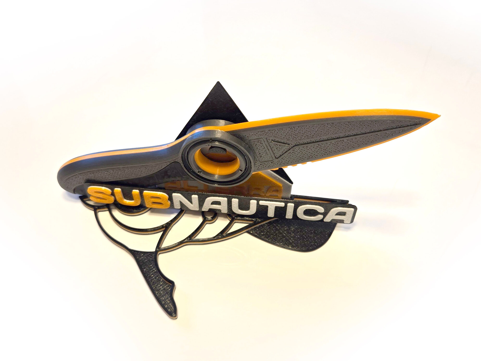 Сувенир в виде ножа из игры Subnautica Сабнатика с брендированной подставкой. Напечатан на 3D принтере из пластика PETG. Конструктив включает в себя вращающееся центральное кольцо, оранжевую кромку лезвия и черную рукоять. Подставка имеет разборную конструкцию и поставляется в комплекте с ножом. Не имеет посторонних запахов, не портится от воды. Изделие абсолютно безопасно. Удобно лежит в руке, максимально приближено к оригинальному игровому оружию, позволяет реально окунуться в атмосферу подводного симулятора выживания.