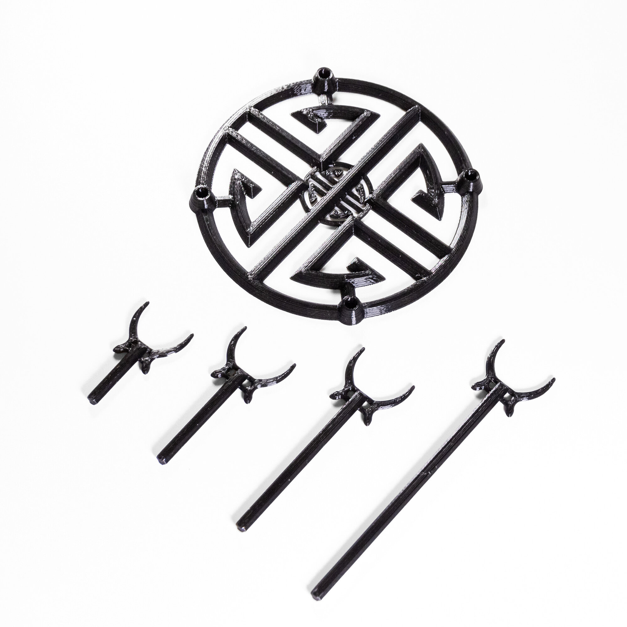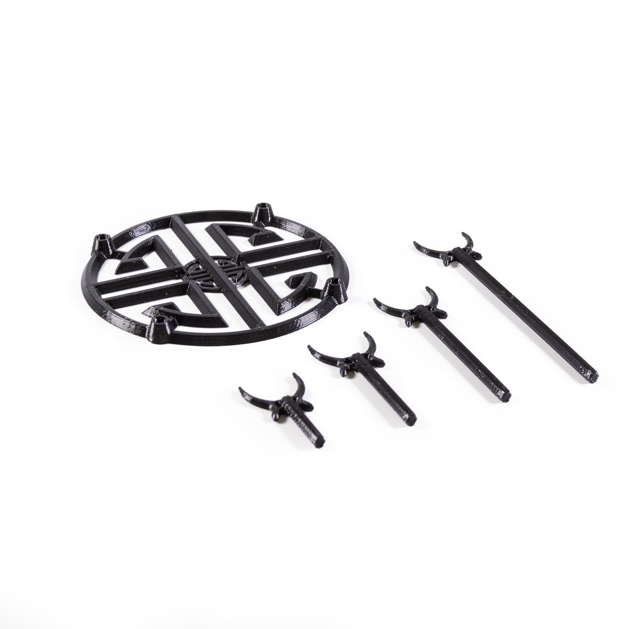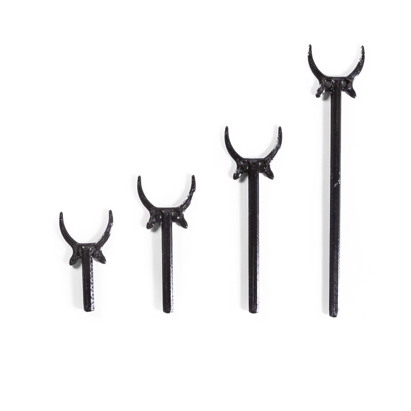 Конструкция разборная. Размеры: диаметр 10 см., высота самого высокого держателя 11 см., маленького 4 см.