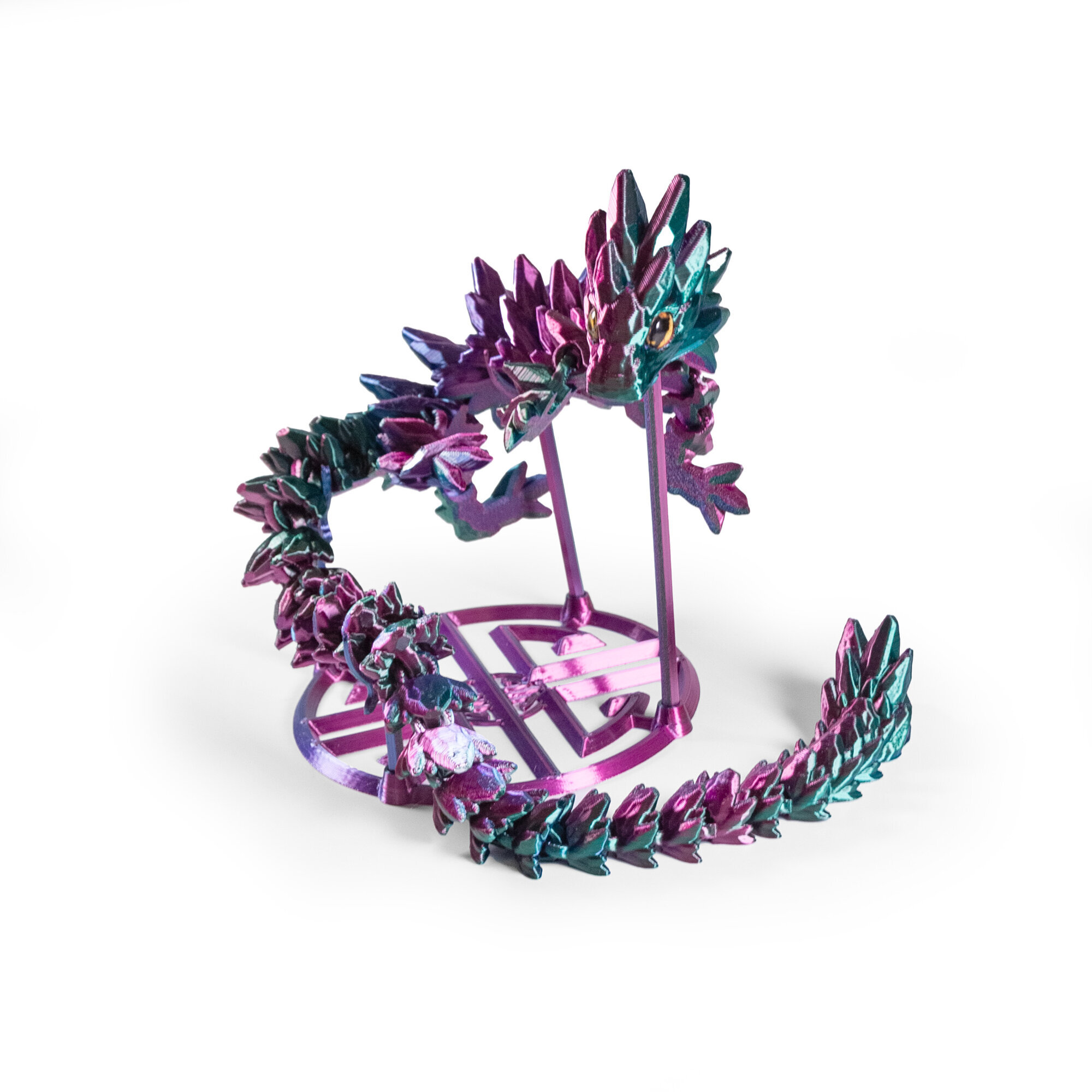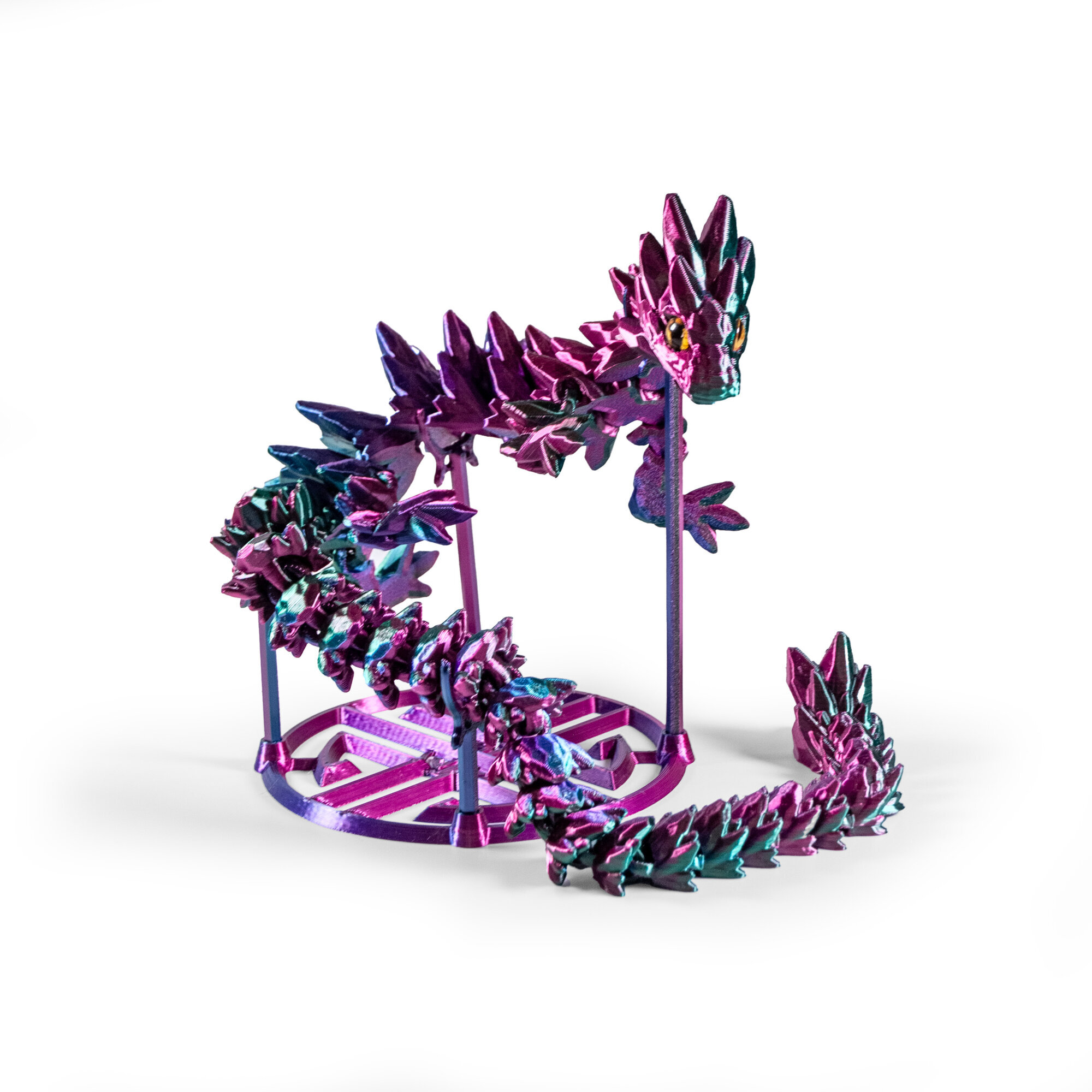 Подставка для дракона и шарнирных фигурок представляет собой уникальное и стильное решение для хранения и демонстрации ваших любимых гибких игрушек, таких как драконы, ящерицы и змеи. Красно-сине-зеленое исполнение подставки с ярким шелковым блеском, добавит яркости и оригинальности в любой интерьер.