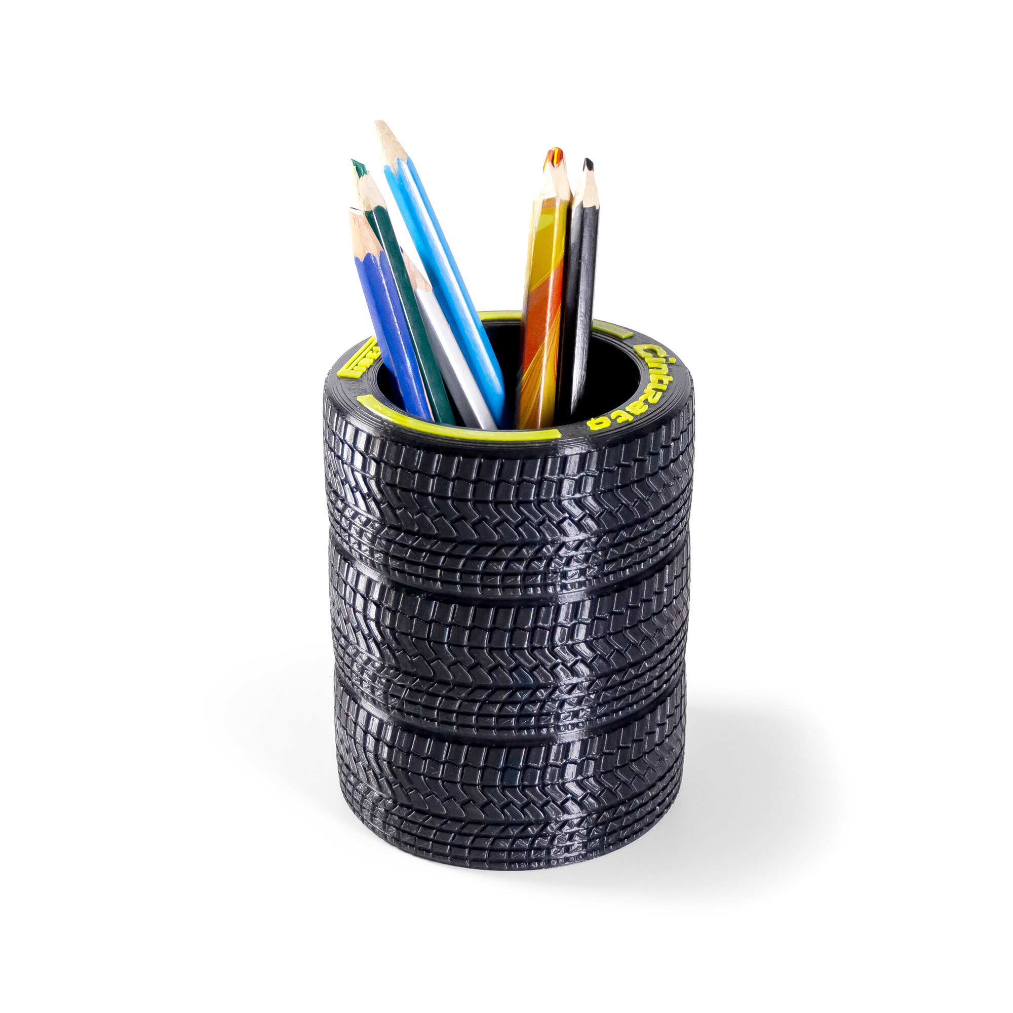 - Карандашница в виде шин с надписью "Pirelli" — отличный подарок для фанатов чемпионата Формулы-1, эксклюзивным поставщиком которого является итальянская компания по производству шин.