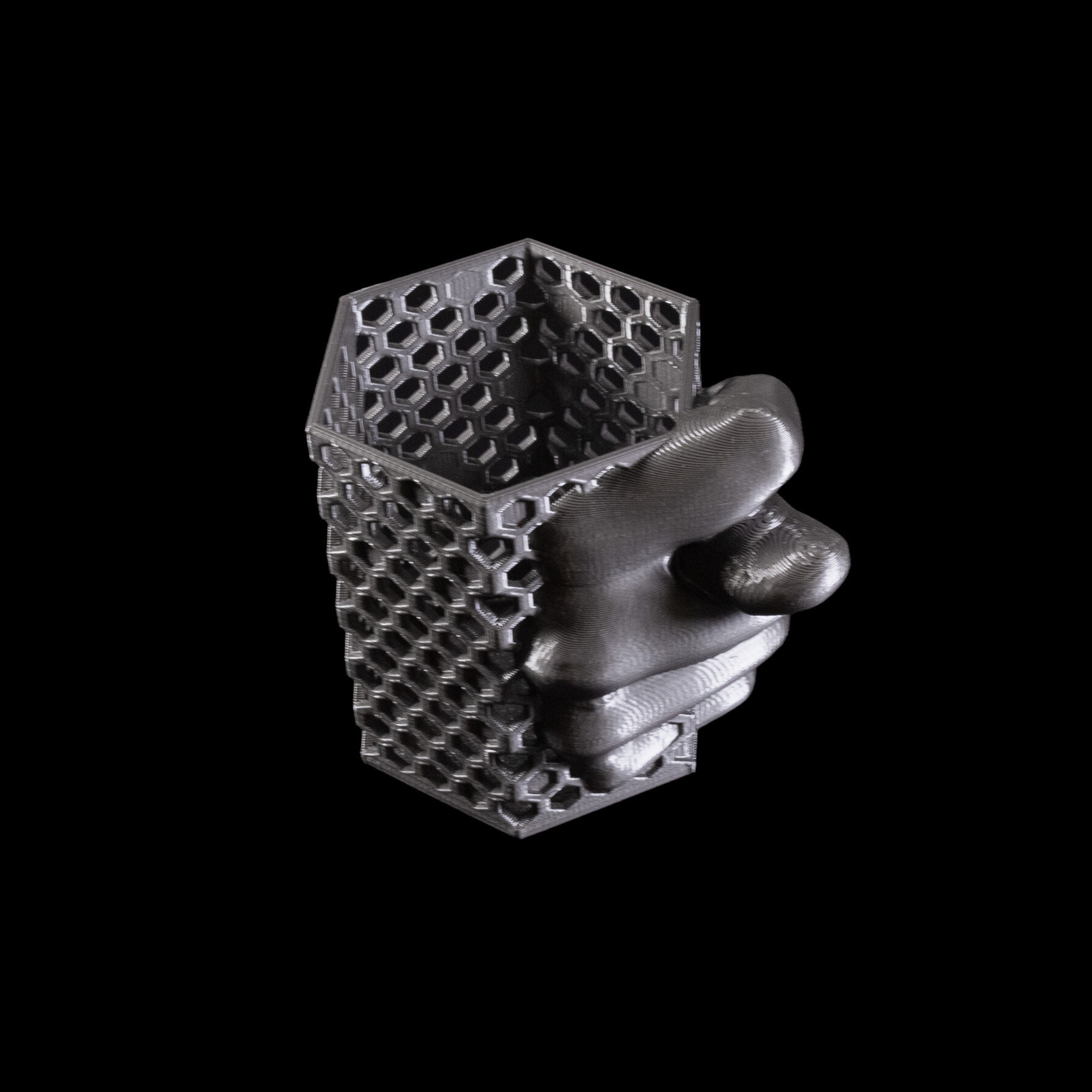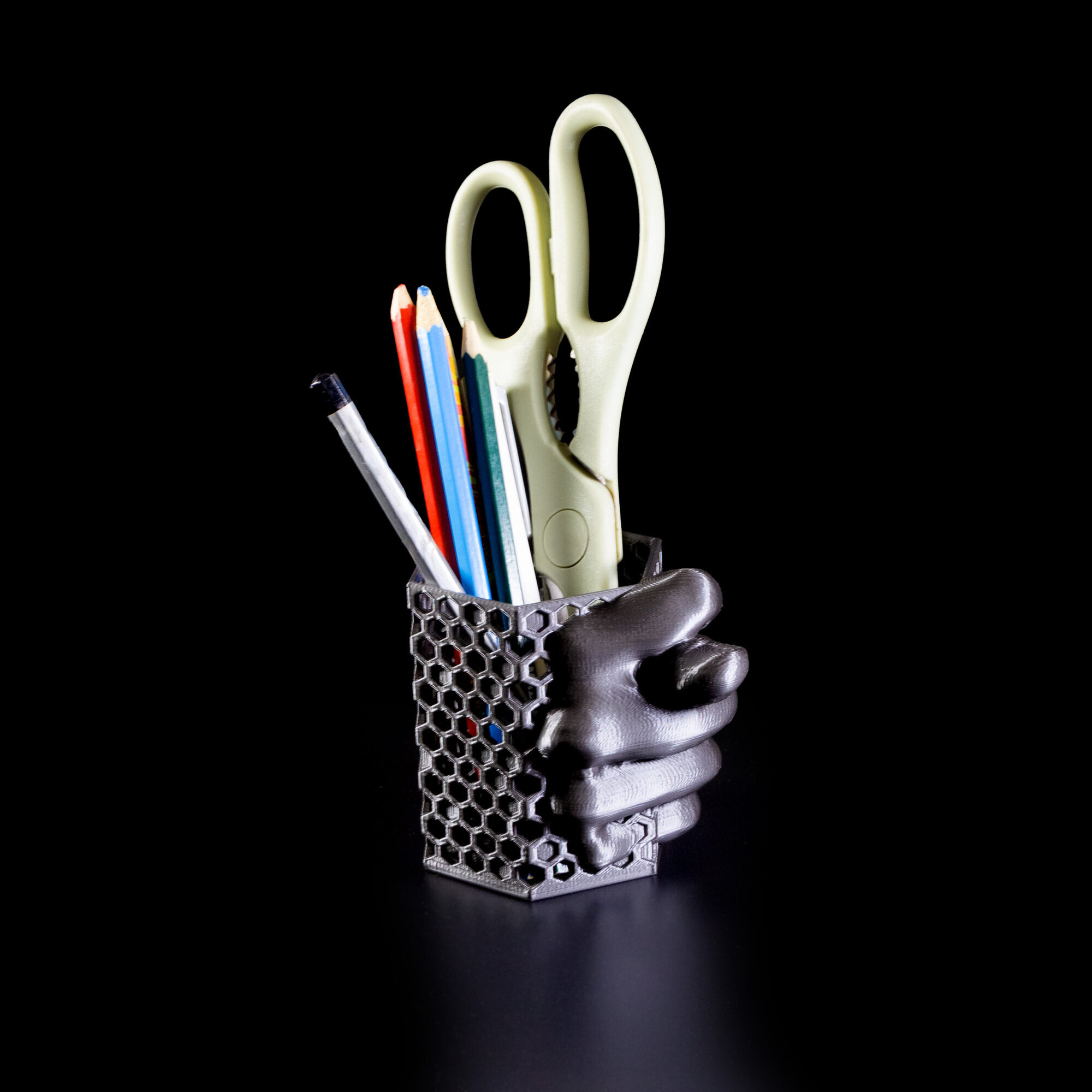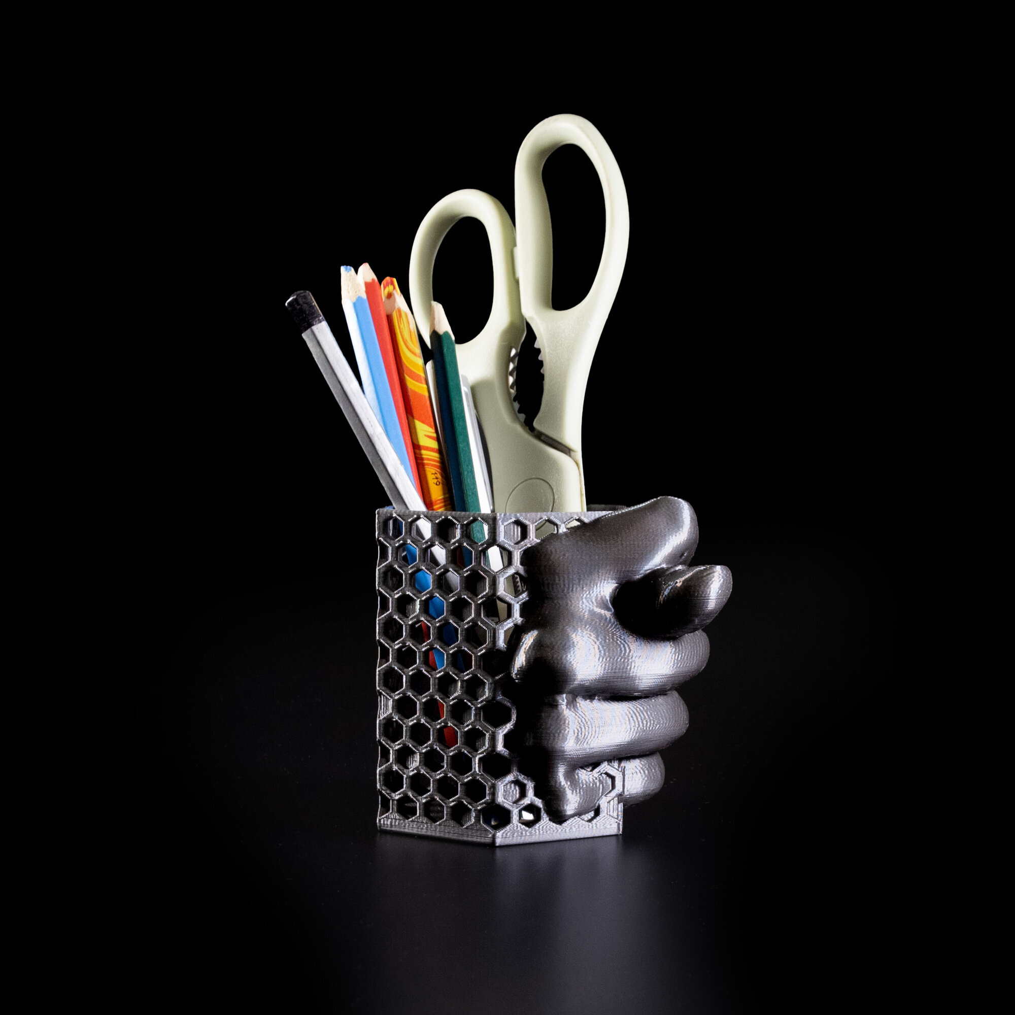 Карандашница со всем известной шуточной фигурой из трех пальцев.Напечатана на 3D принтере из безопасного пластика. Без посторонних запахов, не тускнеет со временем.