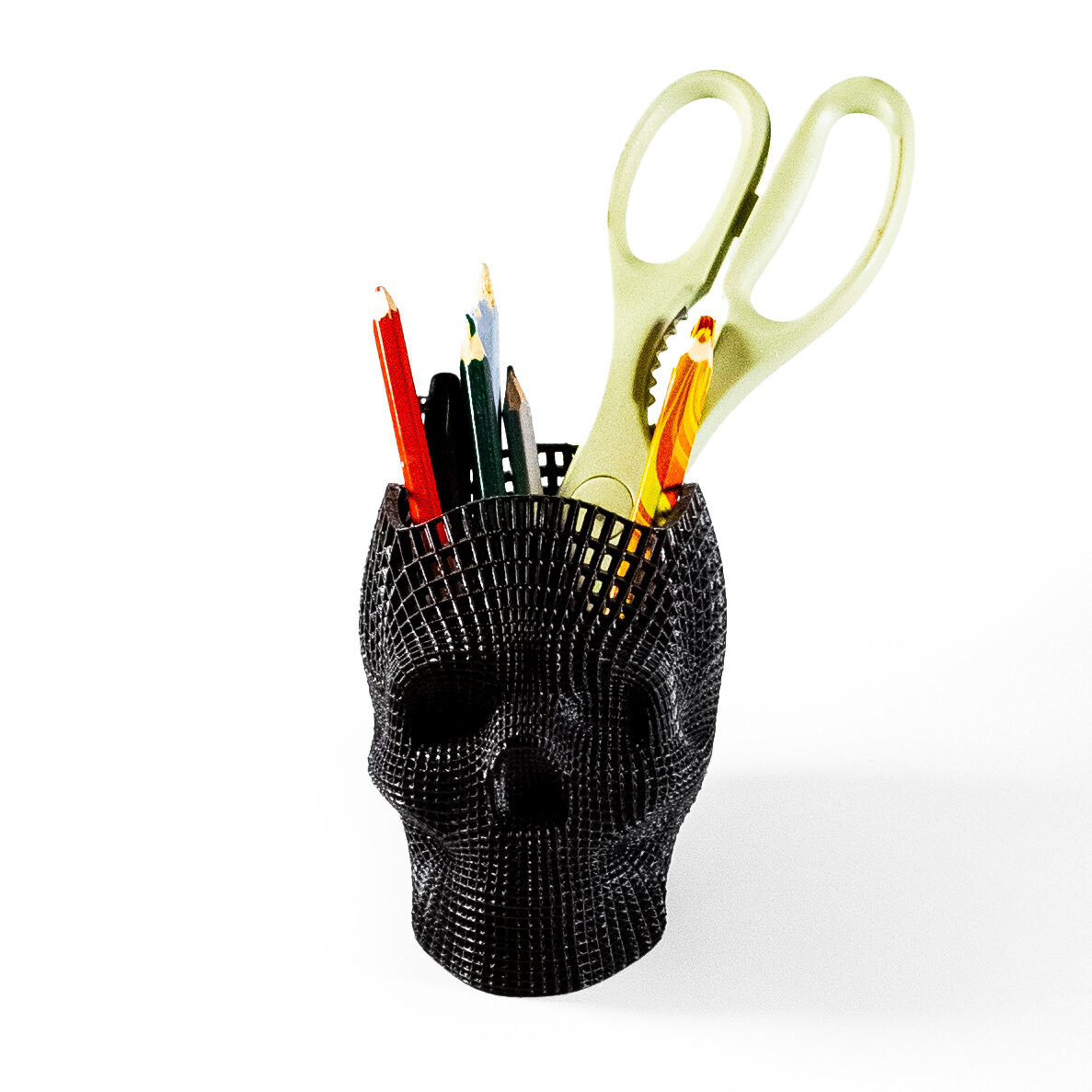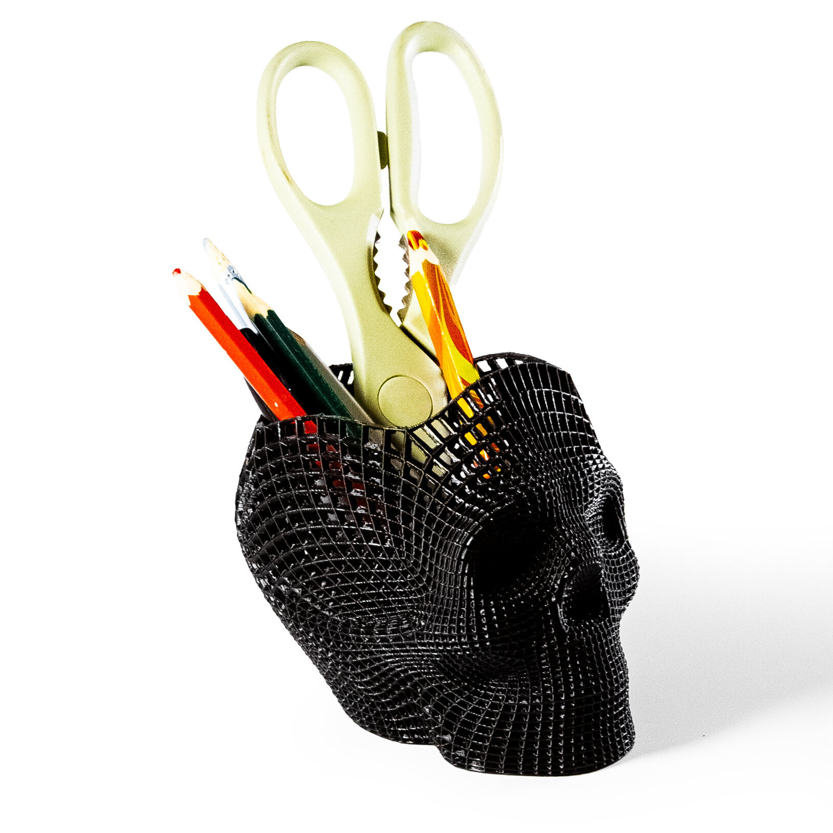 Подставка для карандашей, конфетница, череп-сетка, 3D печать, черная