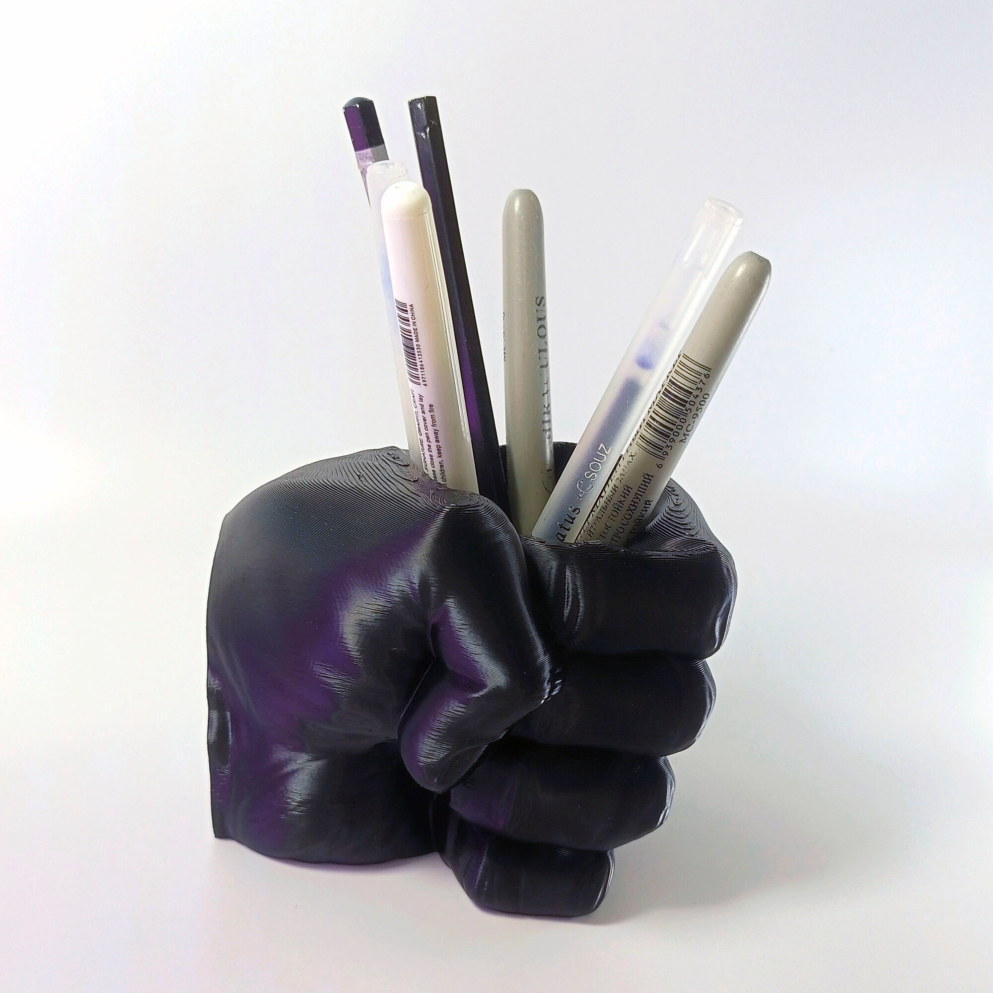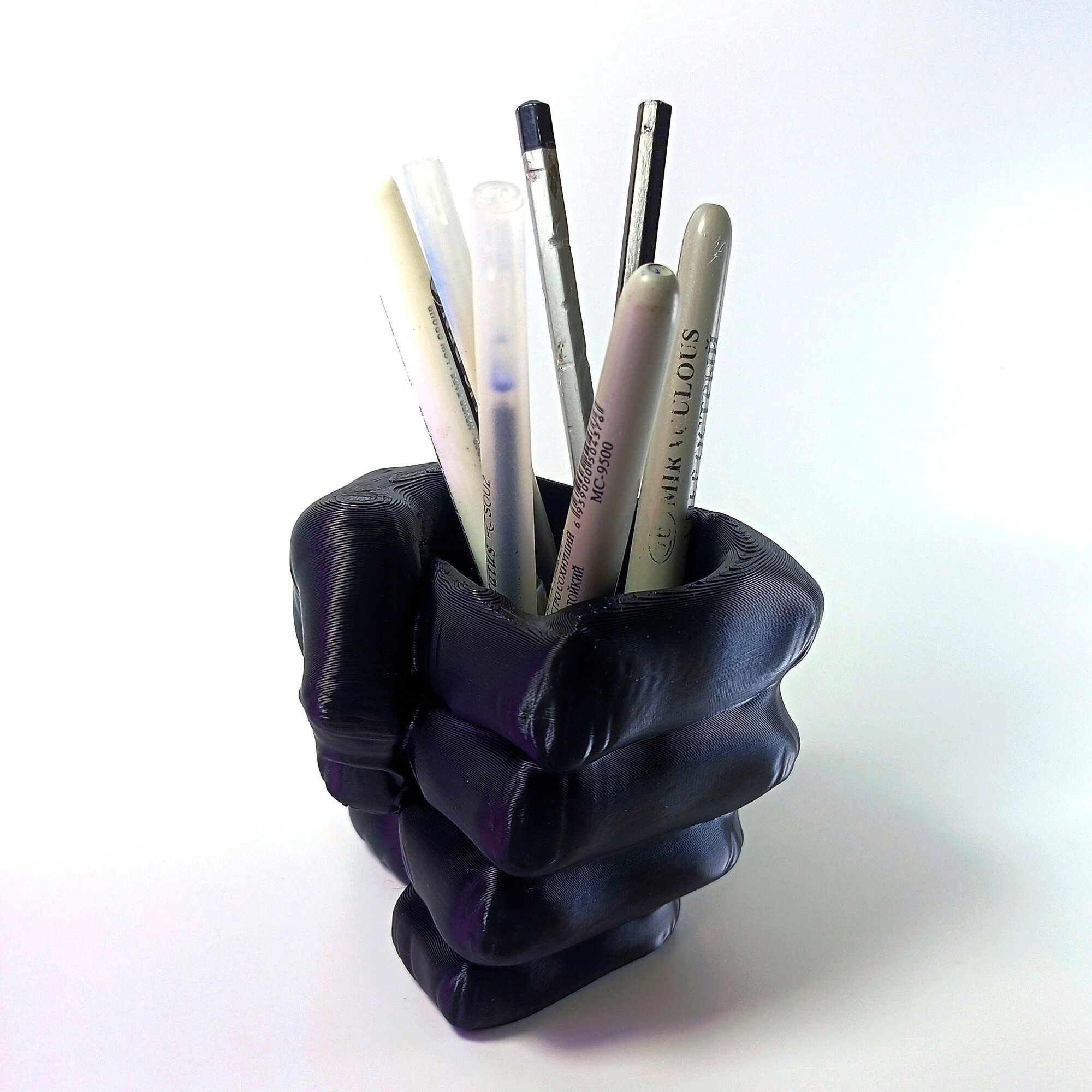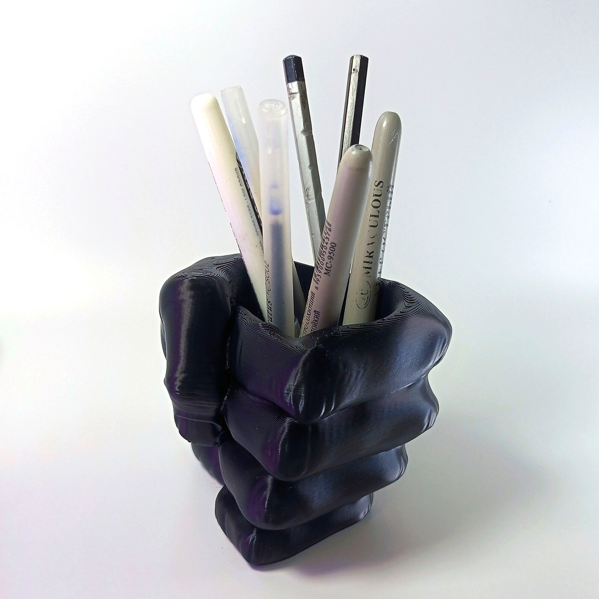 Подставка для карандашей "Кулак", черная, 3D печать, высота 9,5 см.