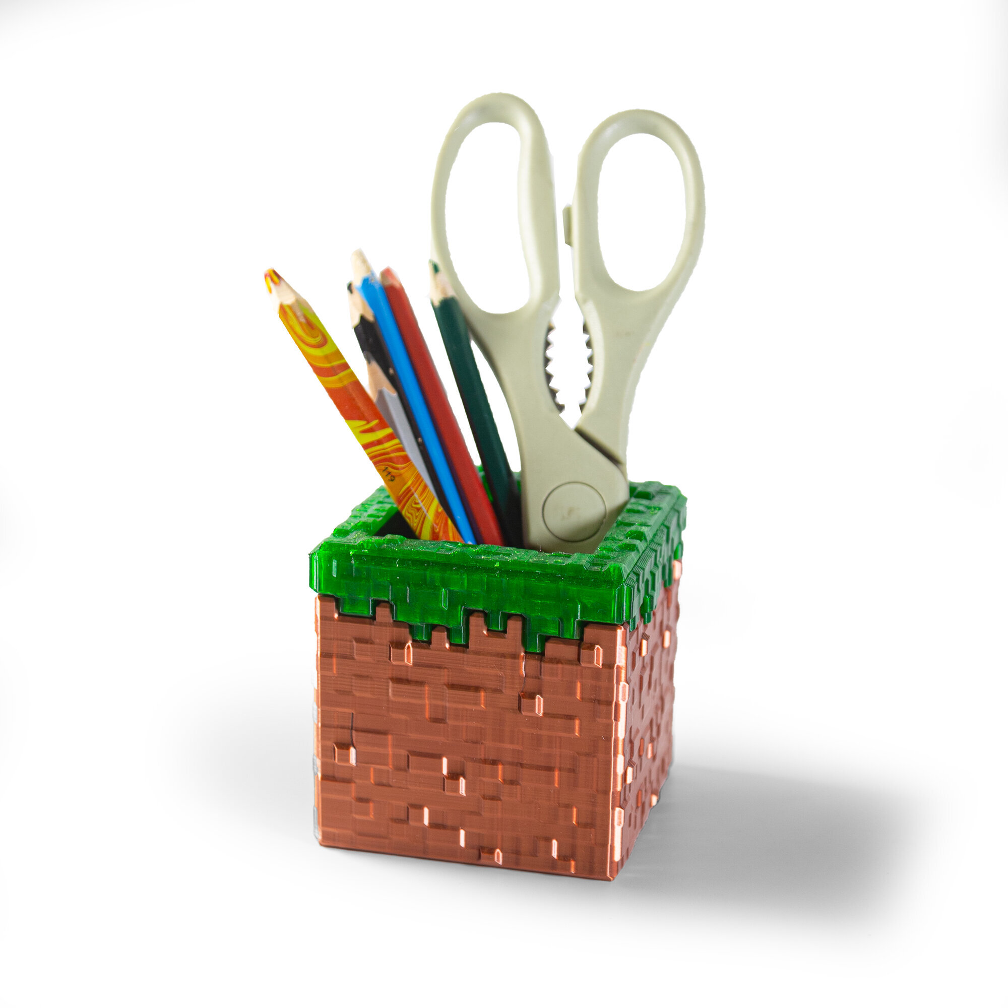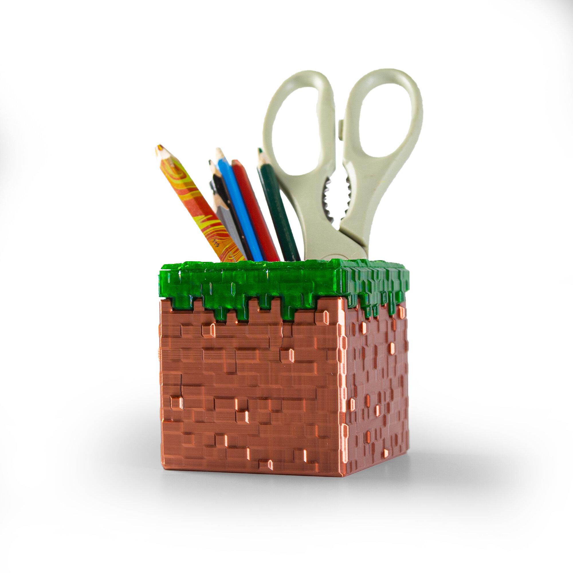 Подставка для карандашей "Minecraft" Майнкрафт в виде травяного блока Grass block (дёрн)