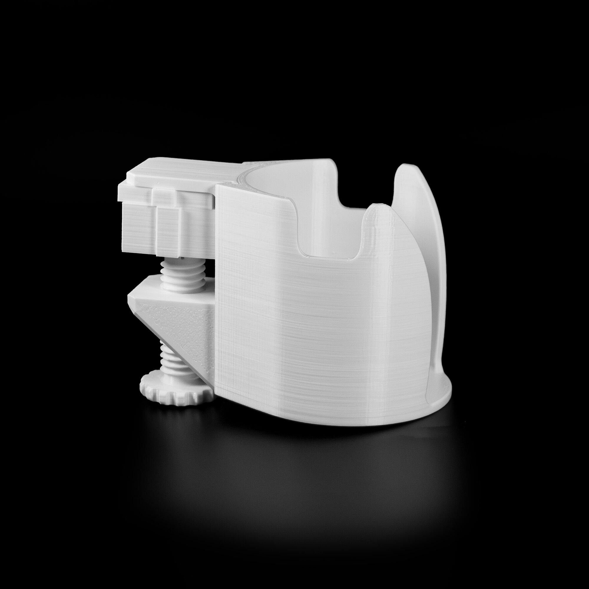 Подставка для кружки/стакана с креплением к столешнице обеспечивает безопасность использования кружки или стакана на рабочем столе. Благодаря надежному креплению и продуманной конструкции, подставка предотвращает случайное падение и проливание жидкости на дорогую электронику.Подставка изготовлена из безопасного пластика PetG, который не боится воды, нагрева и не имеет посторонних запахов. Благодаря 3D печати, подставка имеет прочный и стильный дизайн, который впишется в любой интерьер.