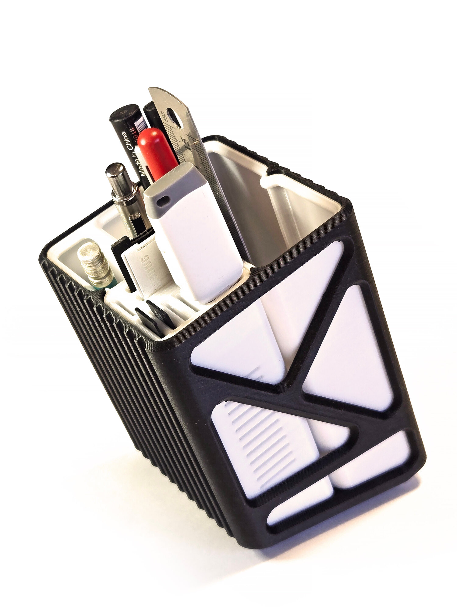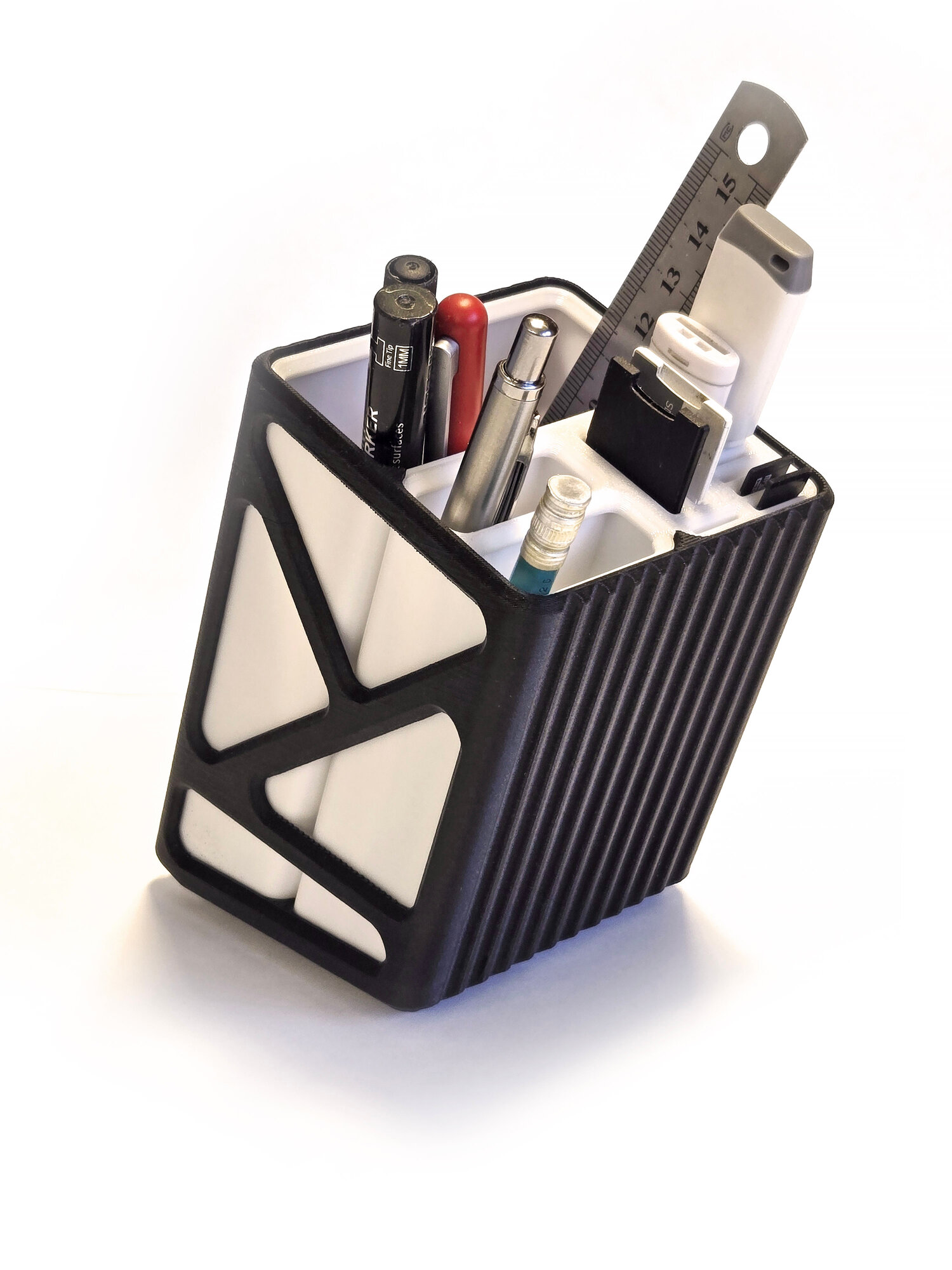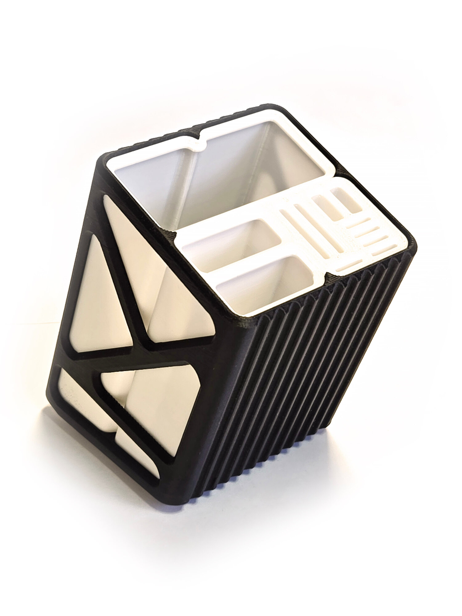 Подставка для ручек и карандашей, "Модулар", 3D печать, высота 12,5 см., белая с чёрным