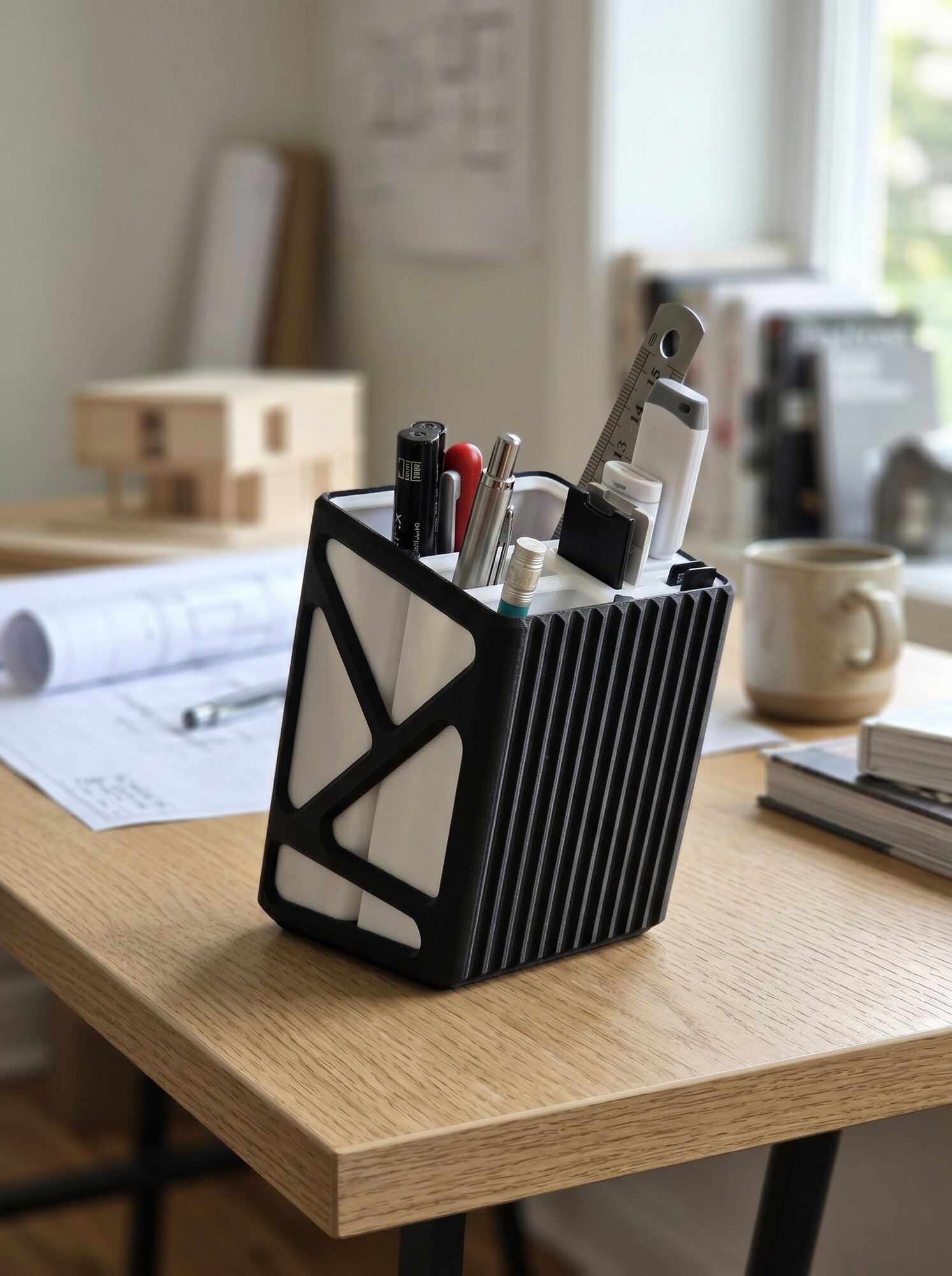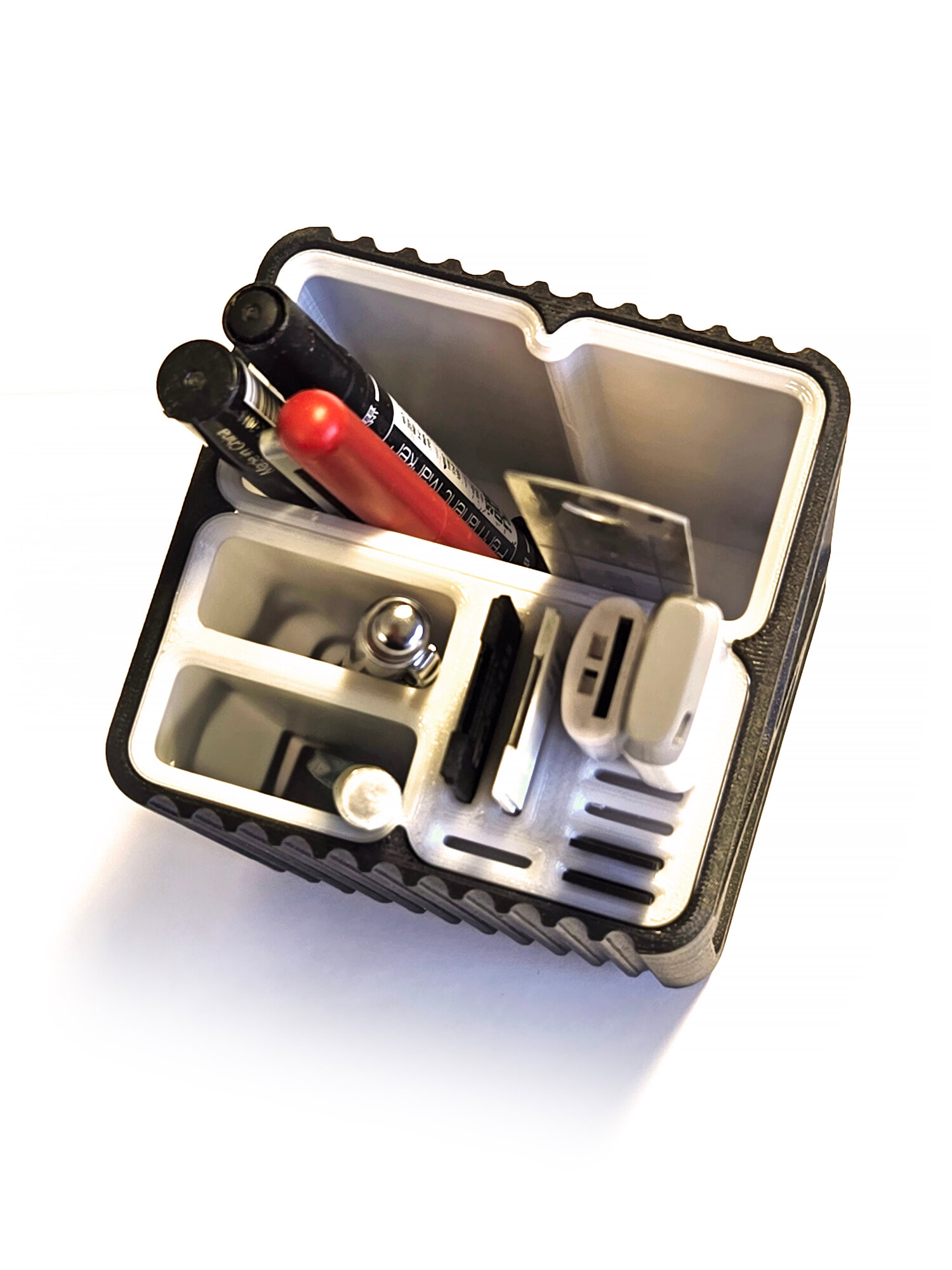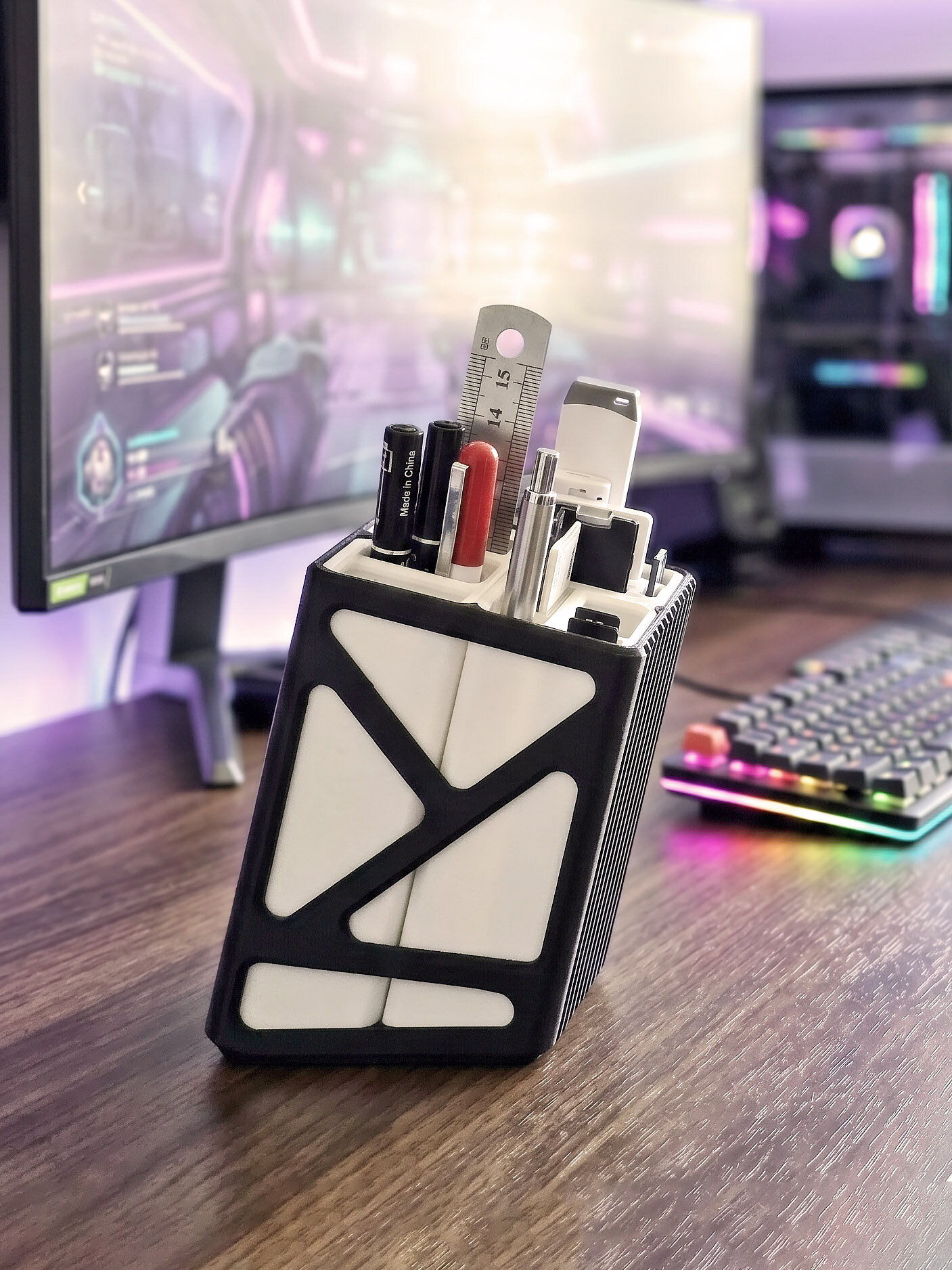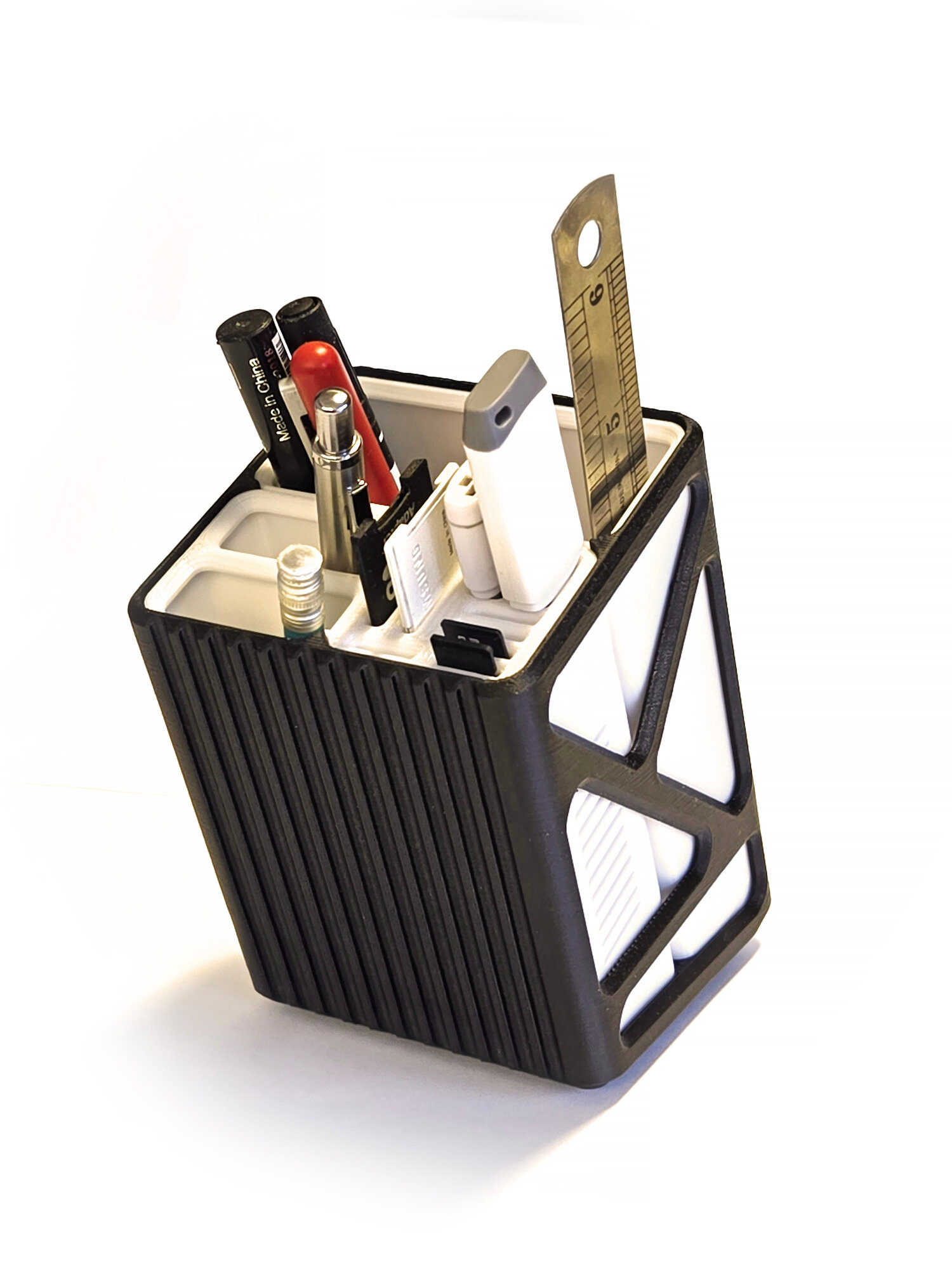 Подставка для ручек и карандашей, "Модулар", 3D печать, высота 12,5 см., белая с чёрным