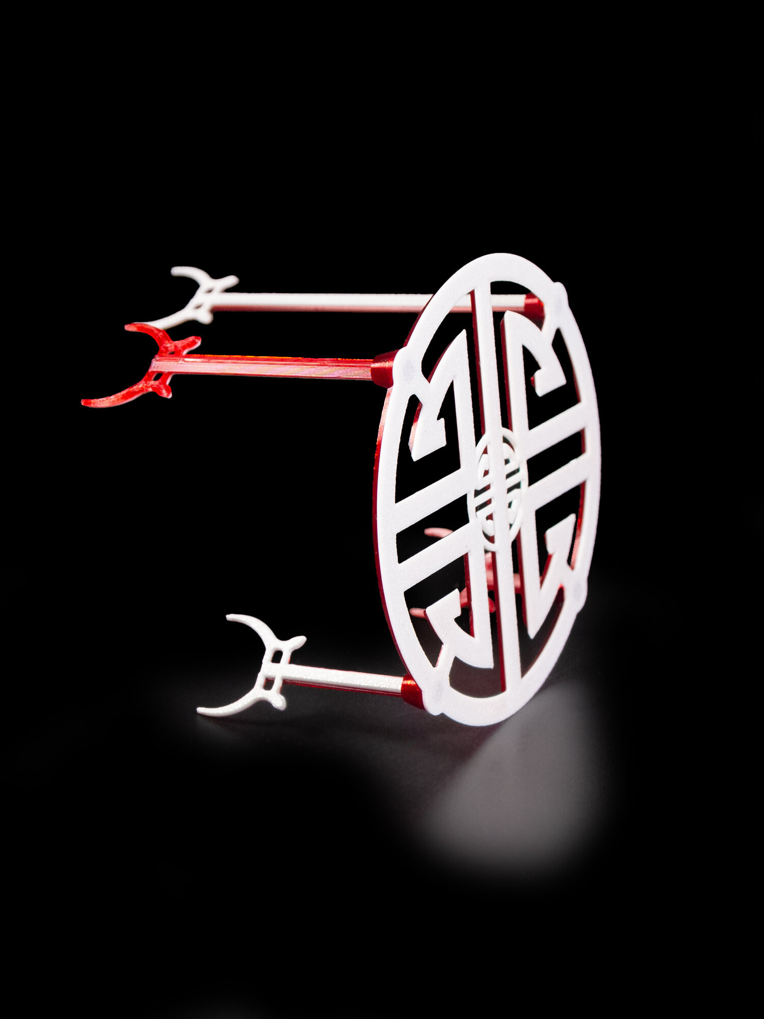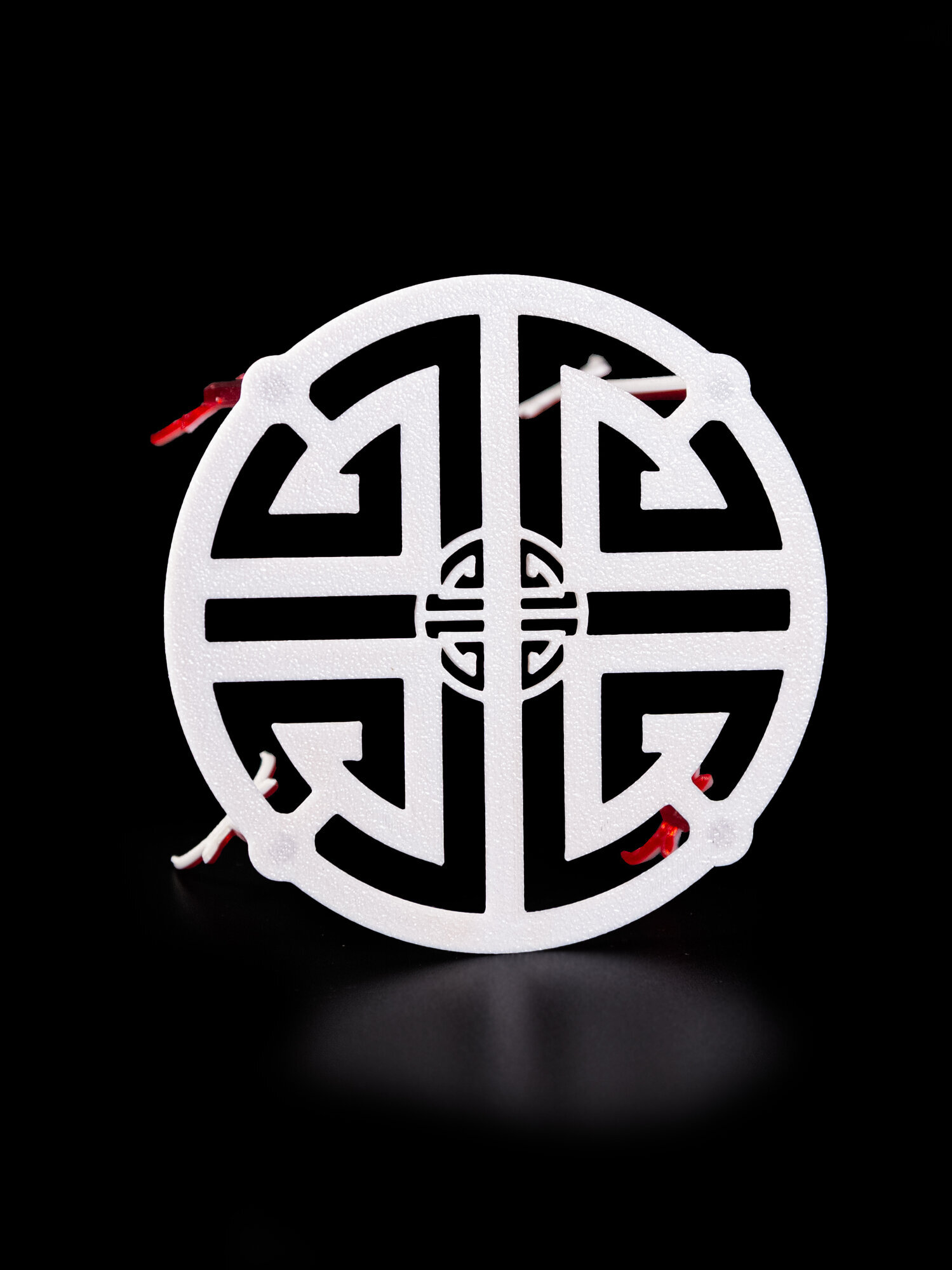 Цвет оригинального интерьерного изделия: красно-белый.