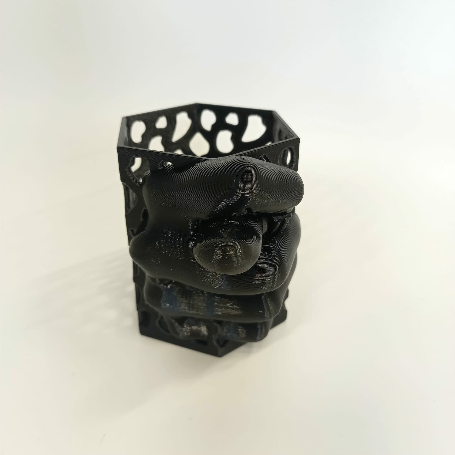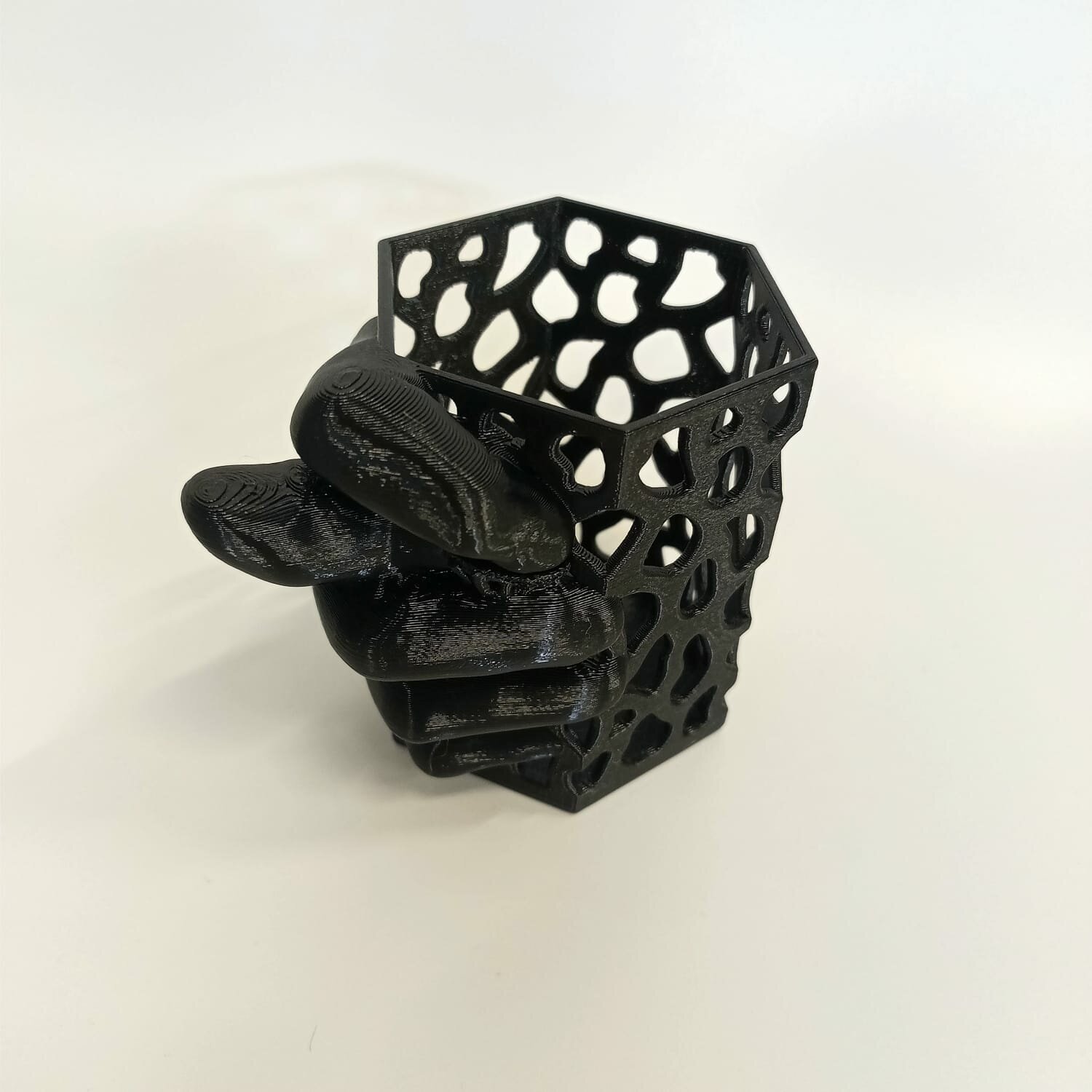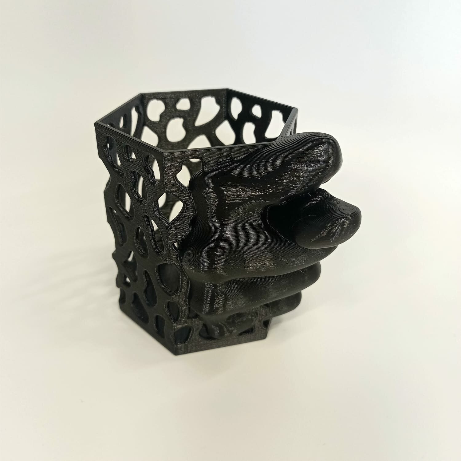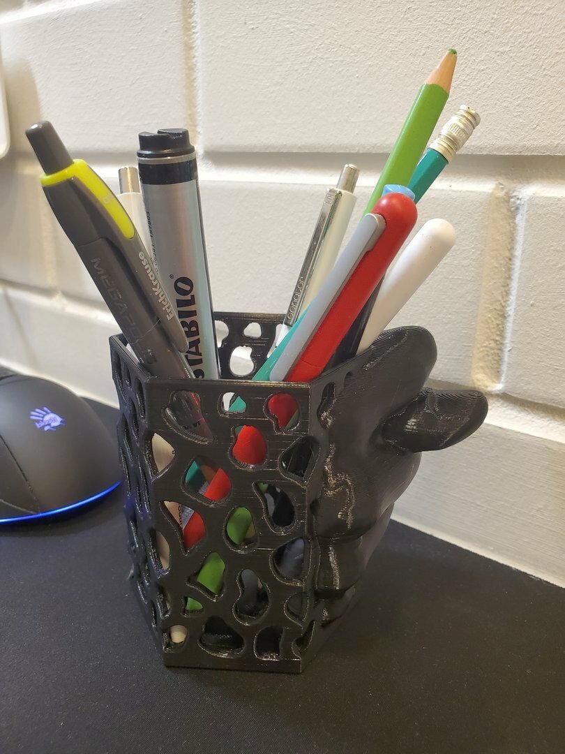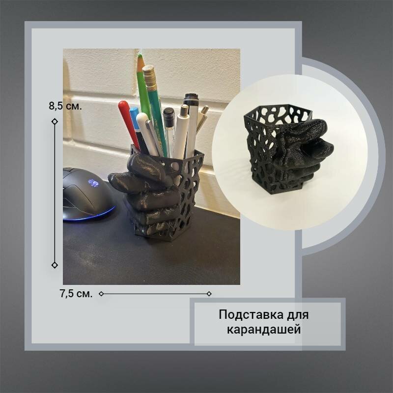 Карандашница со всем известной шуточной фигурой из трех пальцев.Напечатана на 3D принтере из безопасного пластика. Без посторонних запахов, не тускнеет со временем.