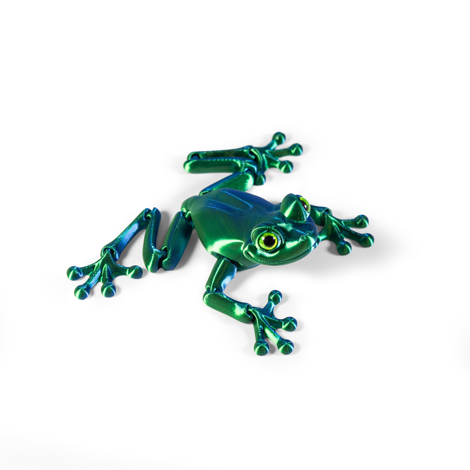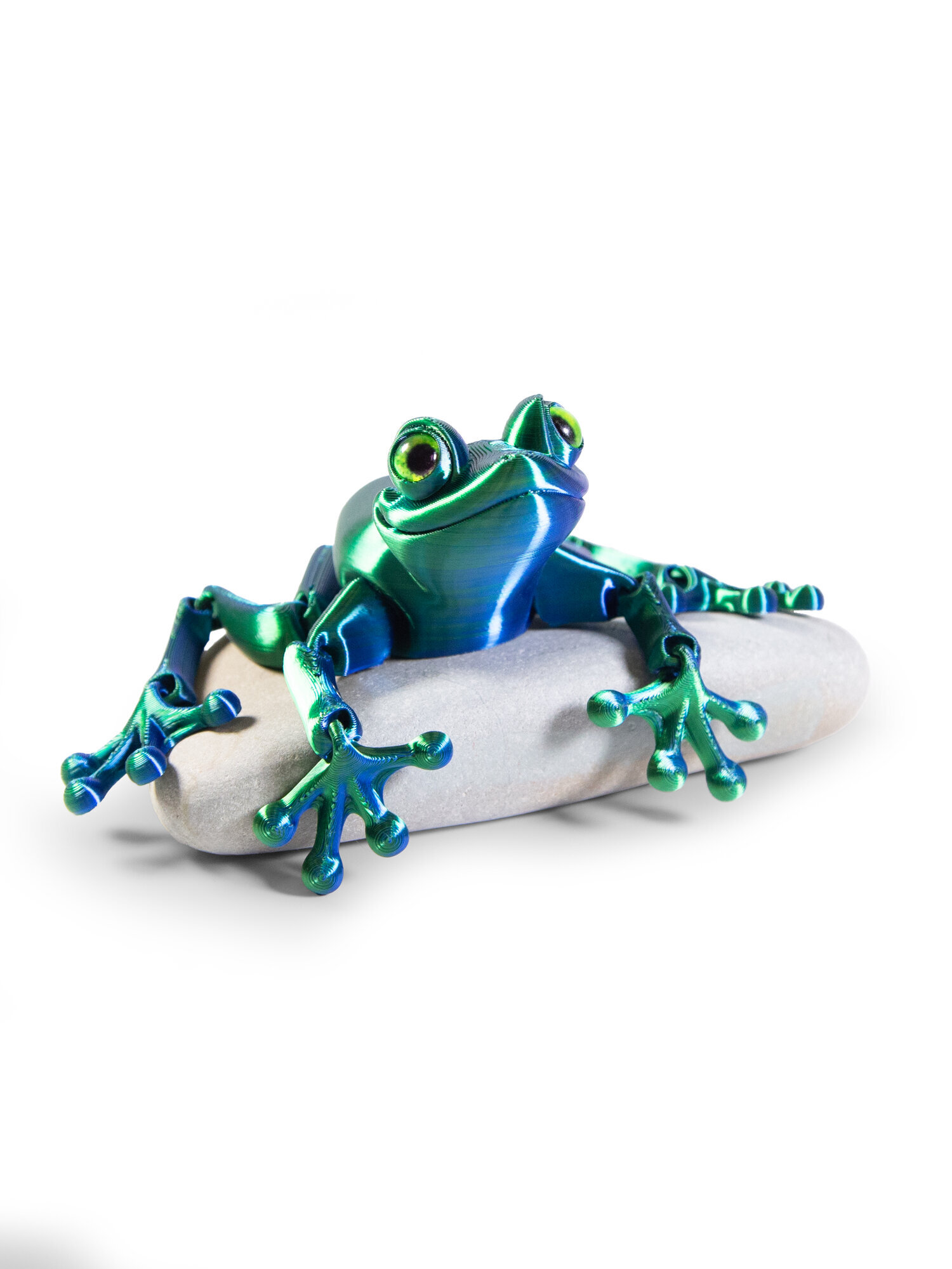 Фигурка лягушки станет отличным подарком-сувениром, нестандартной безделушкой или коллекционным предметом. Она прекрасно смотрится на рабочем столе или на стеллаже в квартире.Подвижная и гибкая лягушка изготовлена из экологичного пластика на 3D принтере, что обеспечивает высокое качество и детализацию. Пластик не тускнеет со временем и не портится при попадании на него воды, не имеет посторонних запахов.