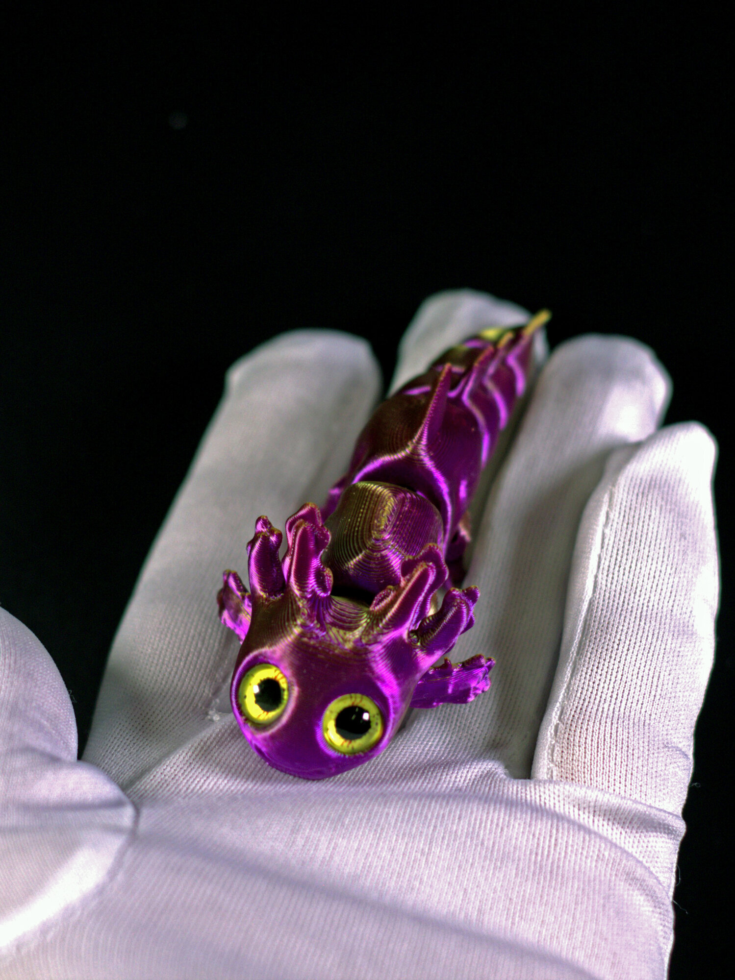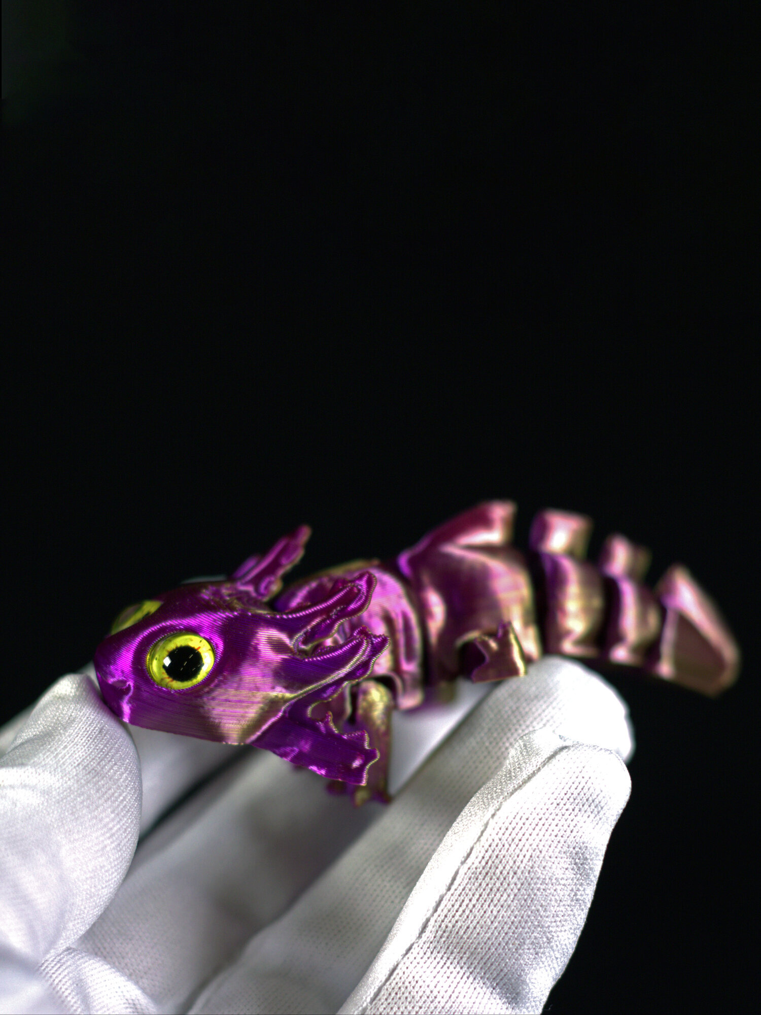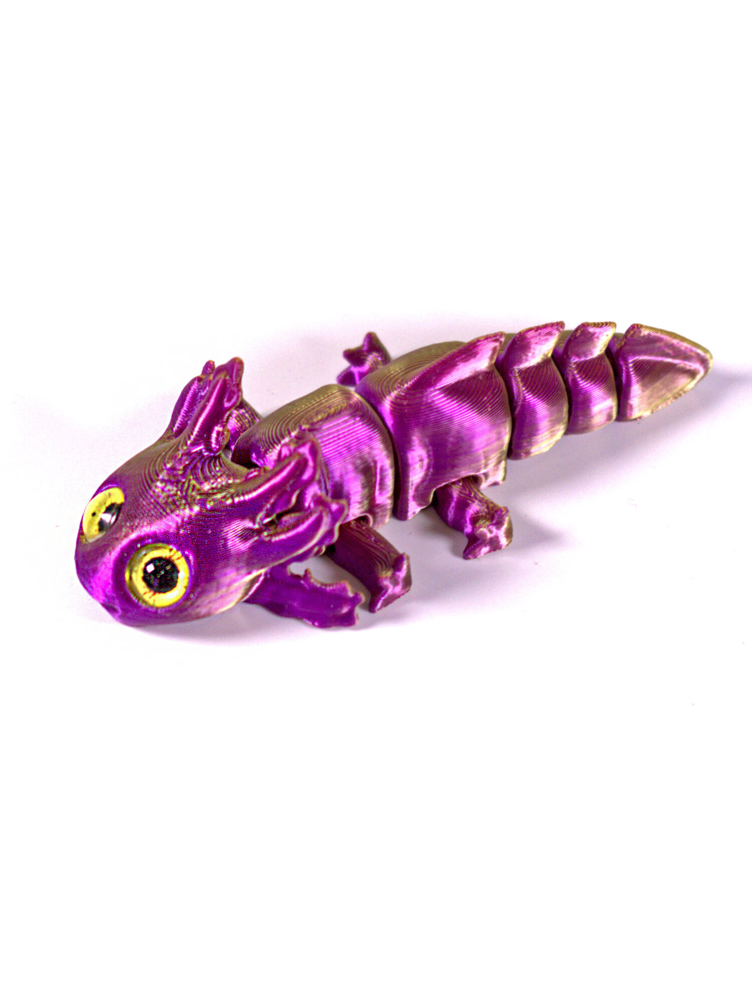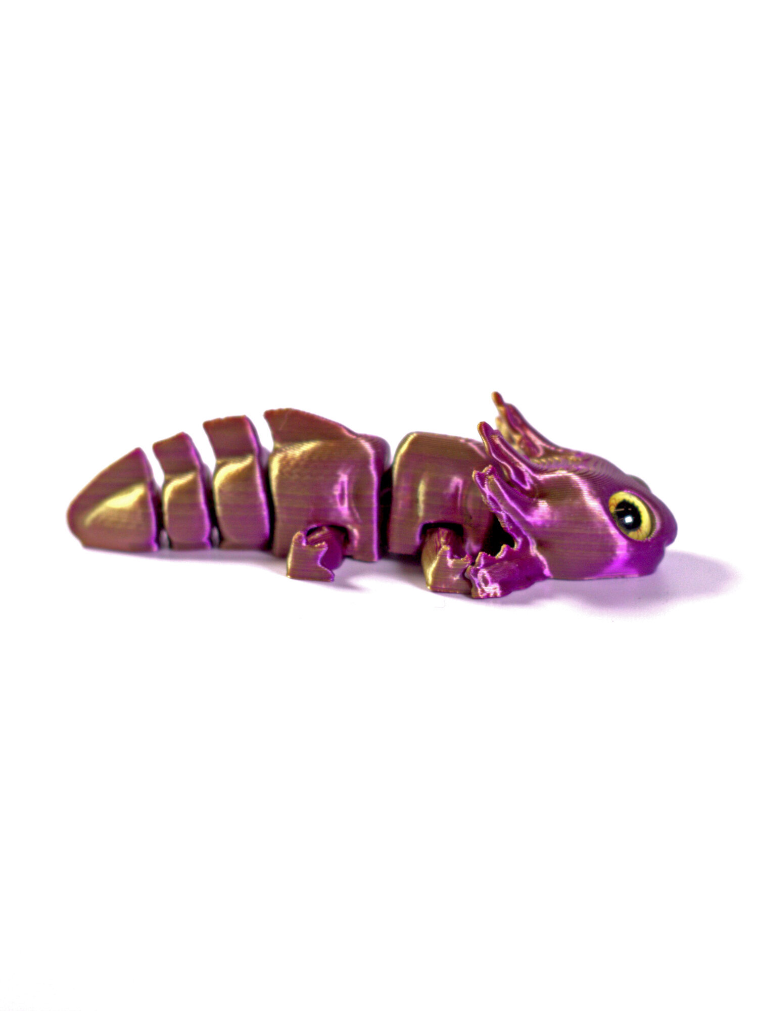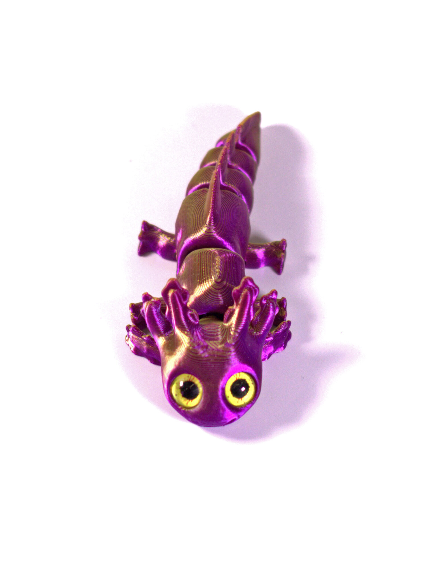 Подвижный аксолотль мини, 3D печать, 16 см., фиолетово-золотой