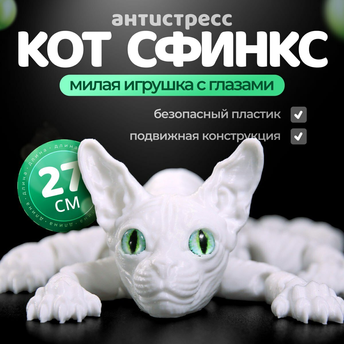 - Подвижный кот Сфинкс с глазками станет любимой игрушкой, украшением интерьера, и чудесным подарком.