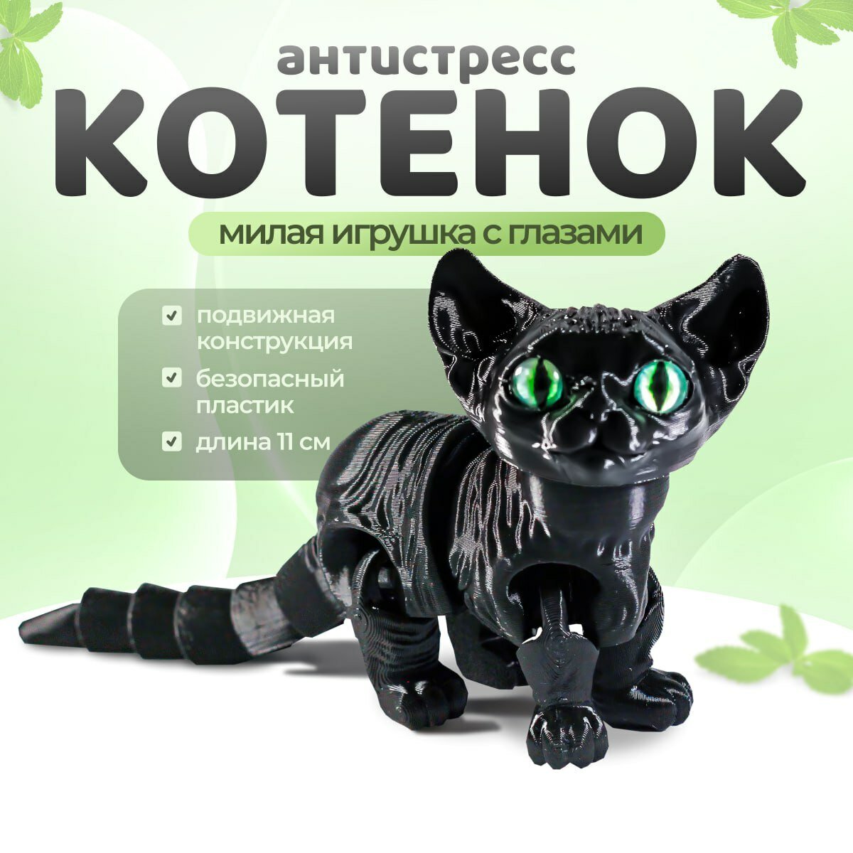 Черный котёнок игрушка с глазами