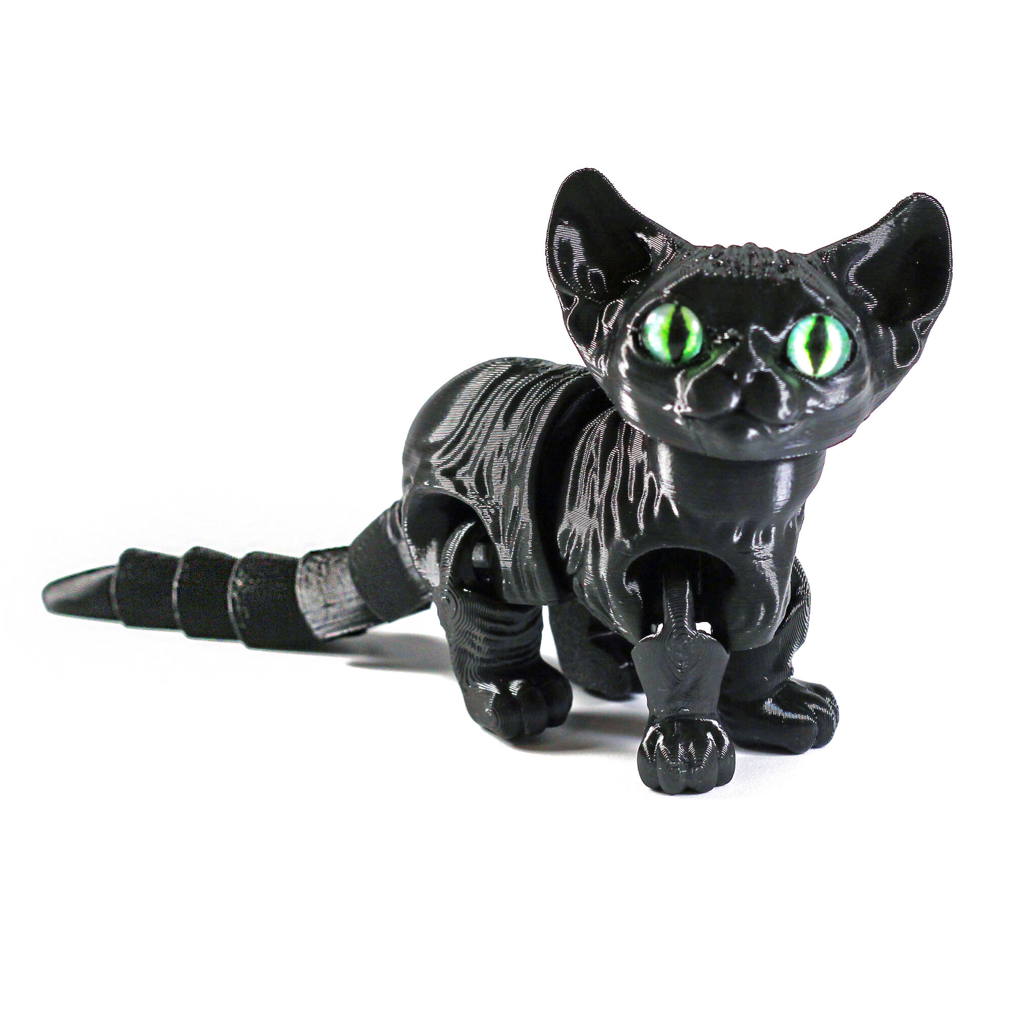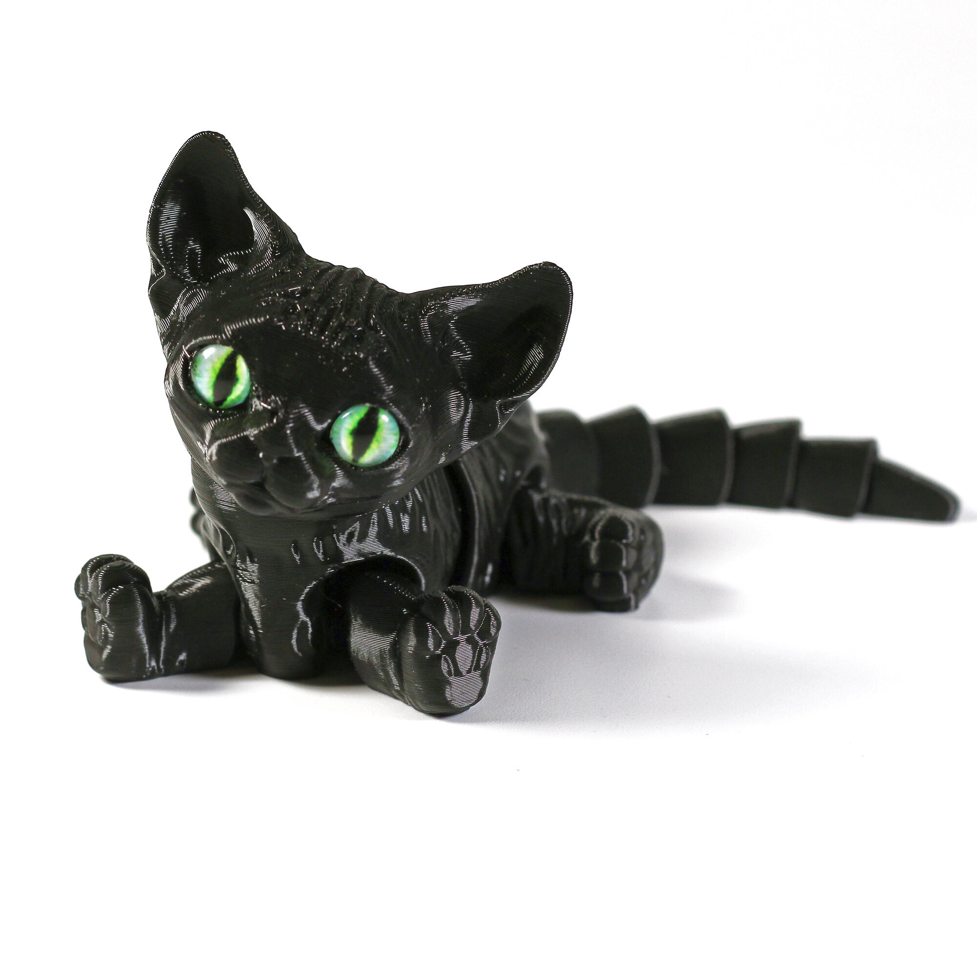 Подвижный котёнок Сфинкс с глазками станет любимой игрушкой, украшением интерьера, и чудесным подарком.Благодаря необычному и современному дизайну с игрушкой котёнком с удовольствием играют как мальчики, так и девочки. Фигурку хочется взять в руки, чтобы рассмотреть детали и понять как она сделана.