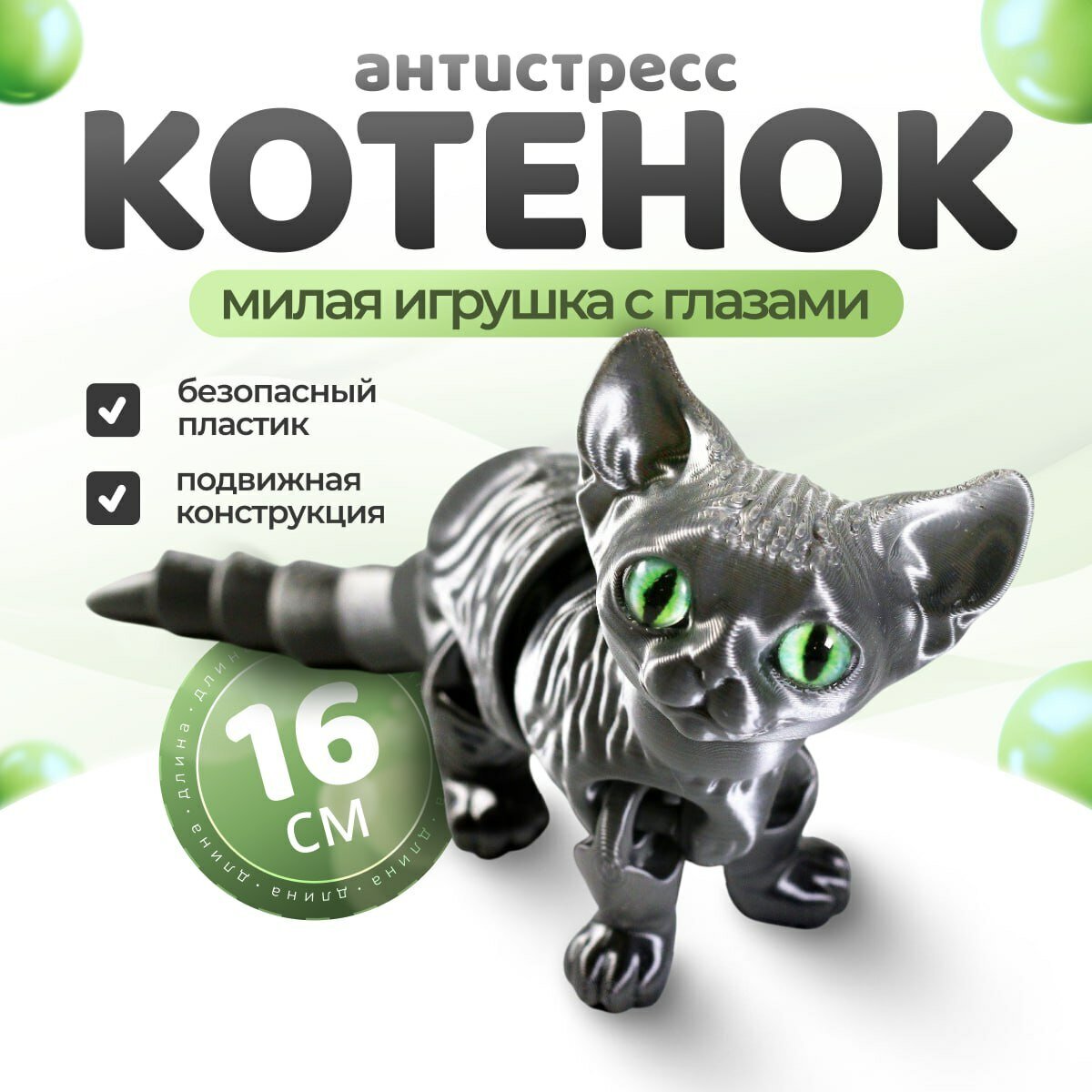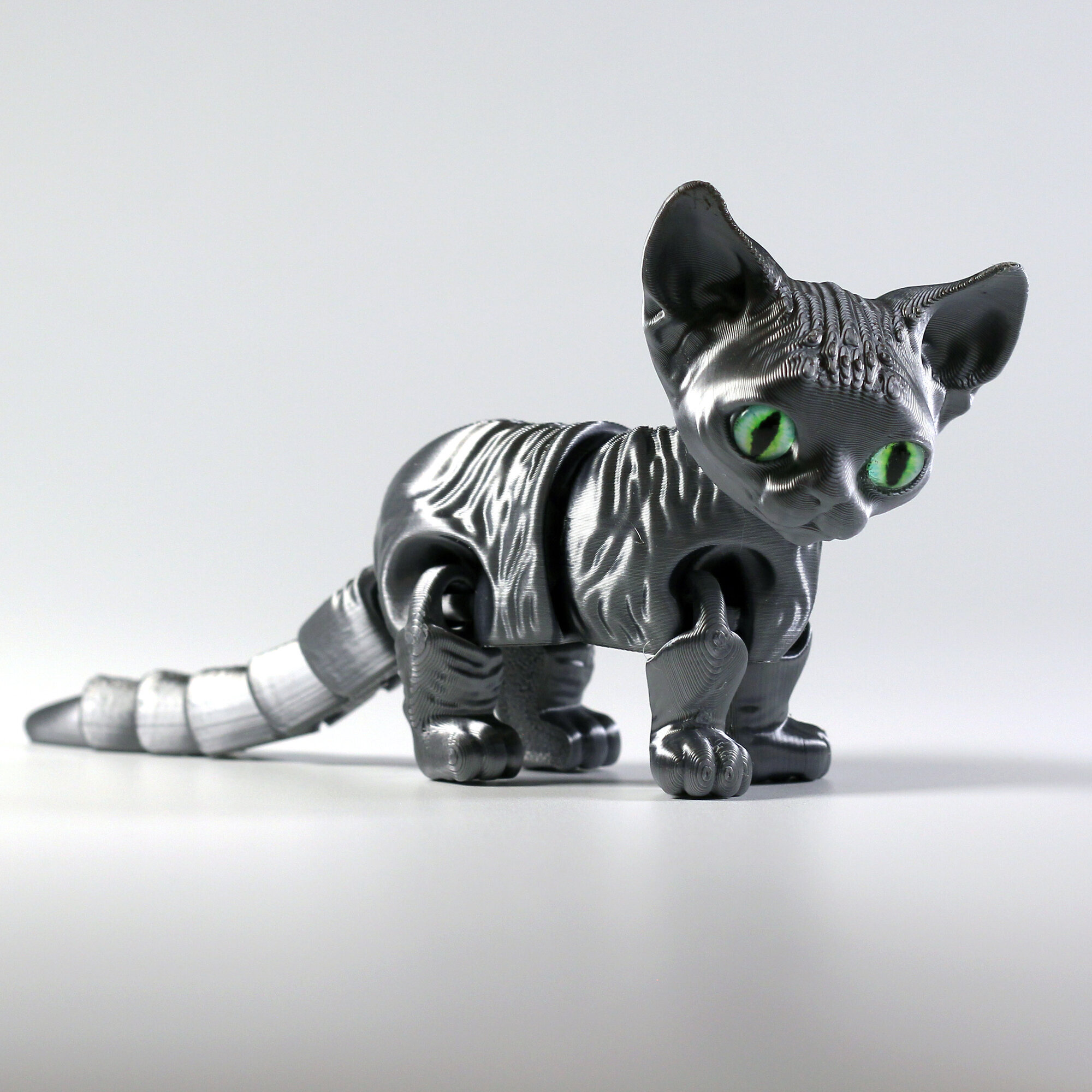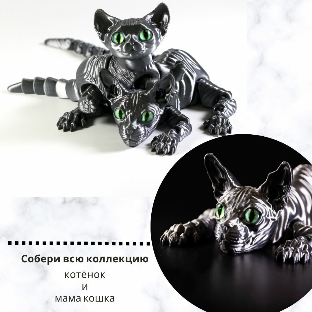 Подвижный котёнок Сфинкс с глазками станет любимой игрушкой, украшением интерьера, и чудесным подарком.Благодаря необычному и современному дизайну с игрушкой котёнком с удовольствием играют как мальчики, так и девочки. Фигурку хочется взять в руки, чтобы рассмотреть детали и понять как она сделана.