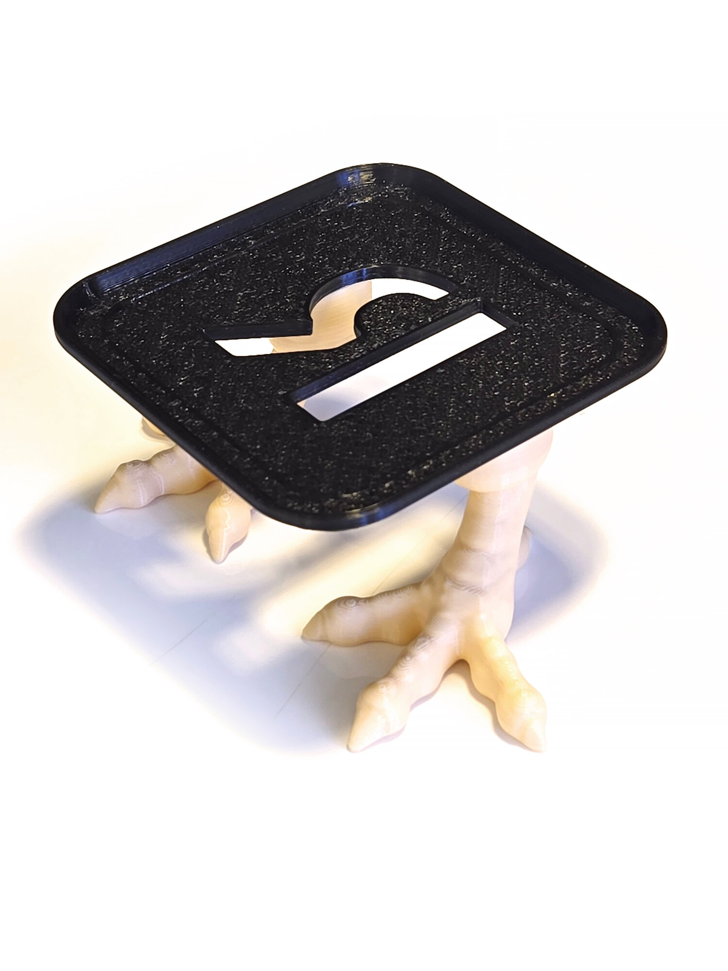 Размеры подставки: ширина основания 8 см., длина основания 8 см., высота 5 см., ширина вместе с лапками 12,2 см., вес 38 гр.