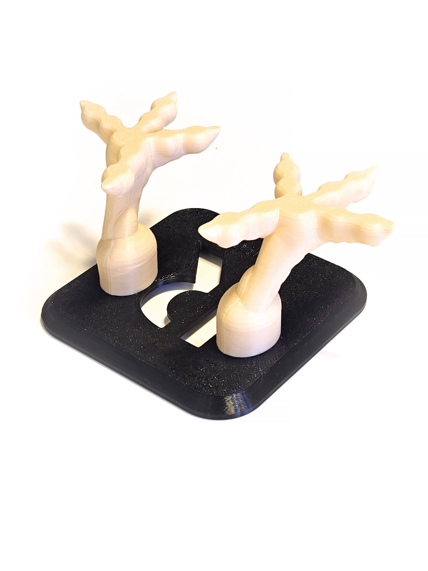 Держатель напечатан на 3d принтере из экологически безопасного PLA пластика (материал изготавливается из кукурузы) и может спокойно эксплуатироваться в детской комнате.