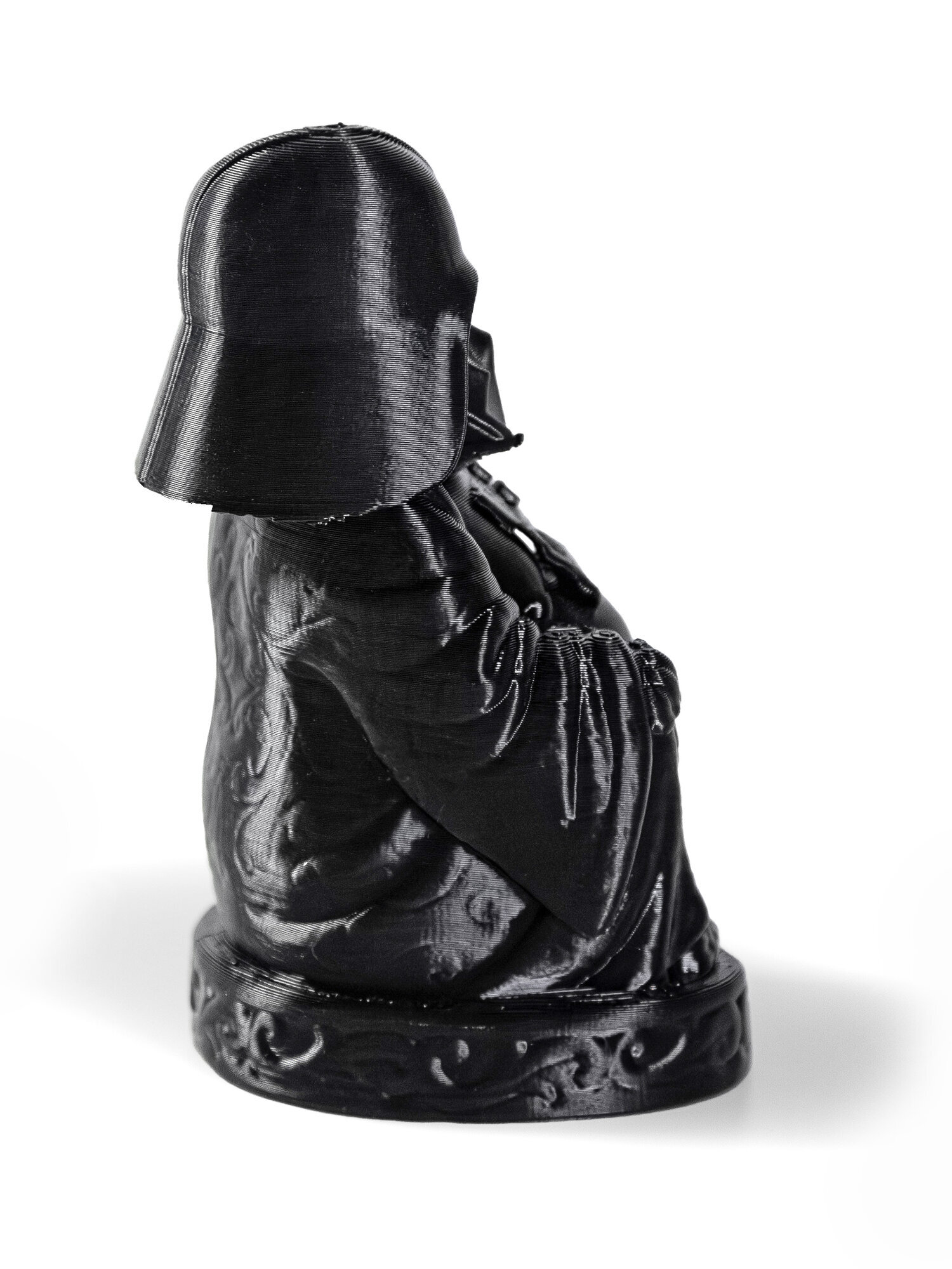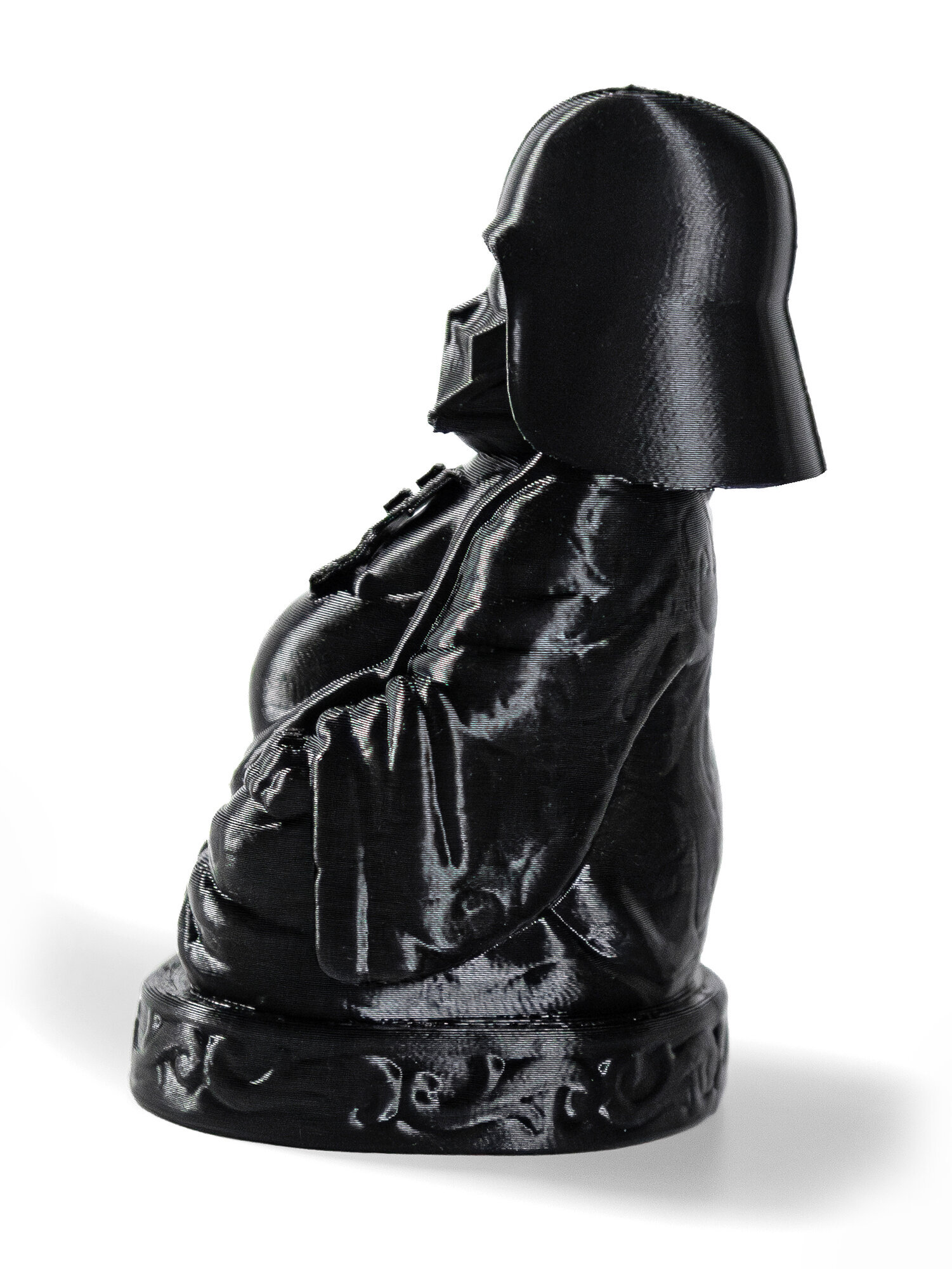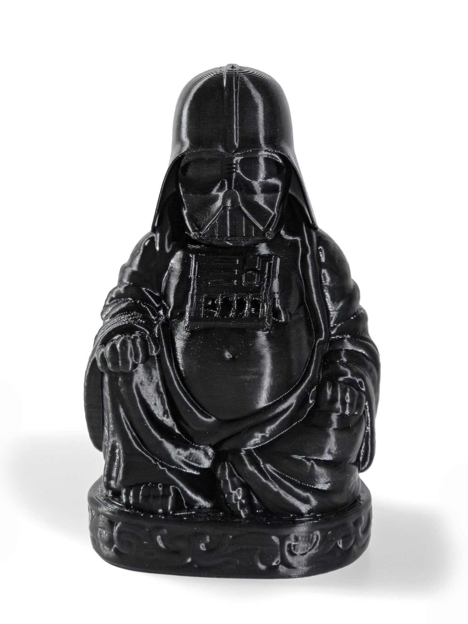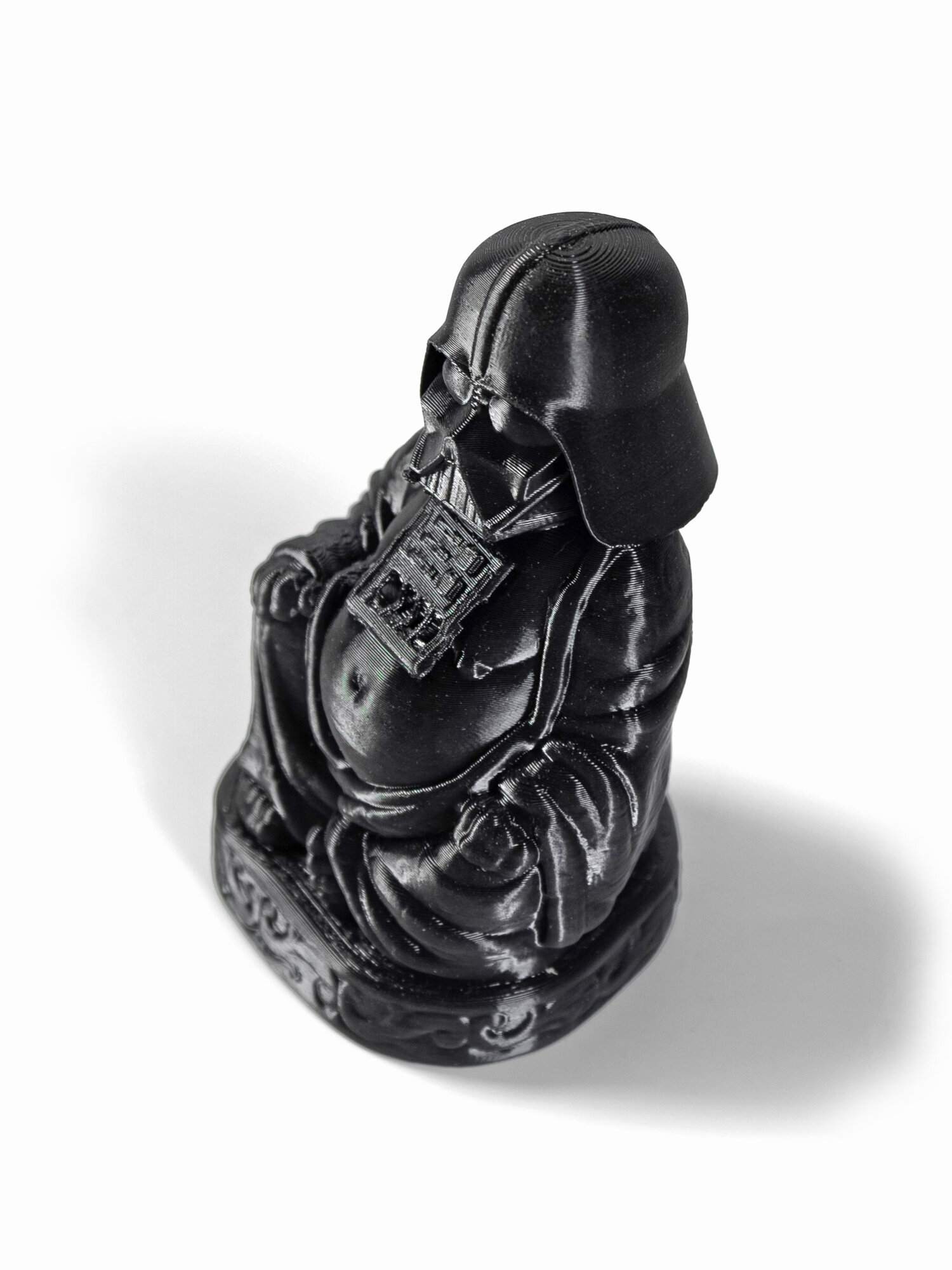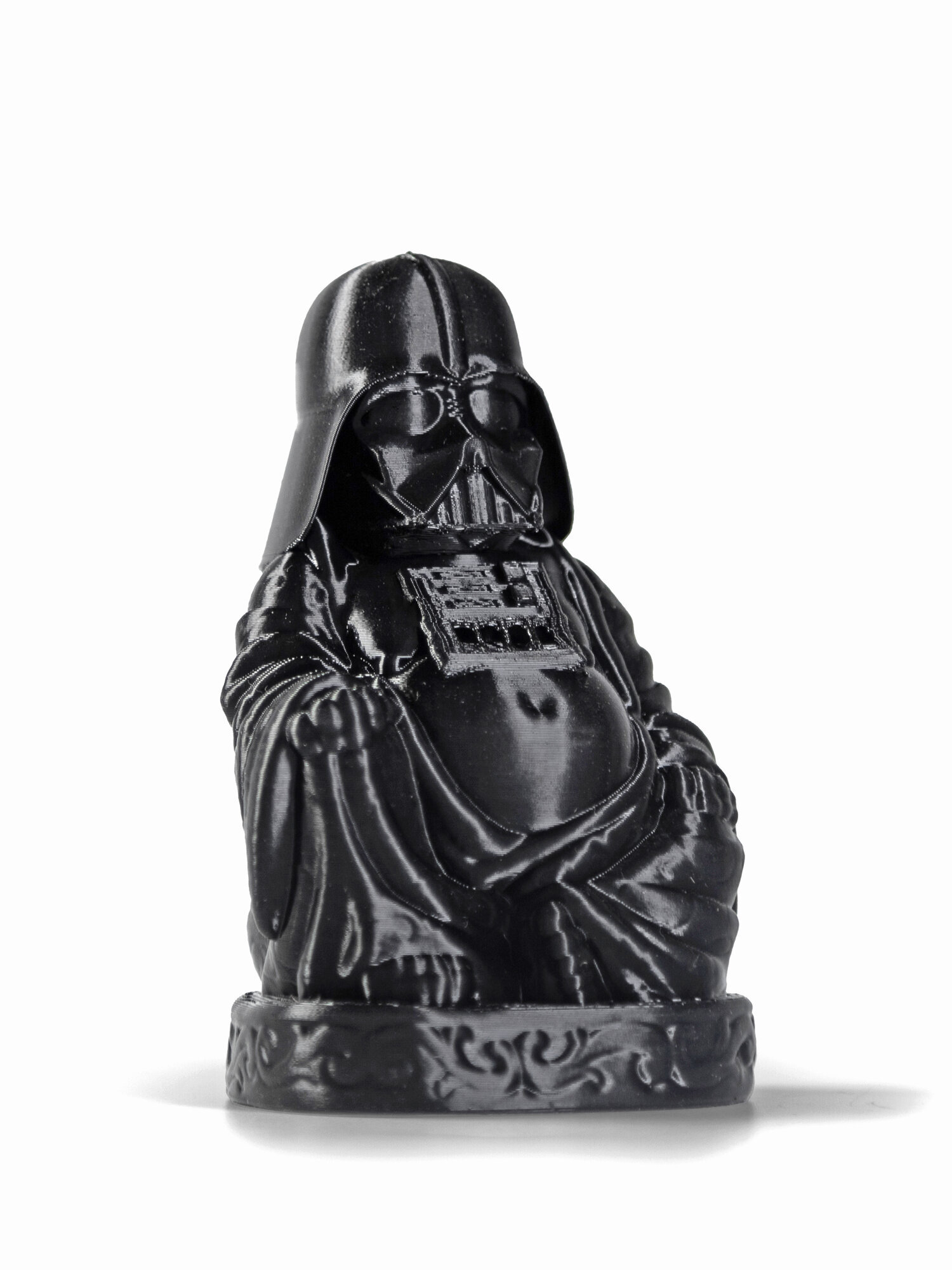 - Статуэтка Будда в виде Вейдера напечатана на 3D принтере из экологичного пластика Petg. Этот материал абсолютно безопасен для здоровья и не имеет посторонних запахов.