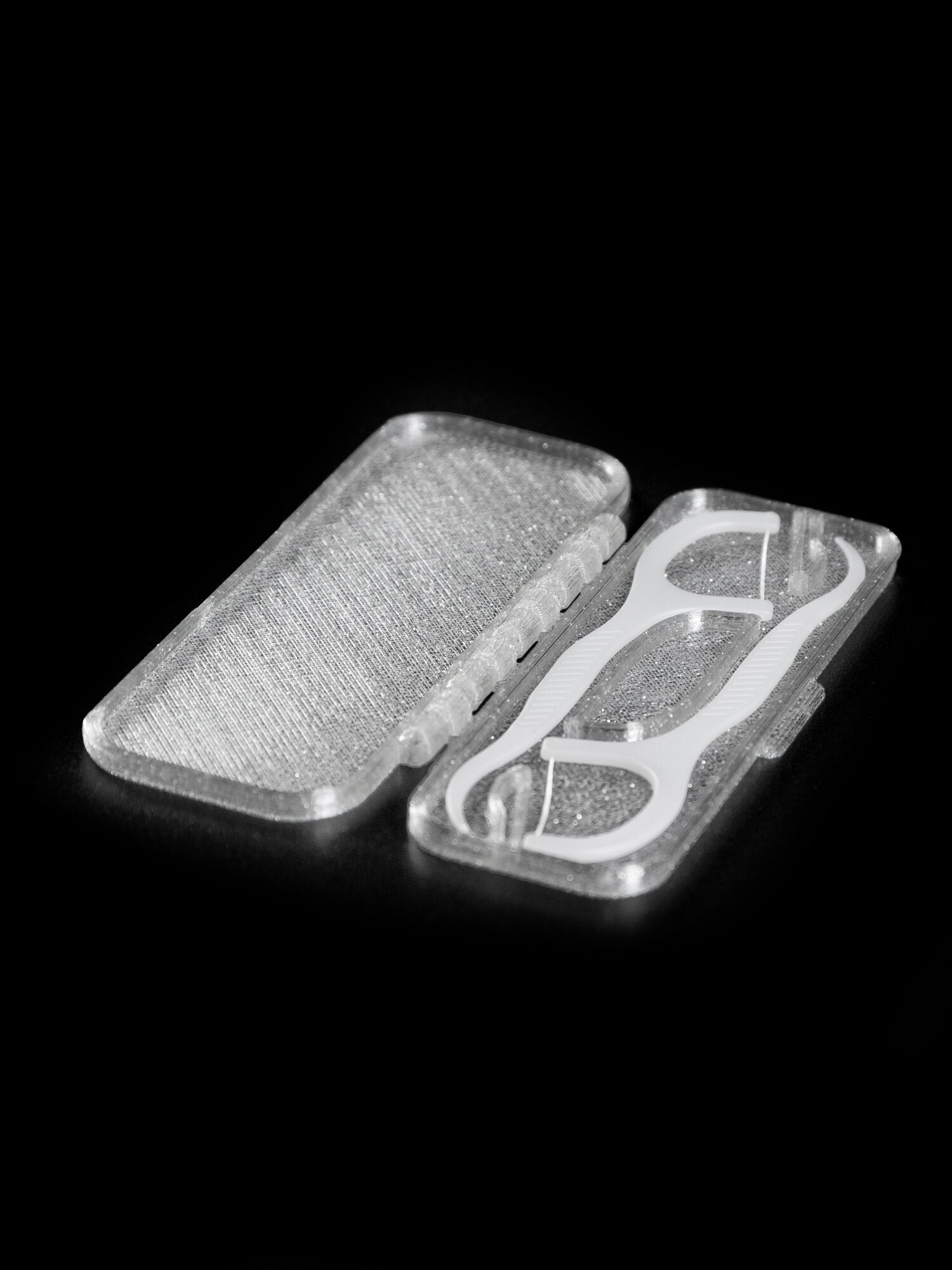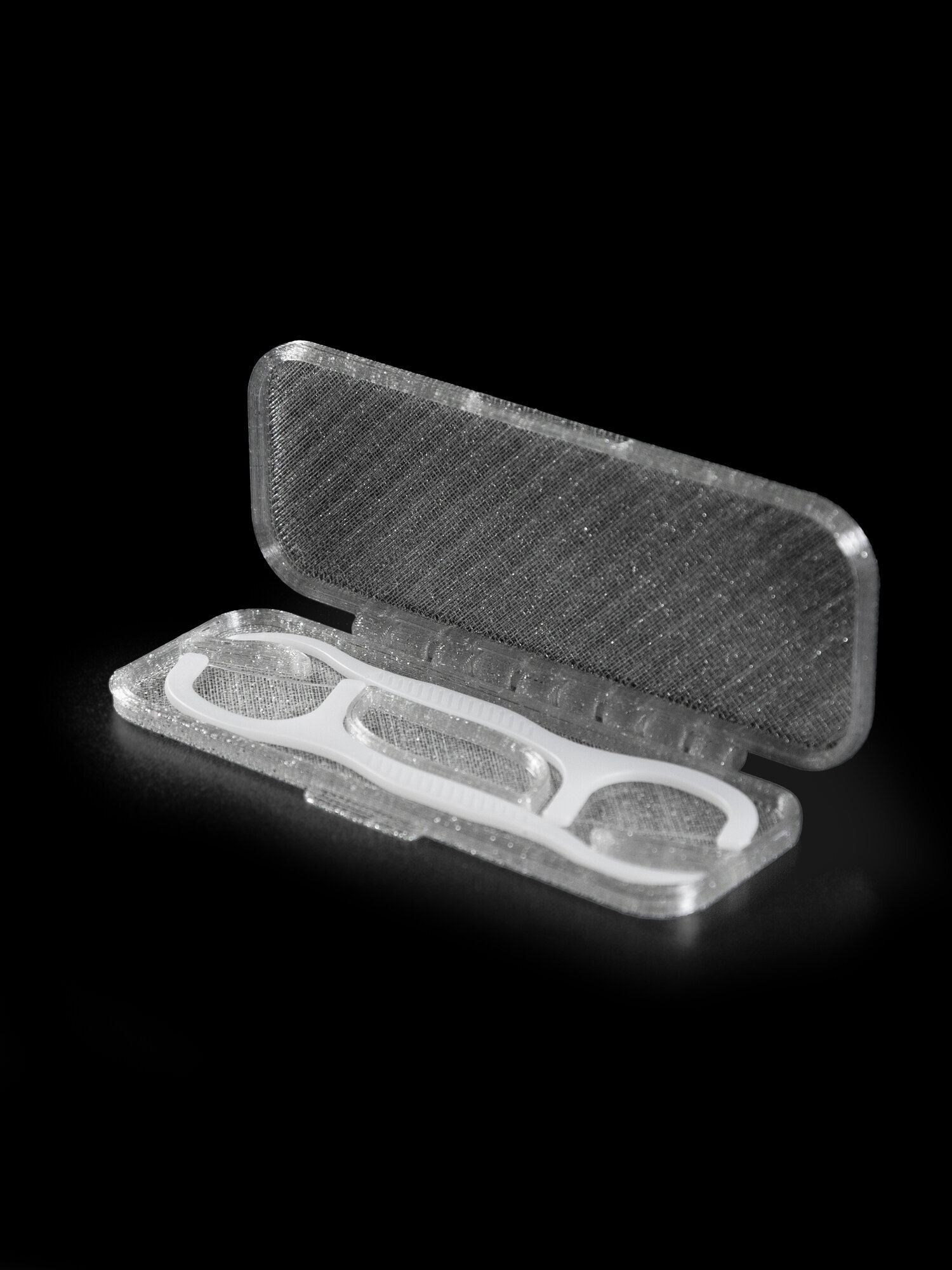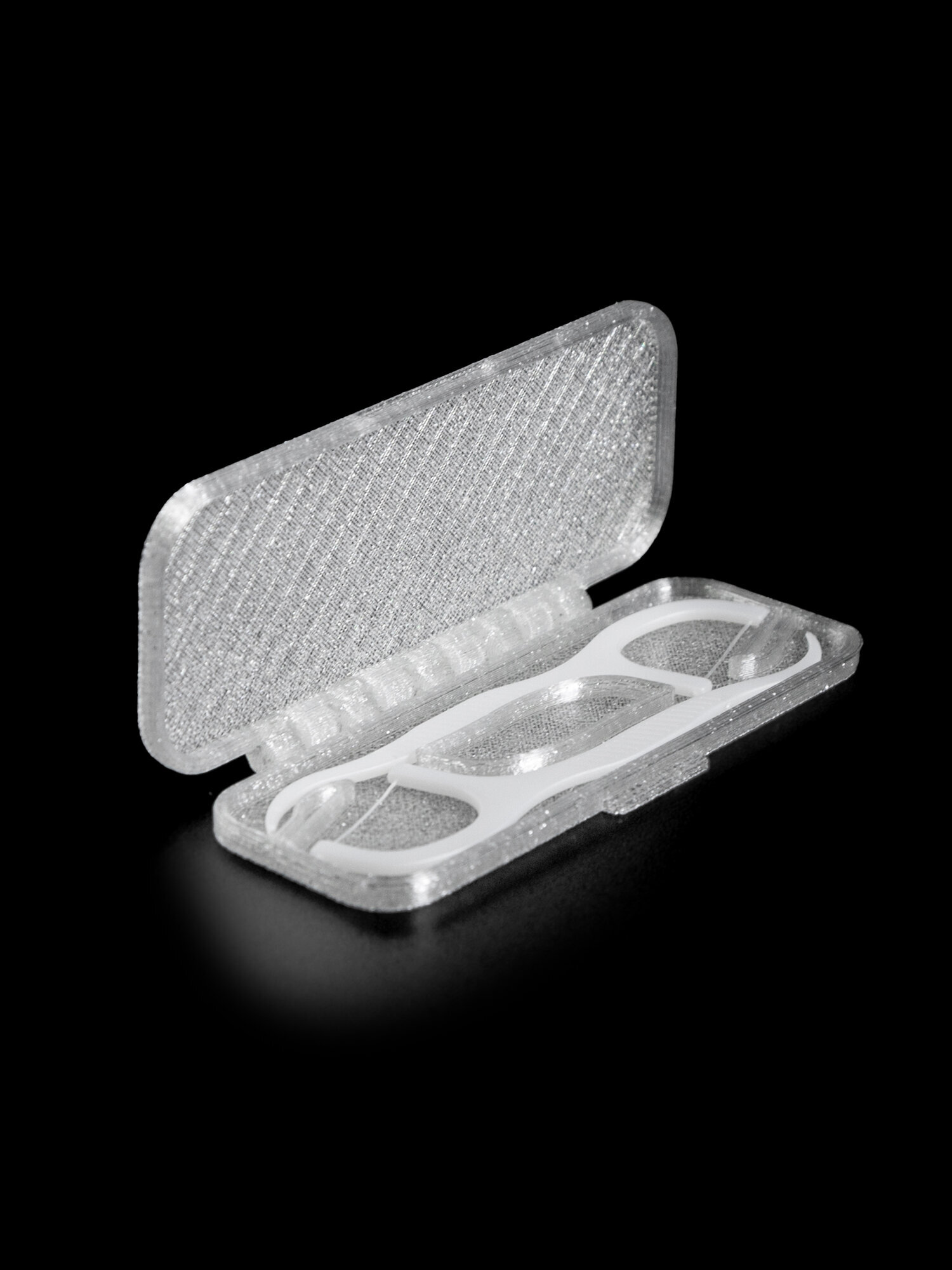 - Футляр для флоссеров напечатан на 3D принтере из экологичного пластика Petg. Не тускнеет со временем, не портится от воды, не имеет посторонних запахов.