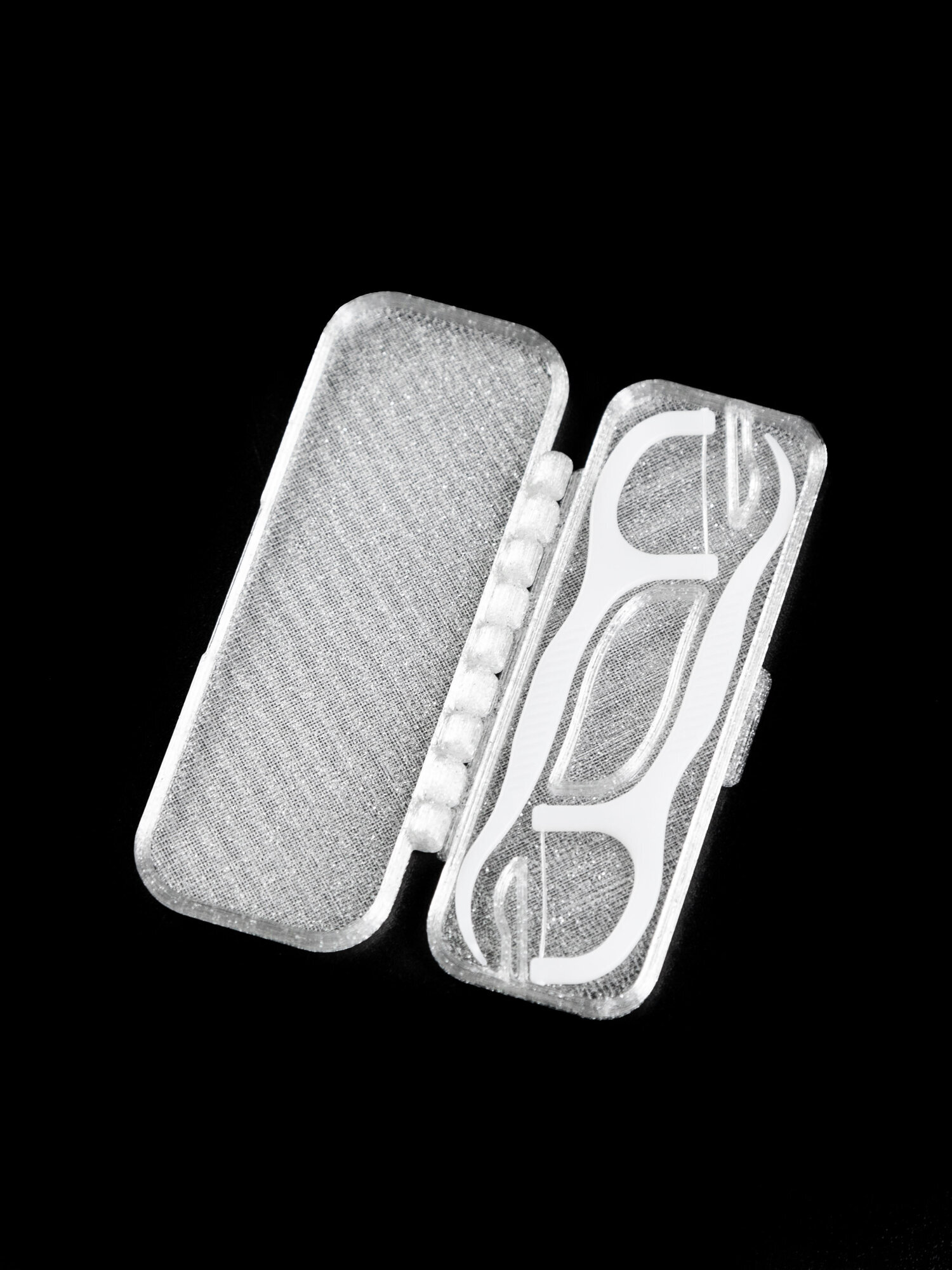 Стоматологический дорожный контейнер для 2-х зубочисток с нитью — флоссеров, 3D печать, белый, полупрозрачный