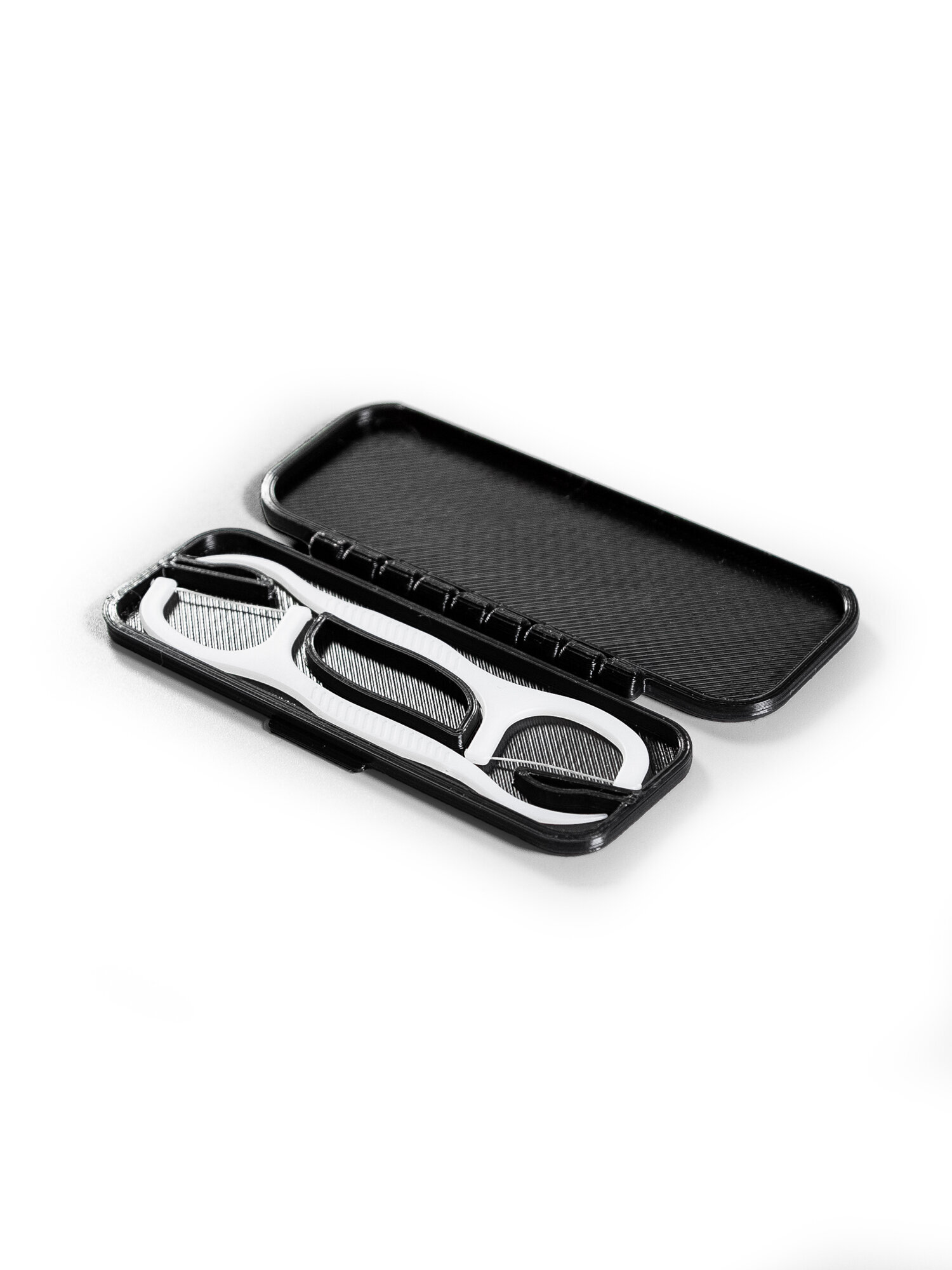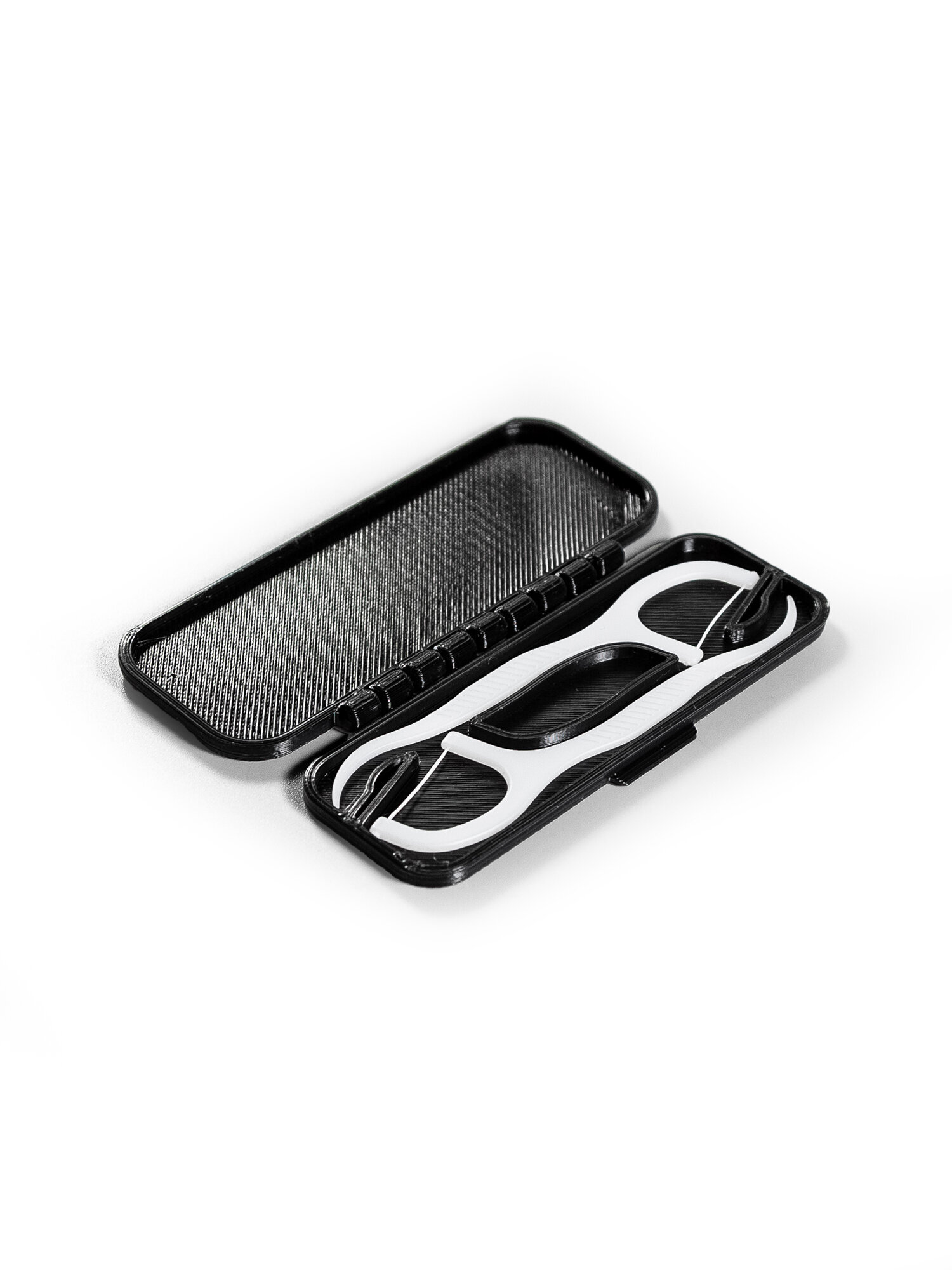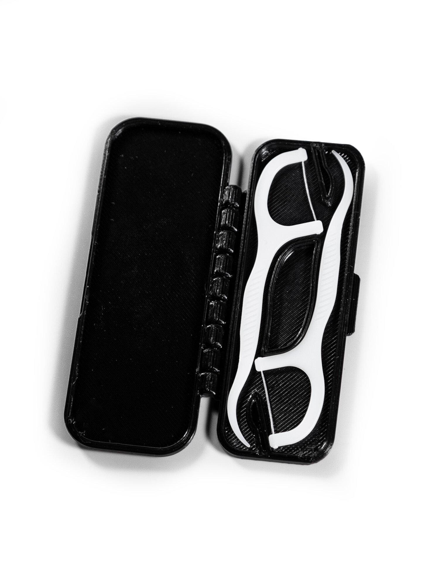- Футляр для флоссеров напечатан на 3D принтере из экологичного пластика Petg. Не тускнеет со временем, не портится от воды, не имеет посторонних запахов.